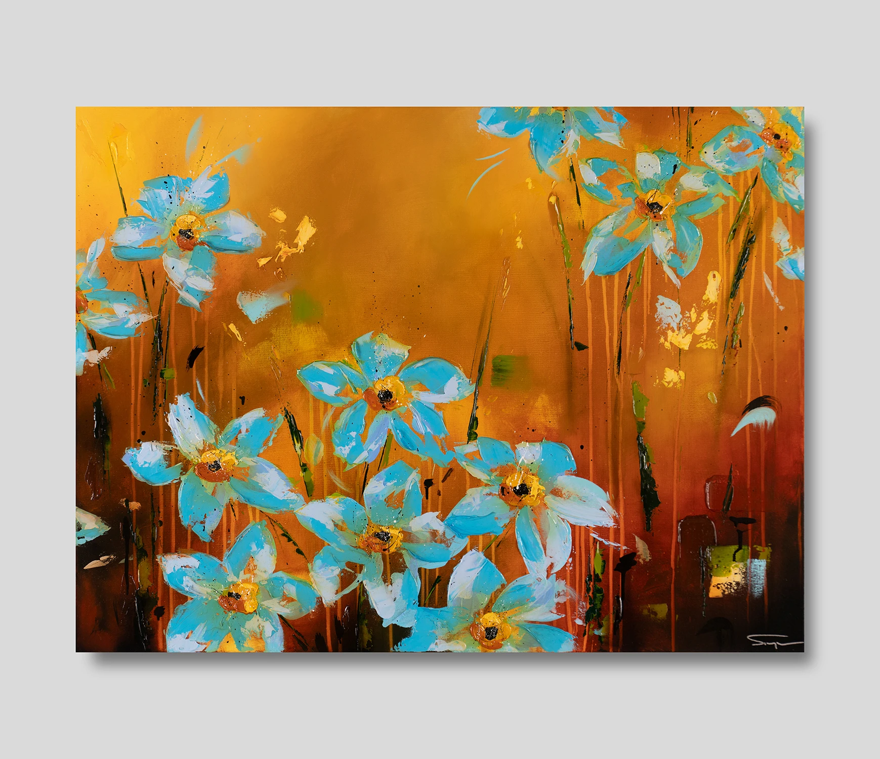 Full of bold colour, heavy texture, and abstract brush strokes, this wonderful original artwork is from Stephen Simpson’s Opus collection. Cheerful, romantic, and uplifting, this stunning artwork is also a contemporary take on one of the oldest genres of art history!