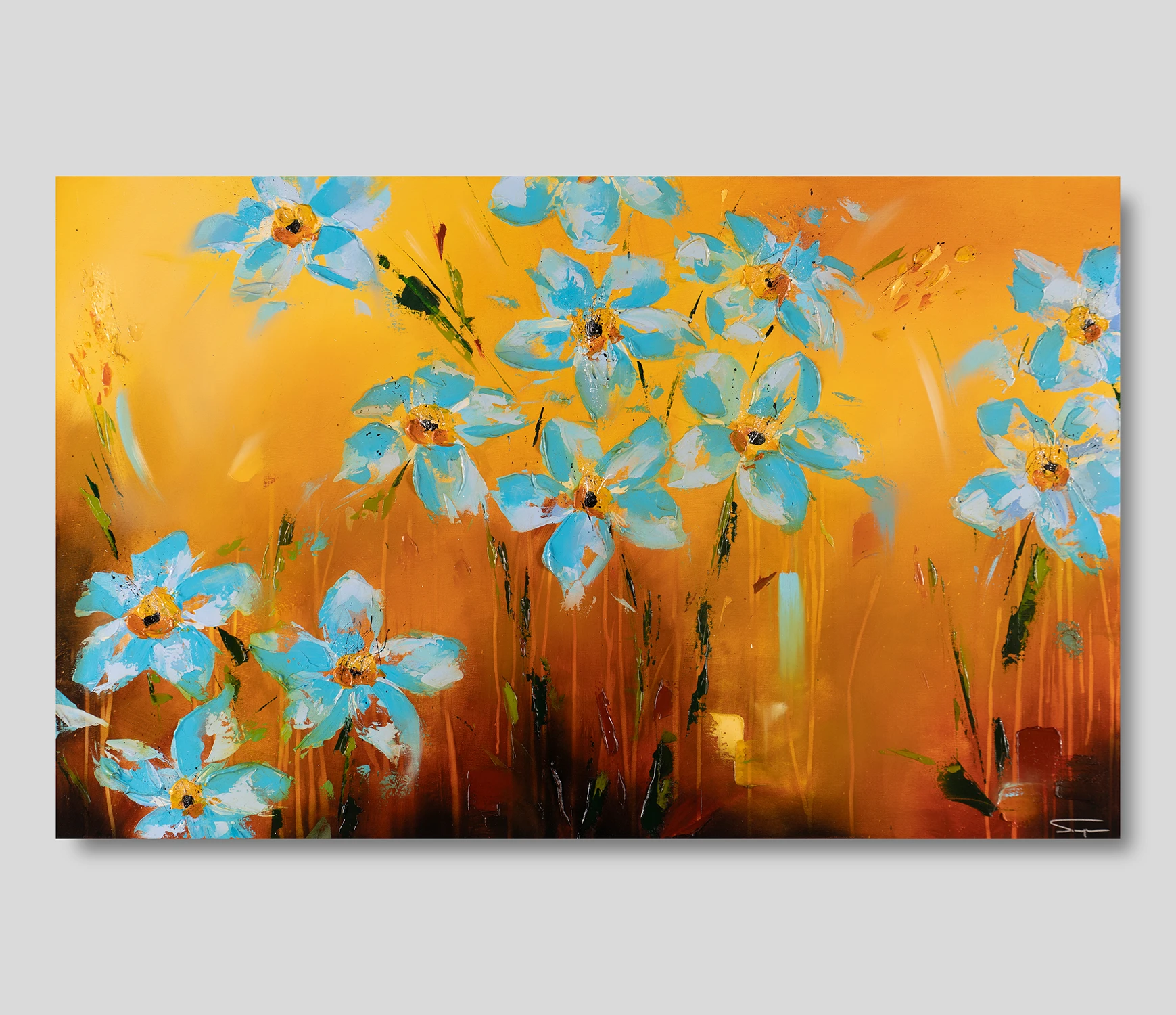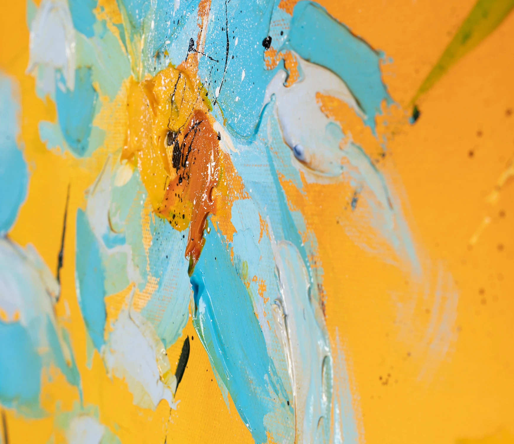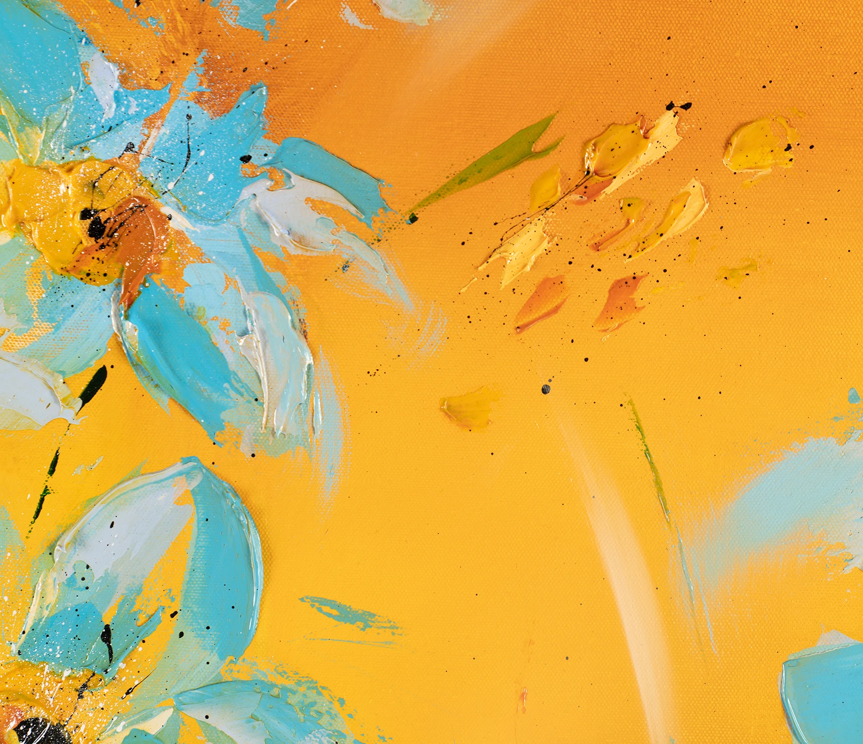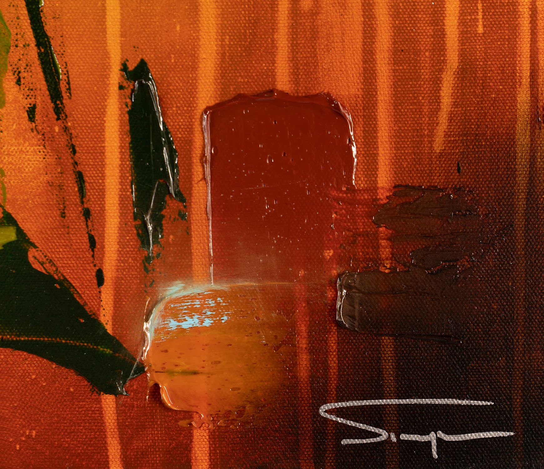 Full of bold colour, heavy texture, and abstract brush strokes, this wonderful original artwork is from Stephen Simpson’s Opus collection. Cheerful, romantic, and uplifting, this stunning artwork is also a contemporary take on one of the oldest genres of art history!