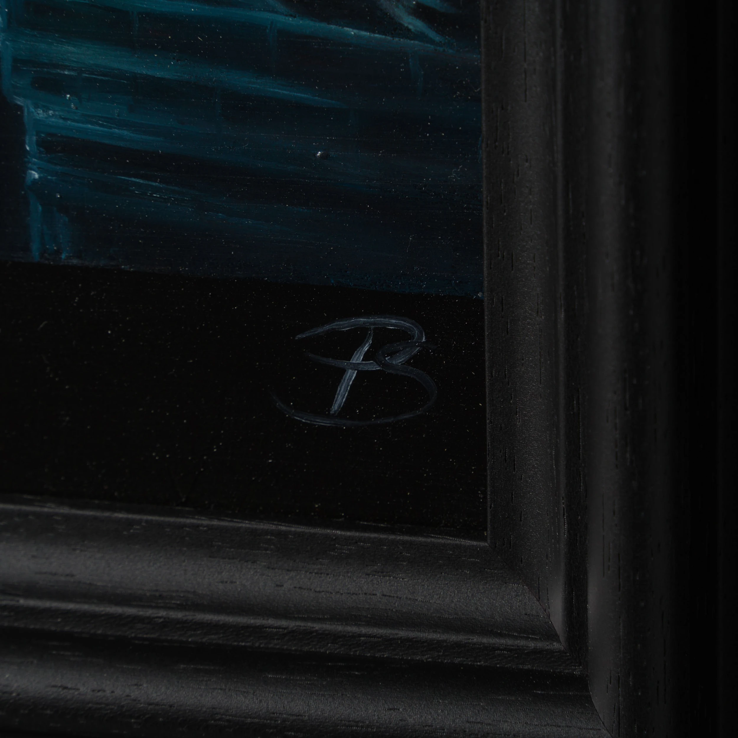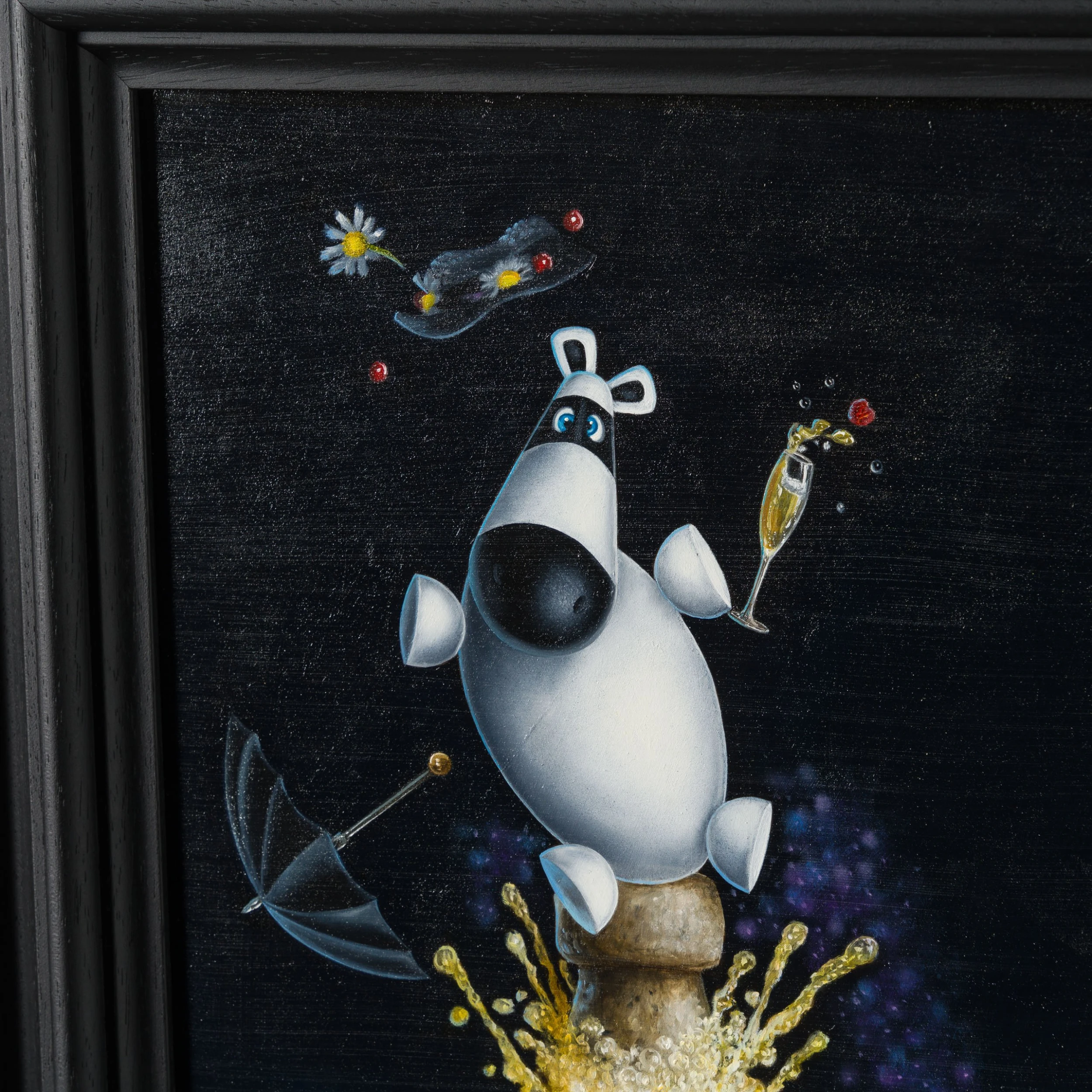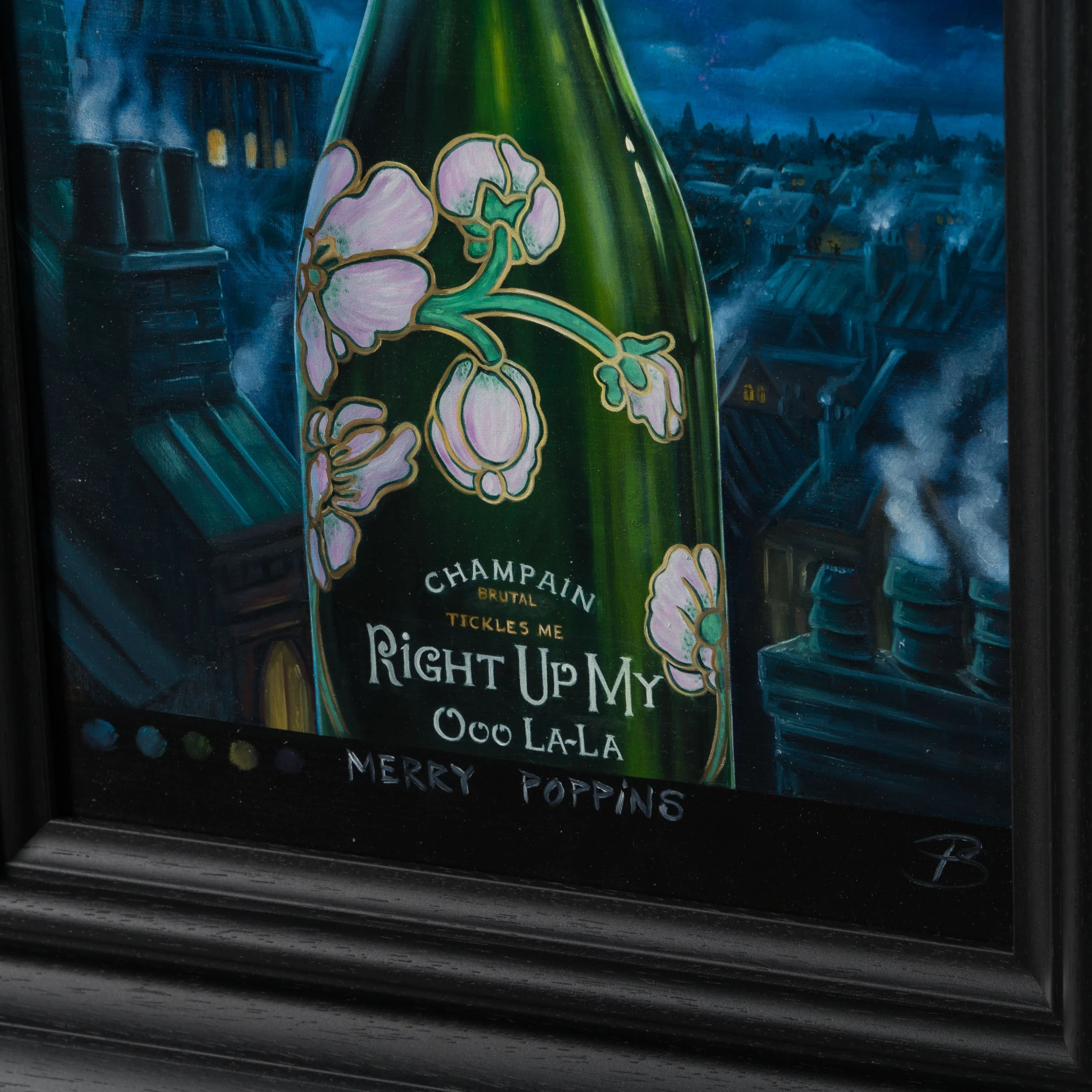 In a traditional still-life composition creating a visually appealing and balanced image, “Merry Poppins” is vignetted by a classic and simple black background. The bold colour is incredibly punchy, completely focussing the attention on the tantalising tipple and scene at hand. Ever a fine artist, the piece has been painted in vivid oil paint with the incredible craftsmanship we have come to expect from skilled still-life painter,