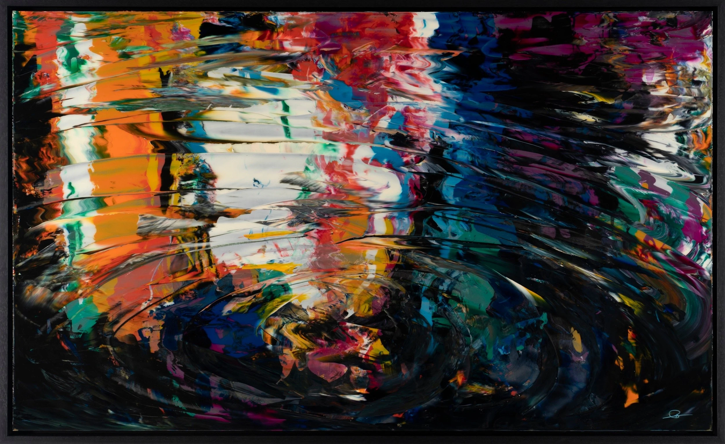 Much like the unpredictability of the rain, creates his monumental artworks with a spontaneous energy and fluidity that allows him to mimic its primal beauty. Rather than a still moment in time, Kenton tries to capture a sequence of movements in his paintings.