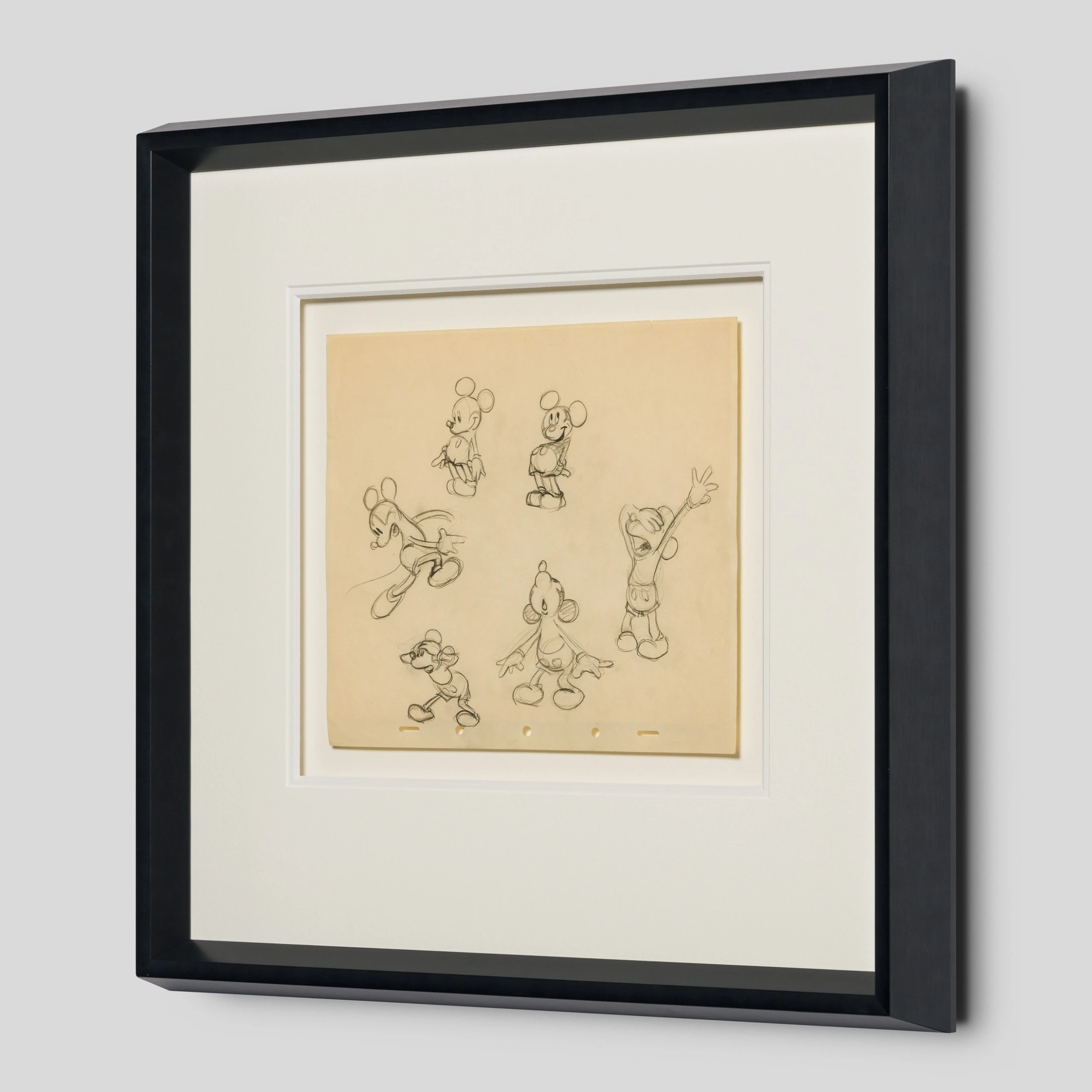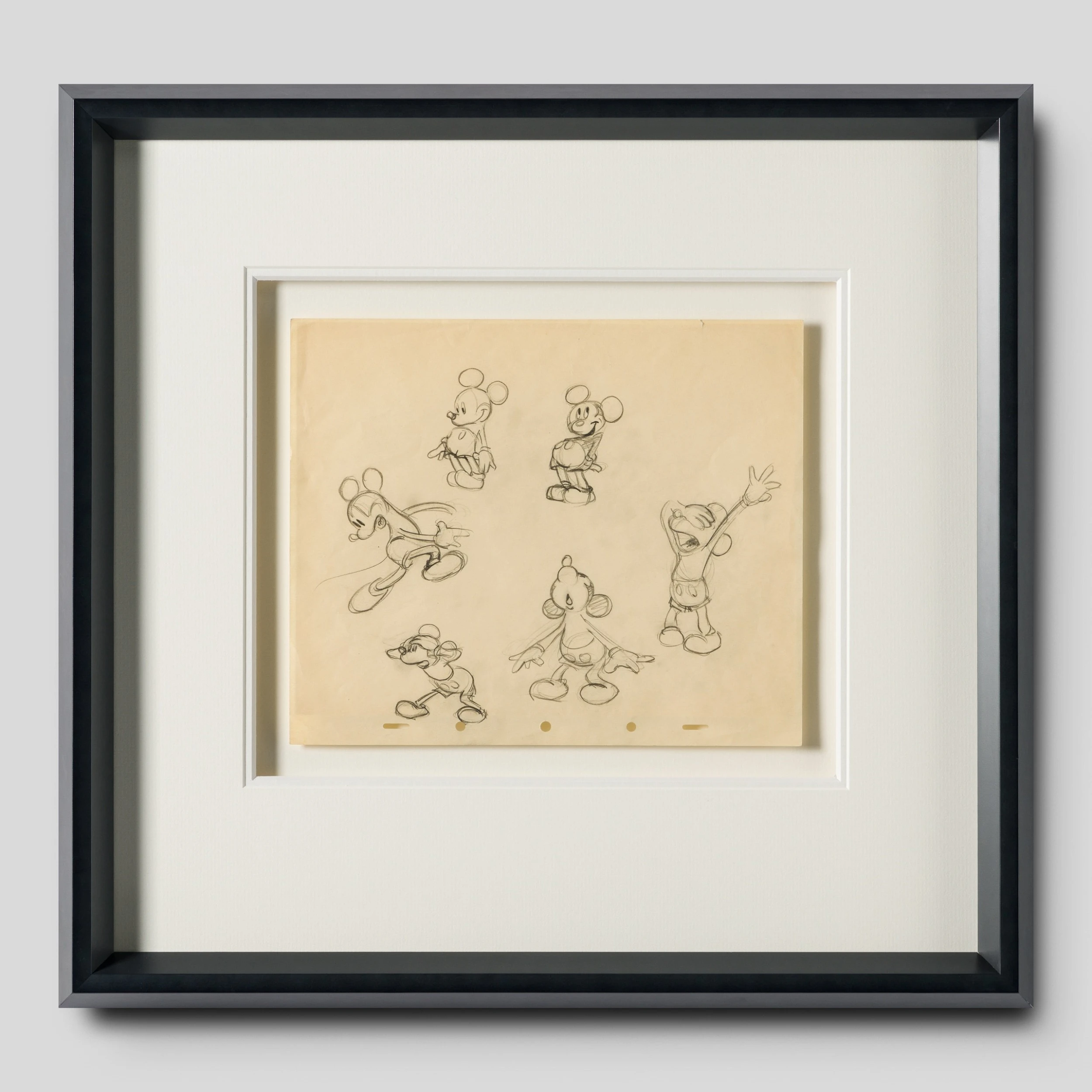 This authentic model sheet from the film’s production would have been used by animators at Walt Disney Studios for the character of Mickey Mouse. Displayed on its original, beautifully aged paper, this drawing showcases the artistic nature of the early animations and their warmly expressive forms. Now mounted and framed, this piece is the perfect way to add a sophisticated and muted touch of Disney magic to your home. Match with another drawing from our to create a perfect pair.