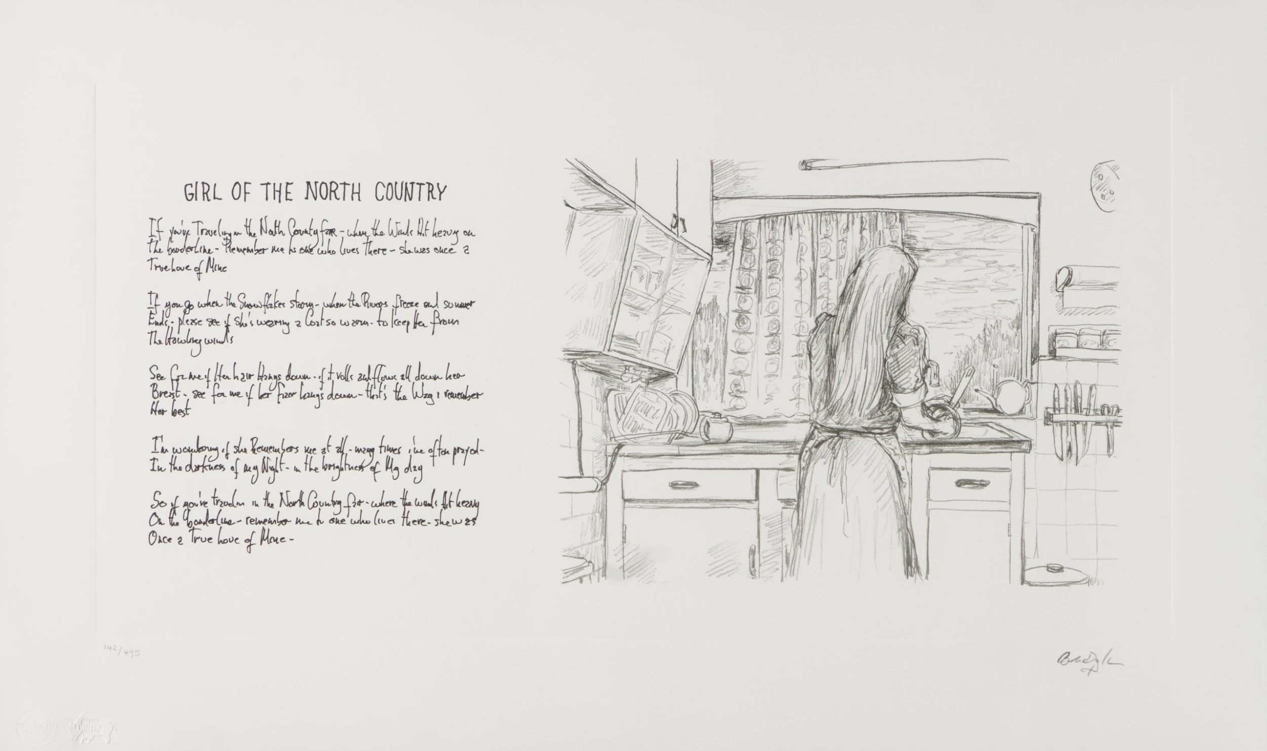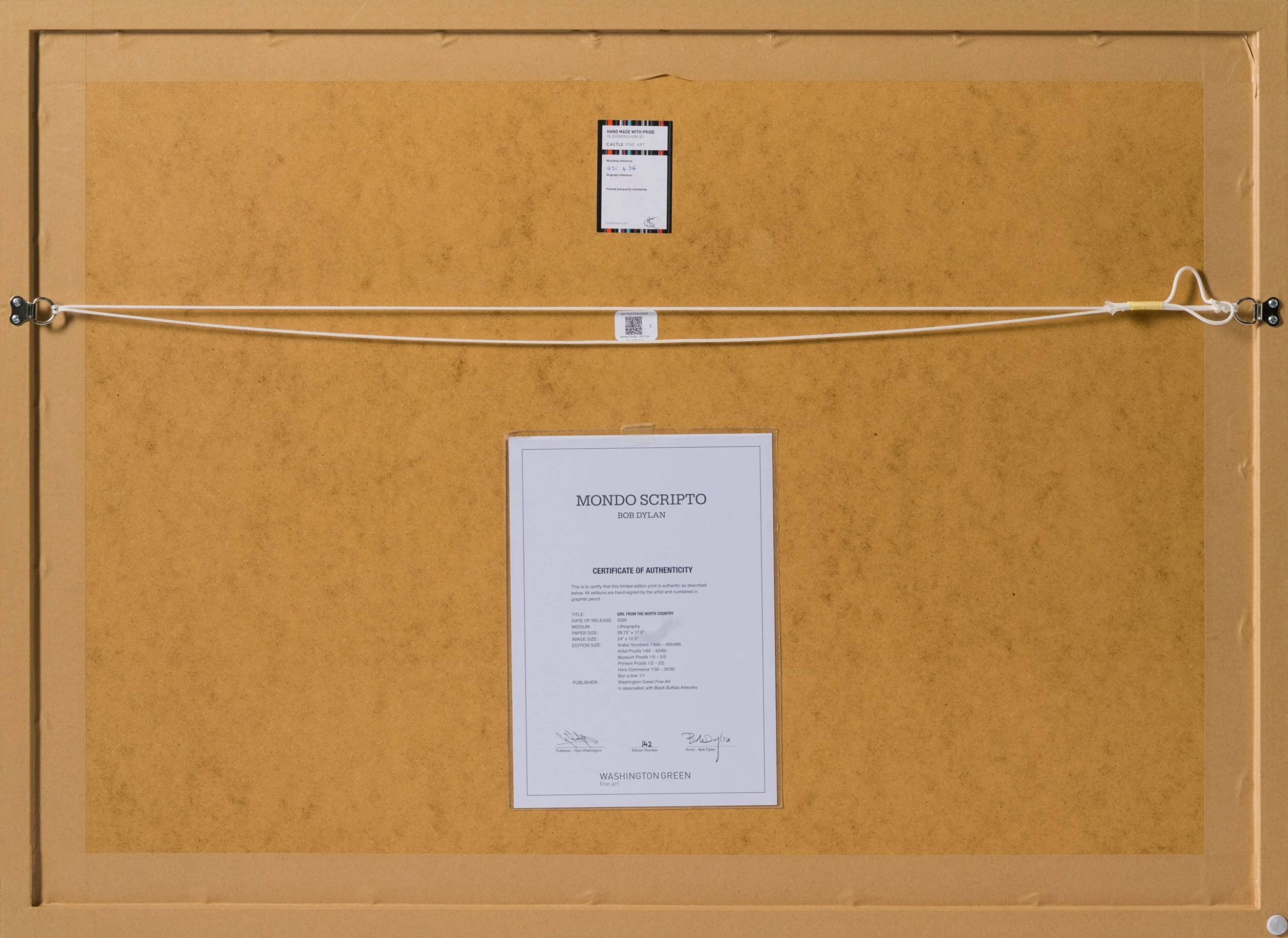 A hand-signed, limited edition print on paper by Bob Dylan.
