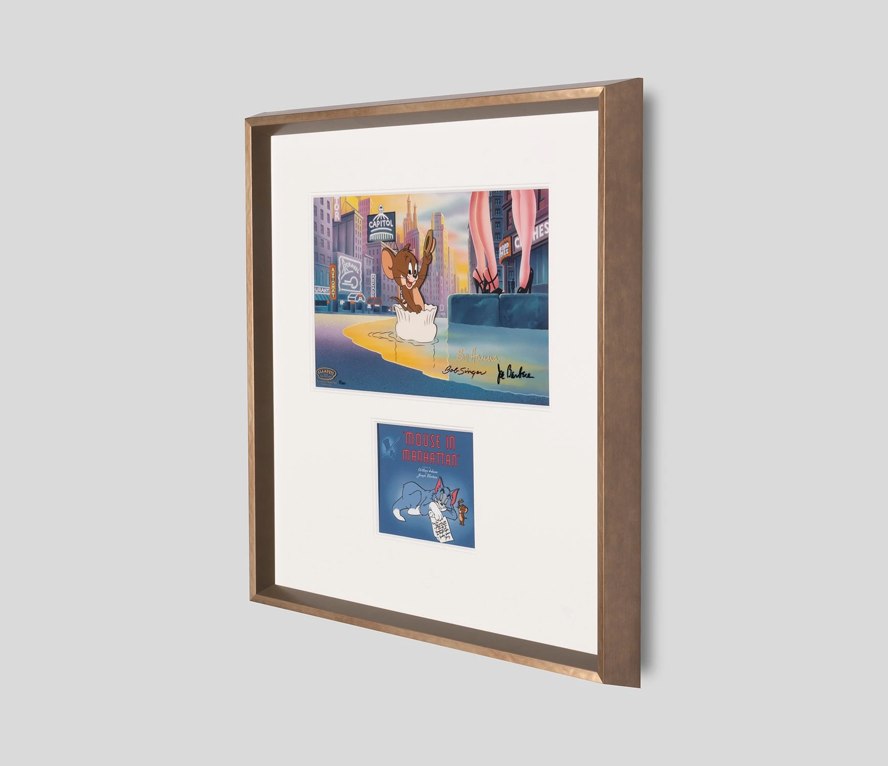 Signed by Bob Singer and Joseph Barbera, this artwork comprises both a hand-painted title card and larger animation cel on a giclée background. Paying homage to the original animators’ techniques, where each still would be hand-drawn and painted onto acetate cels and set against separate painted backgrounds, the hand-painted nature of these cels captures the magic and passion that those early animators had in the mid to late 20th century.