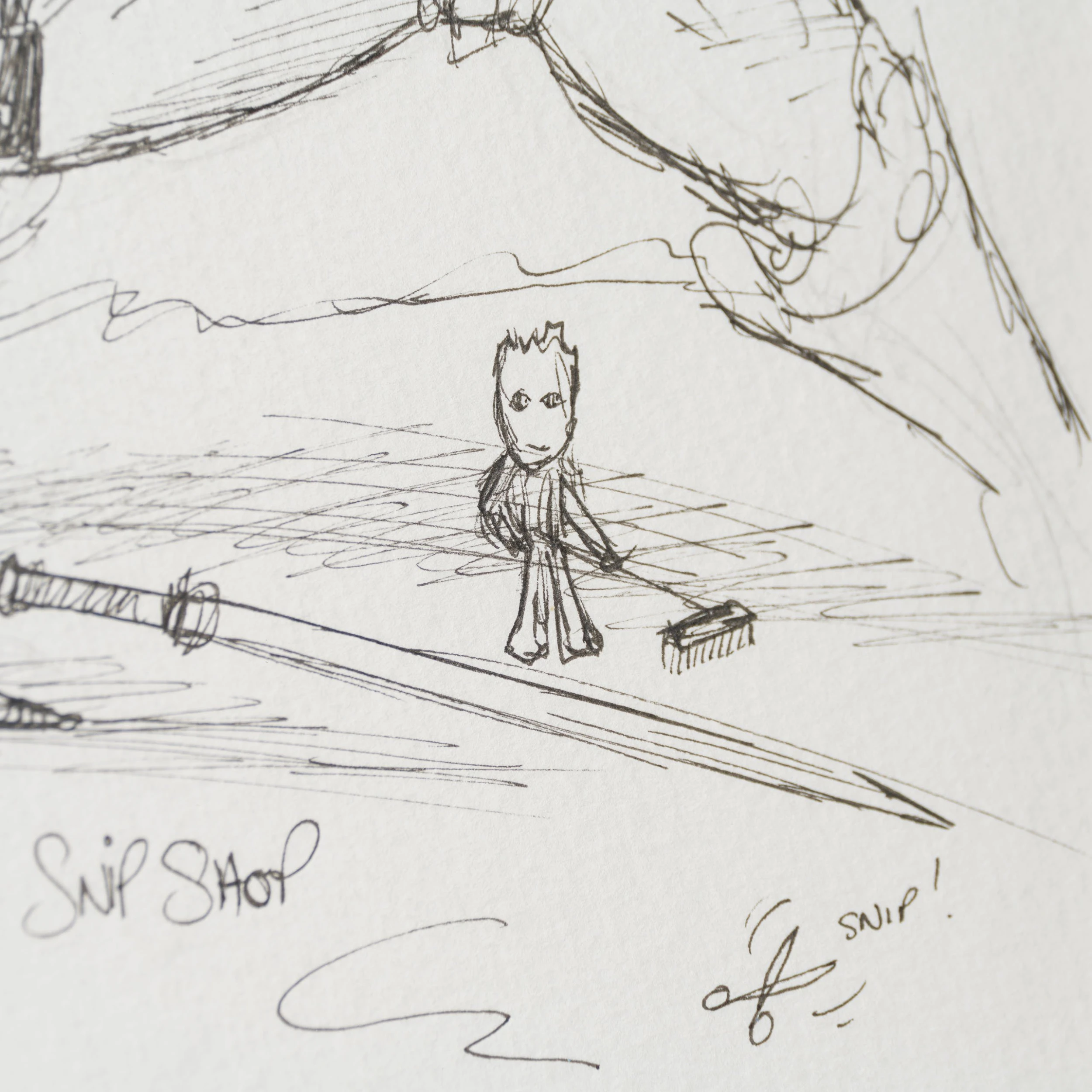 In a simple yet brilliant and captivating drawing, Peter Smith takes us back into a fantastical world. The precision of the pencil and the different layers of depth create dynamic movement between the three characters portrayed in this piece.