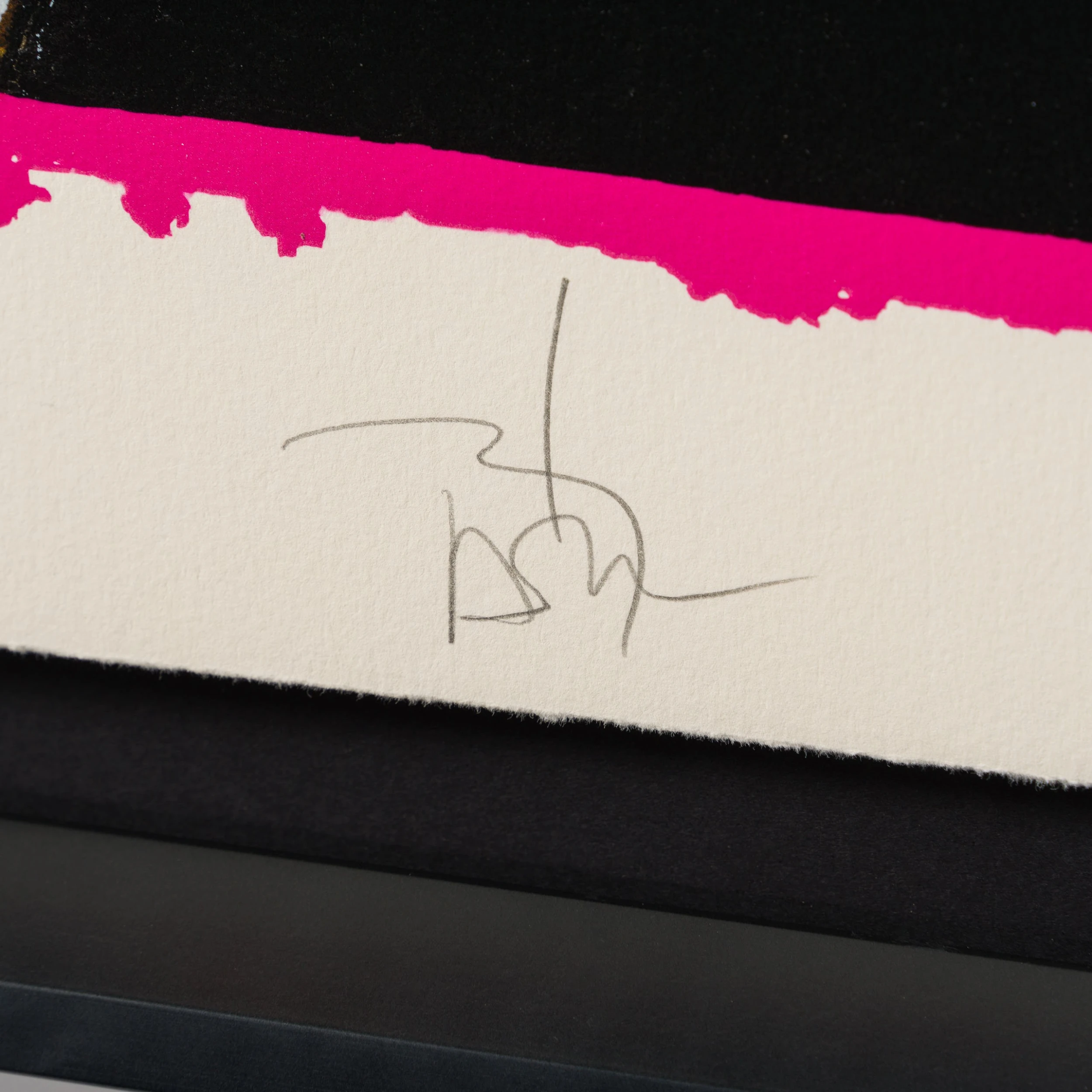 The hand-signed limited edition artwork is a Silkscreen and Archival Pigment with Gold Leaf on paper. Each artwork is printed on high-quality heavyweight 640gsm Waterford NOT paper with deckle edges, hand-signed by Johnny Depp and emboss stamped by hand with Johnny’s personal mark of authenticity, The Bunnyman.
