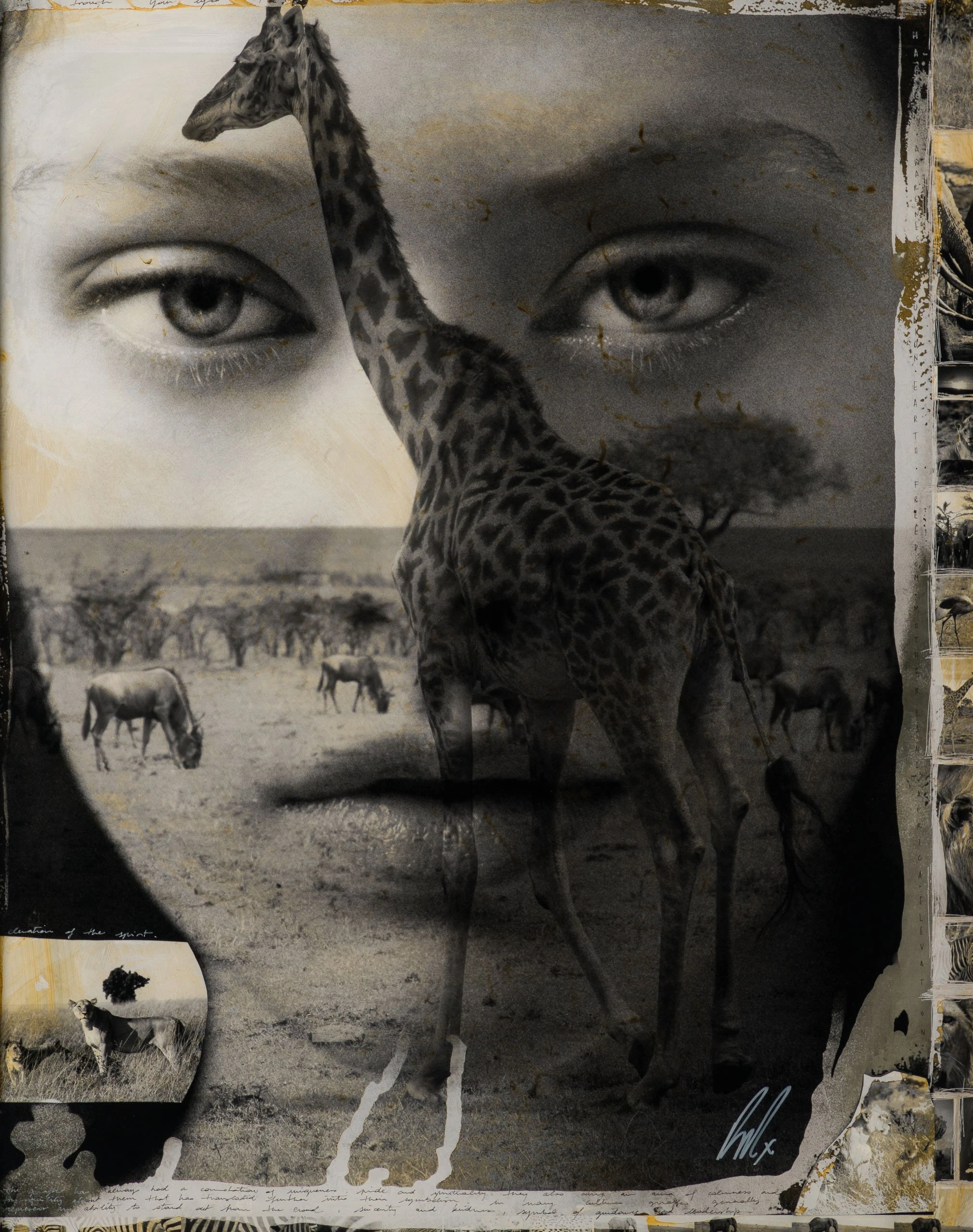 Mazzucco’s visual narrative captures the human form against a backdrop of startling landscapes that span the continents, from Icelandic glaciers to African and Brazilian wildlife. By layering paint, photography, resin and hand-lettered text, the globally acclaimed photographer and sell-out takes viewers on a documentary-style journey through geographic and emotional terrains. “Beauty layered with natural elements has always been my recipe. Nothing we create can compare to the perfect beauty of nature.”