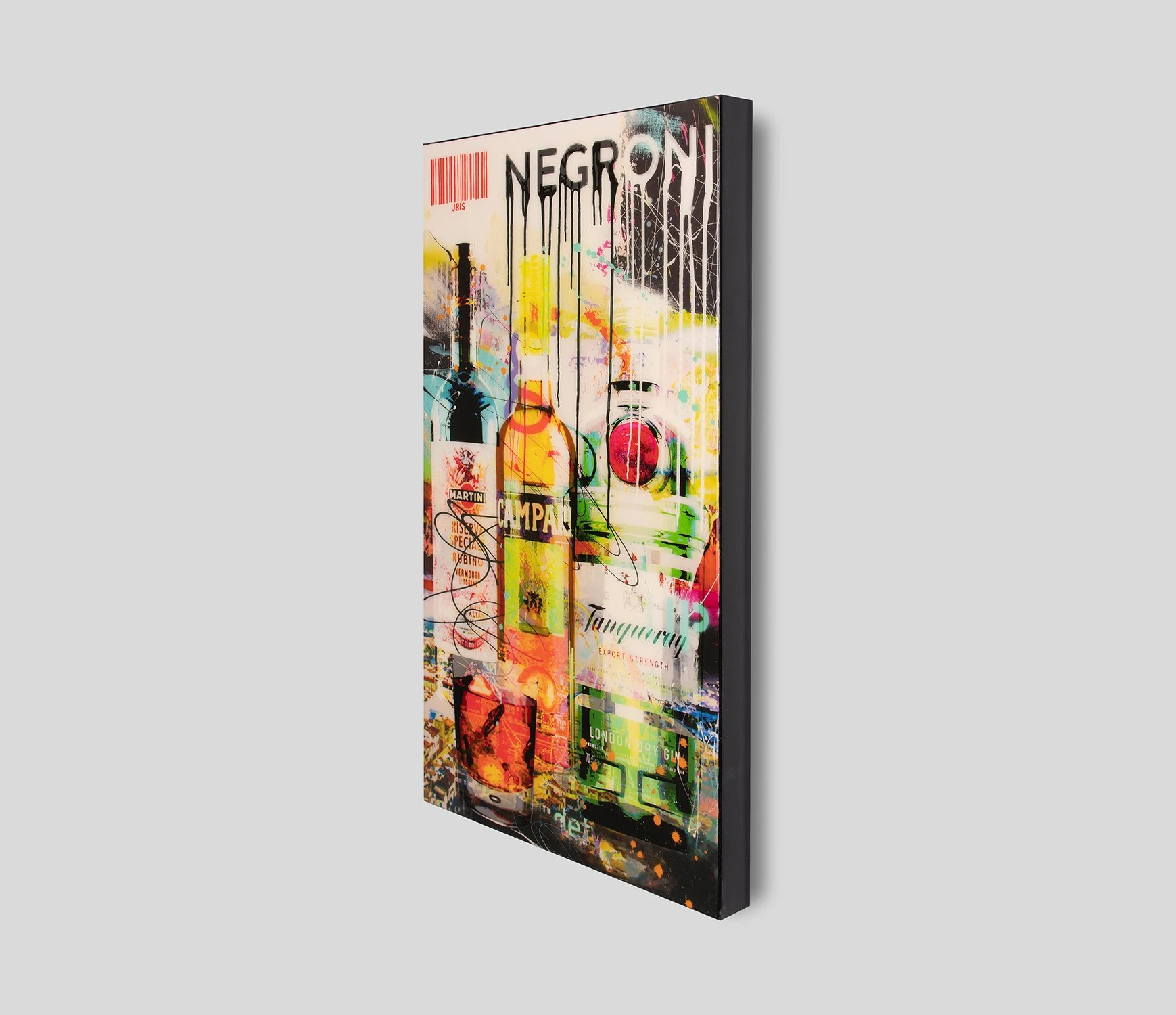 The subject matter of this original is also exciting because it inherits a fascinating history of art and alcohol that can range from Caravaggioâs 16th century painting of the Greek God of Wine âBacchusâ, to Jeff Koonâs collaboration with Dom PĂ©rignon. Most significantly, it inherits the brothersâ own inspiration Andy Warhol who collaborated with Absolut Vodka in the 1980s, famously blurring the line between artists and brands which the Bisaillon Brothers continue to push in their extraordinary artwork.