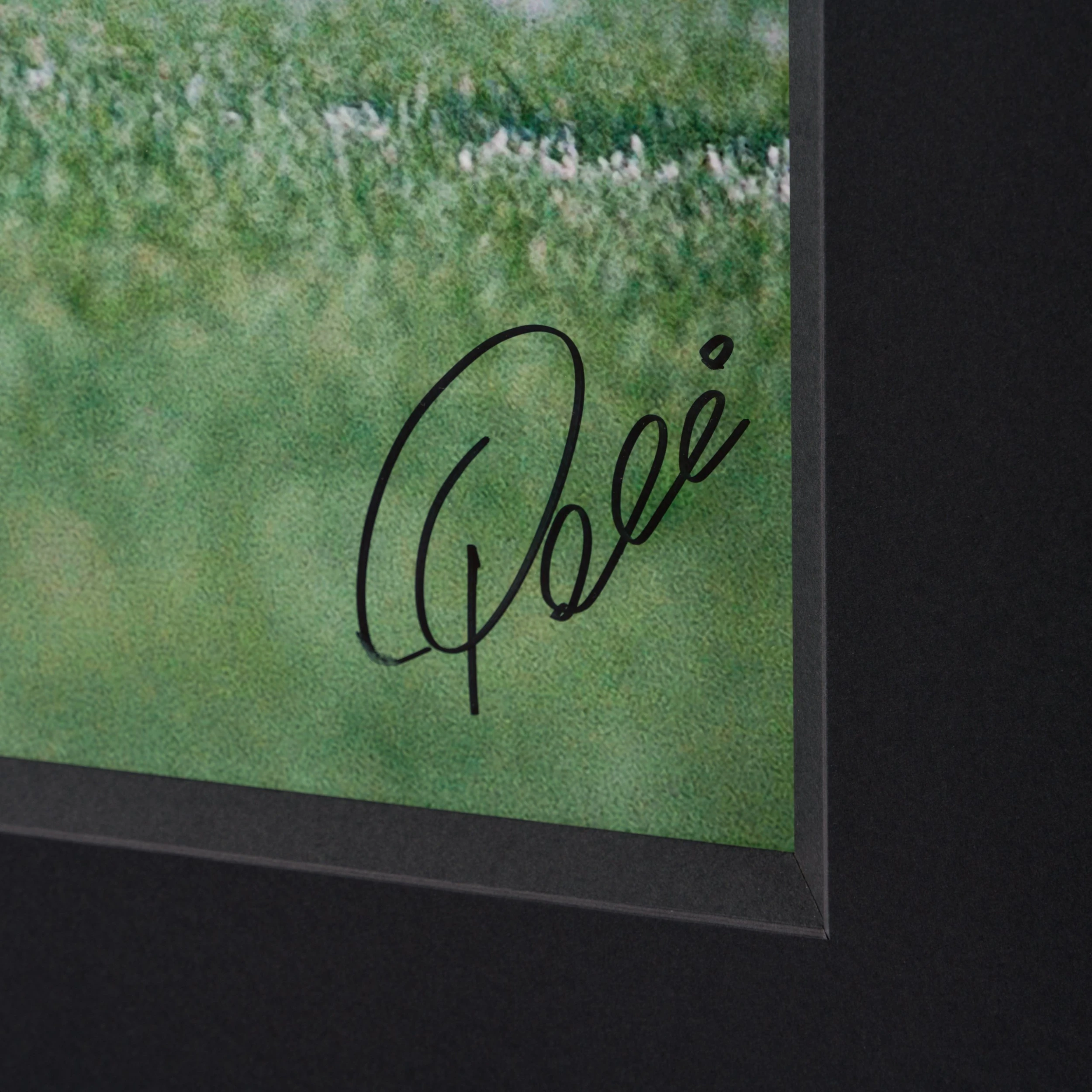 Named ‘Football Player of the Century’ by FIFA, Pelé is one of the most celebrated football players in history. The only man to win the World Cup three times, the Brazilian footballer had tremendous vision and an electrifying pace, having set numerous records at international level. Hand-signed by Pelé himself, this captivating photograph captures not only his skills on the field and as a player, but the passion and humility of the man behind the legend.
