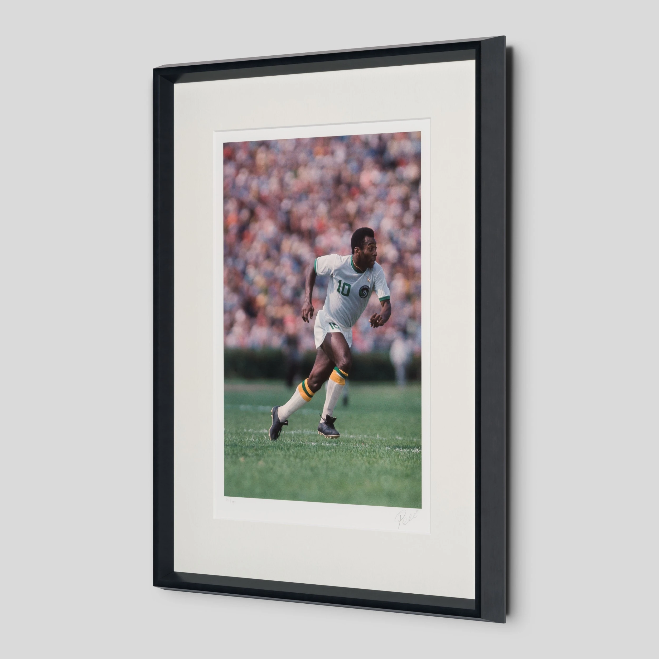 Named ‘Football Player of the Century’ by FIFA, Pelé is one of the most celebrated football players in history. The only man to win the World Cup three times, the Brazilian footballer had tremendous vision and an electrifying pace, having set numerous records at international level. Hand-signed by Pelé himself, this captivating photograph captures not only his skills on the field and as a player, but the passion and humility of the man behind the legend.