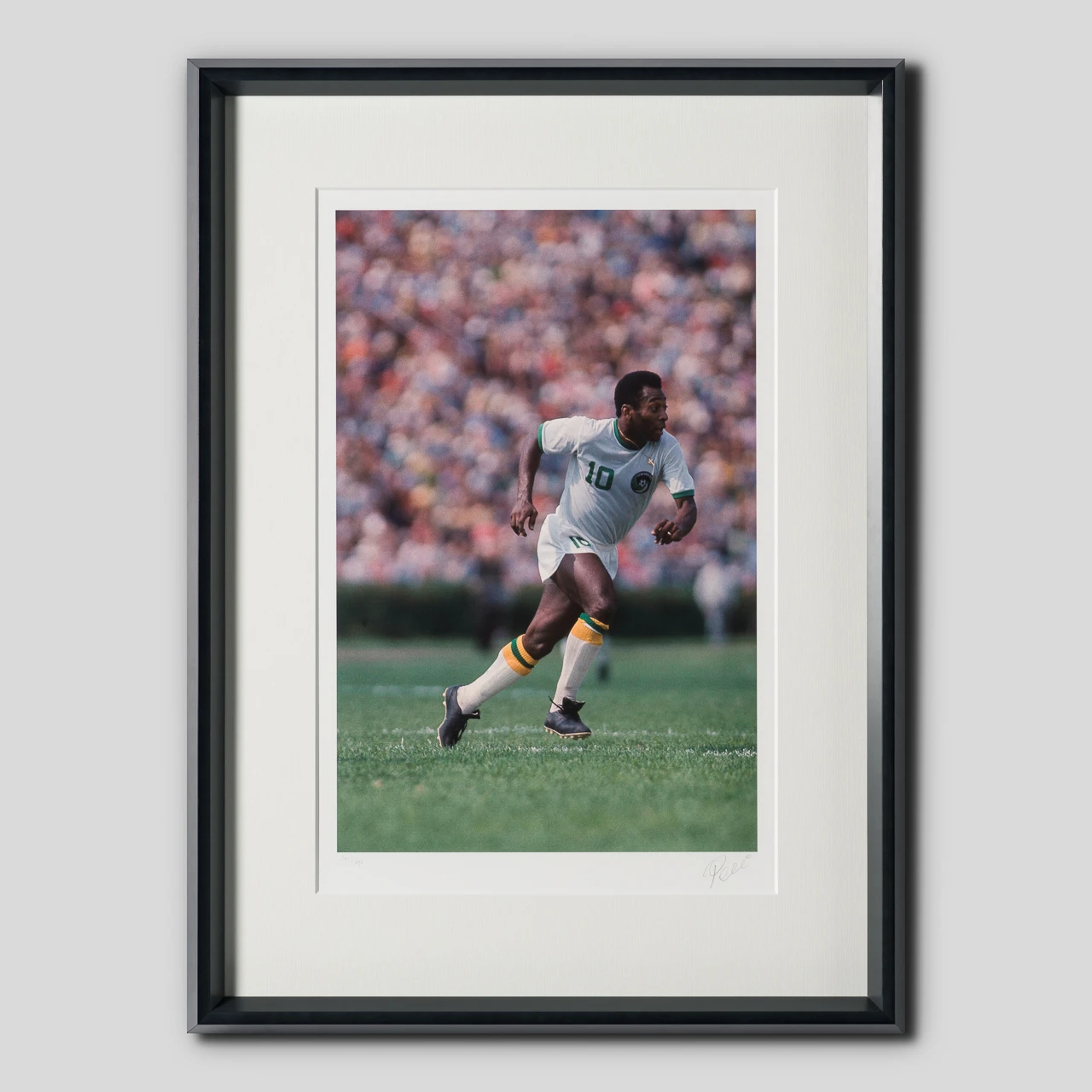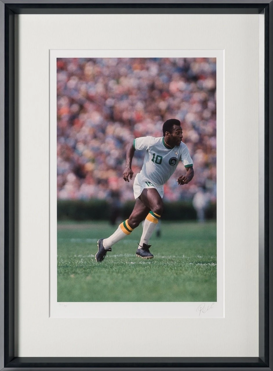 A signed, limited edition Giclée on paper which captures legendary Brazilian footballer Pelé.