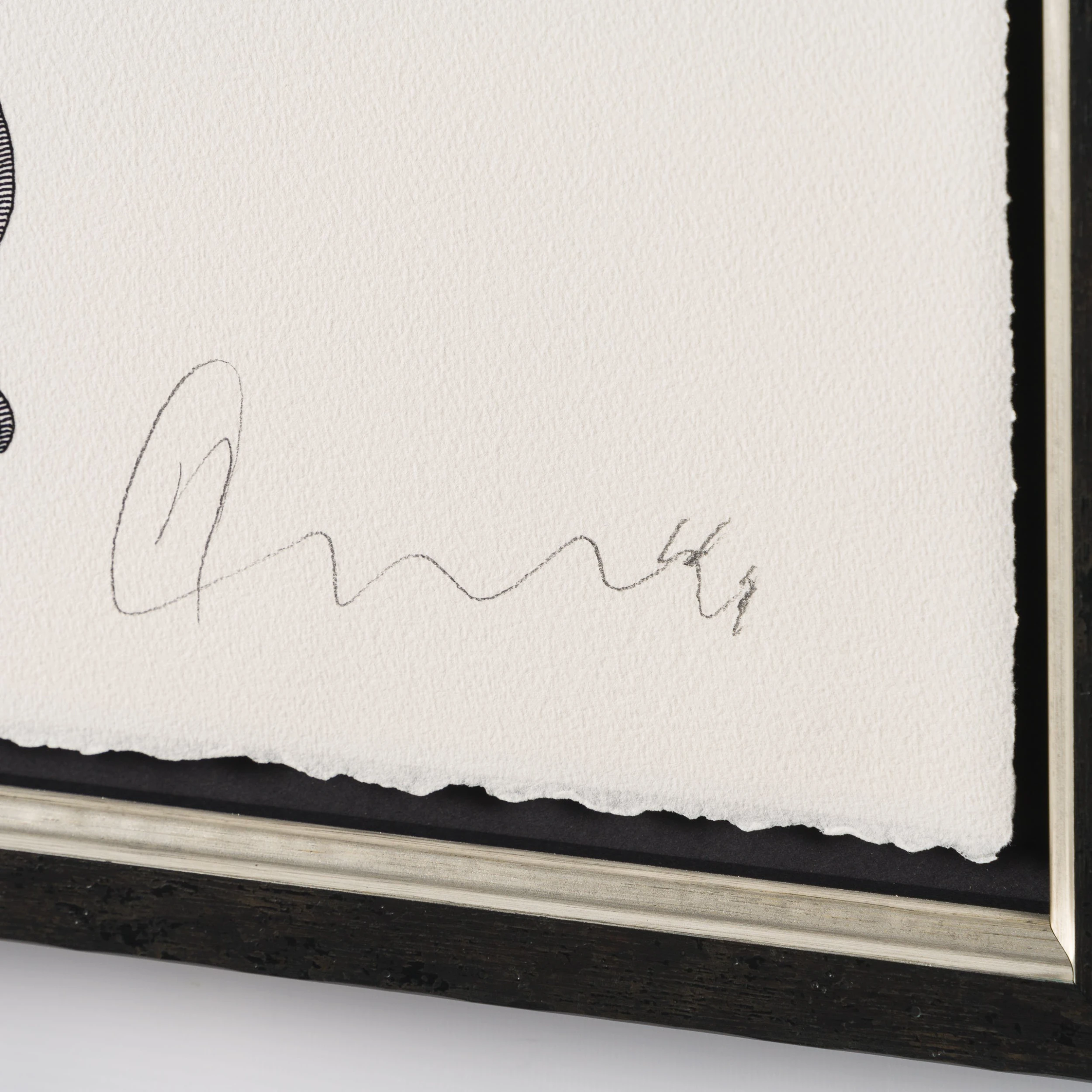 Given the artwork is a Double Hit Flatbed Giclée Print, the texture and glossiness of the line’s contrast beautifully with the deckle-edged 100% Cotton Aquarelle Arches-Torchon 300gsm paper. Hand-signed by The Big Yin himself, this artwork will add a bold and humorous touch of musical and comedic history to your home.