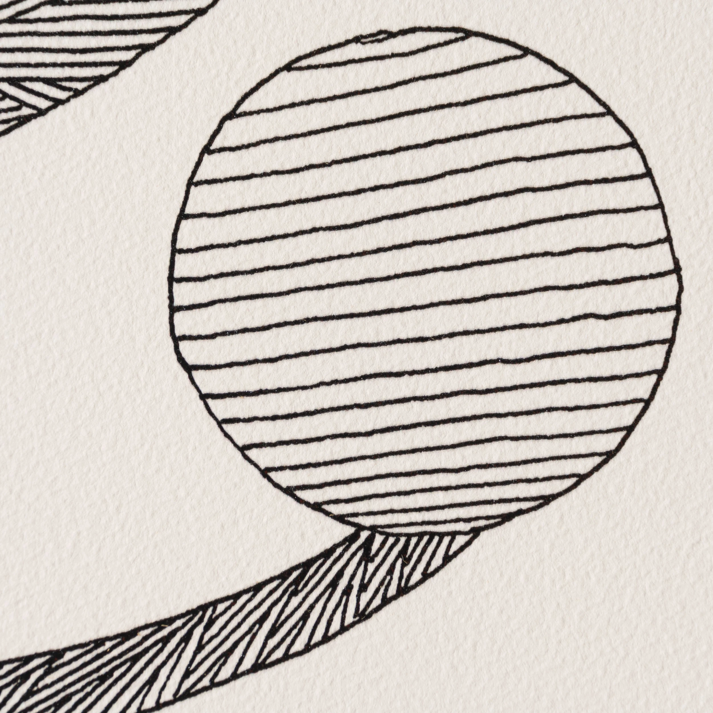 In his unmistakeable monochrome style, Connolly has revisited his own original style with the return of black and white drawings. While there’s pathos and darkness, the humour and wit reflected in “One Armed Juggler” is a true contemplation of Connolly’s character. Featuring one of his figurines juggling circular shapes, tying this representation to “people battling against futile odds”, Billy told us “I wanted the people to come to the conclusion themselves what the drawing was”.