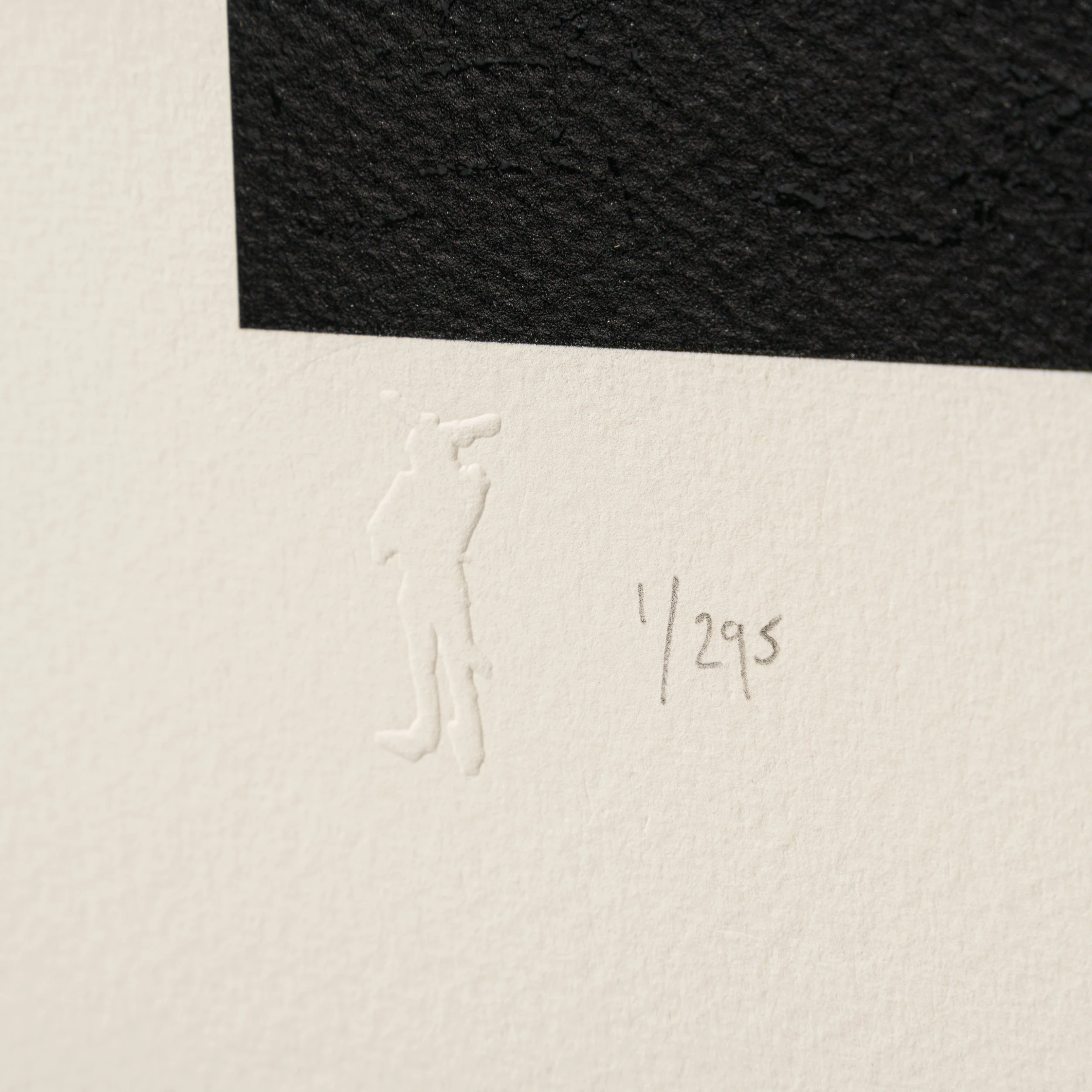 The hand-signed limited edition artwork is a Silkscreen and Archival Pigment with Gold Leaf on paper. Each artwork is printed on high-quality heavyweight 640gsm Waterford NOT paper with deckle edges, hand-signed by Johnny Depp and emboss stamped by hand with Johnny’s personal mark of authenticity, The Bunnyman.