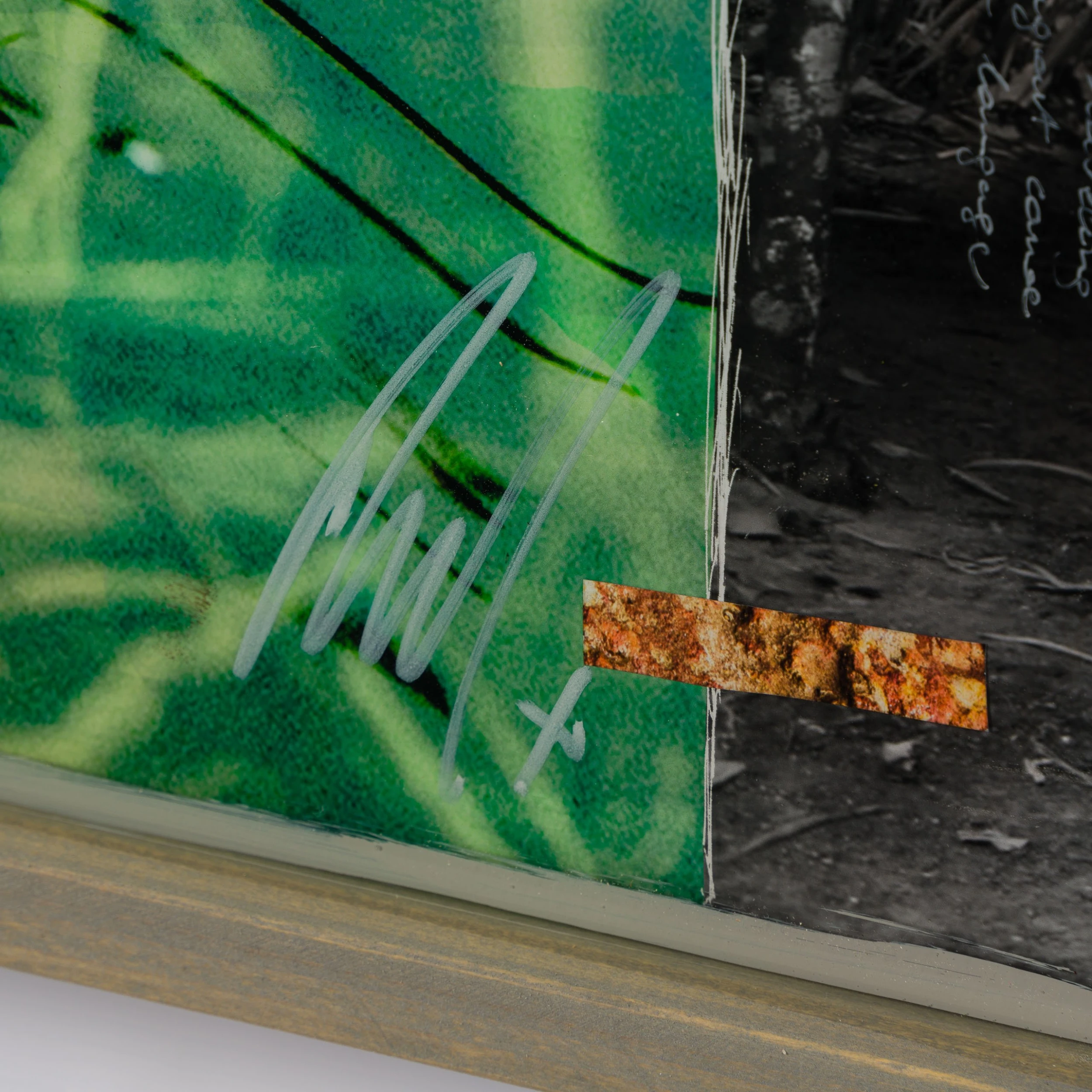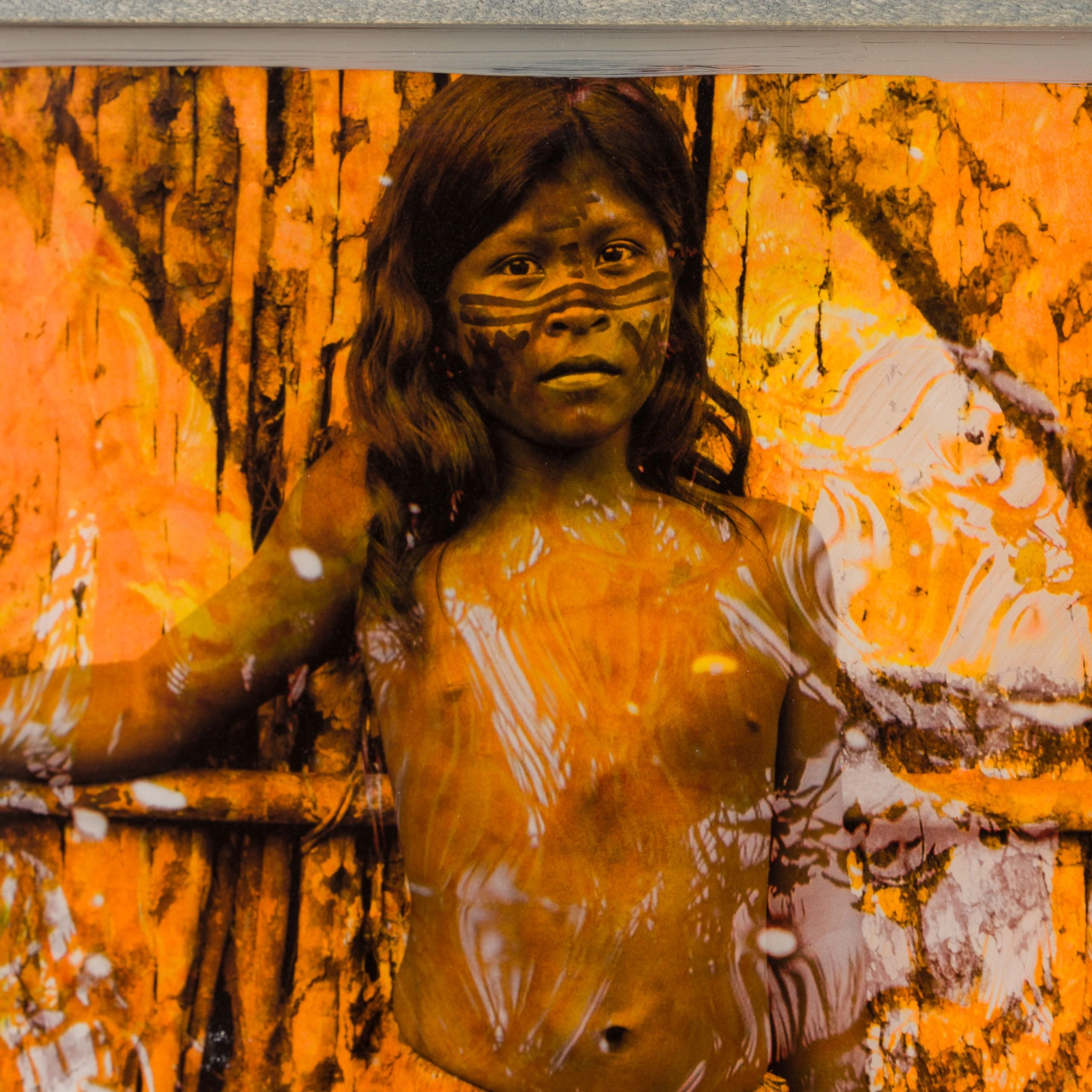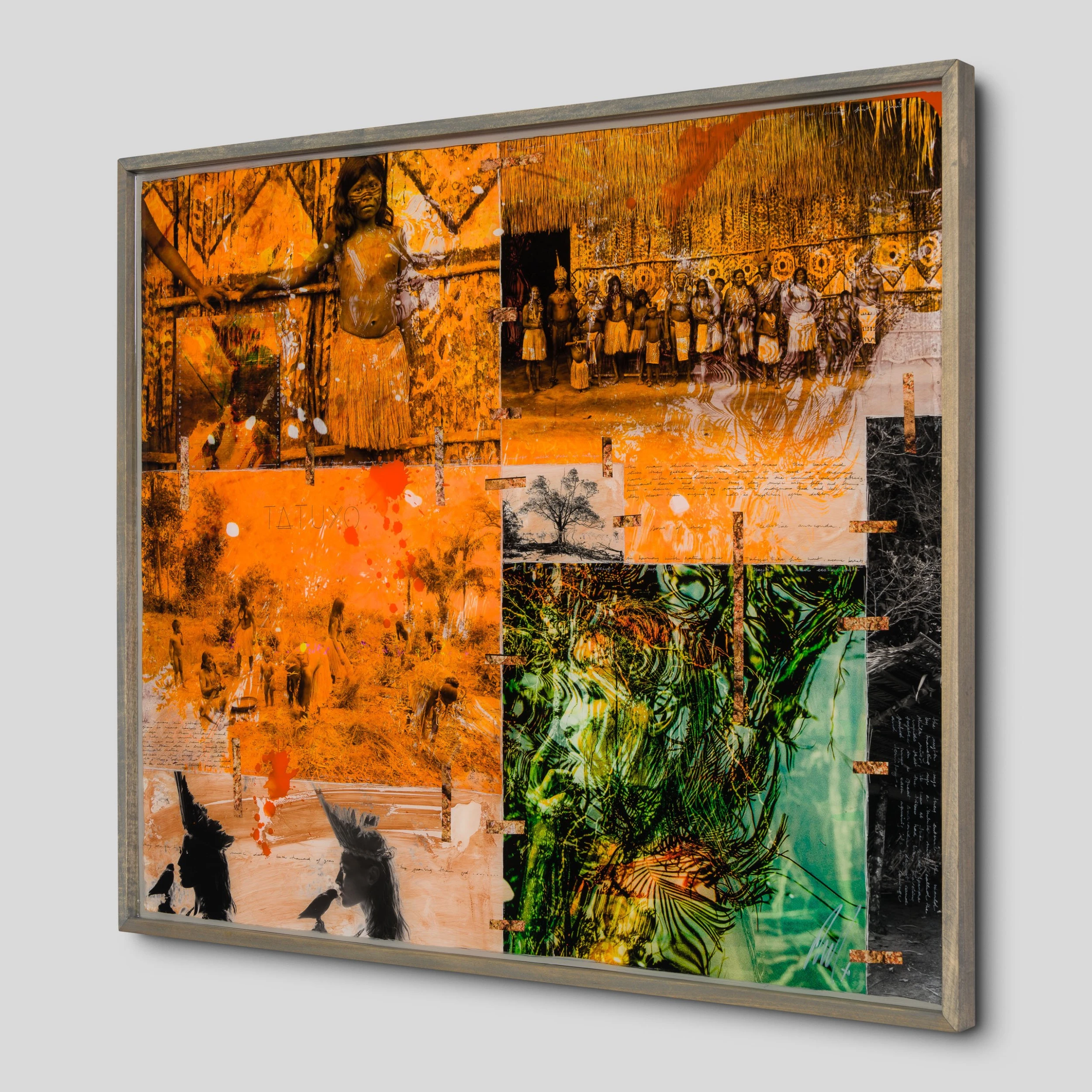 With Moroccan pigments and Vietnamese paints, Mazzucco’s pieces are characterised by the juxtaposition between wildlife and cultural photography, this incredible piece forms part of his introspective collection Grass Roots 2023. “Paraíso (Paradise)” tells a story in layers. The overlaying of photography, paint, handwriting, and resin adds life into the composition, creating a statement original. The pops of colour added sporadically throughout the composition create the spontaneous dynamic that this wildlife piece represents. The use of different images sizes and its repetition create the intrinsic depth, characteristic of Mazzucco’s originals.