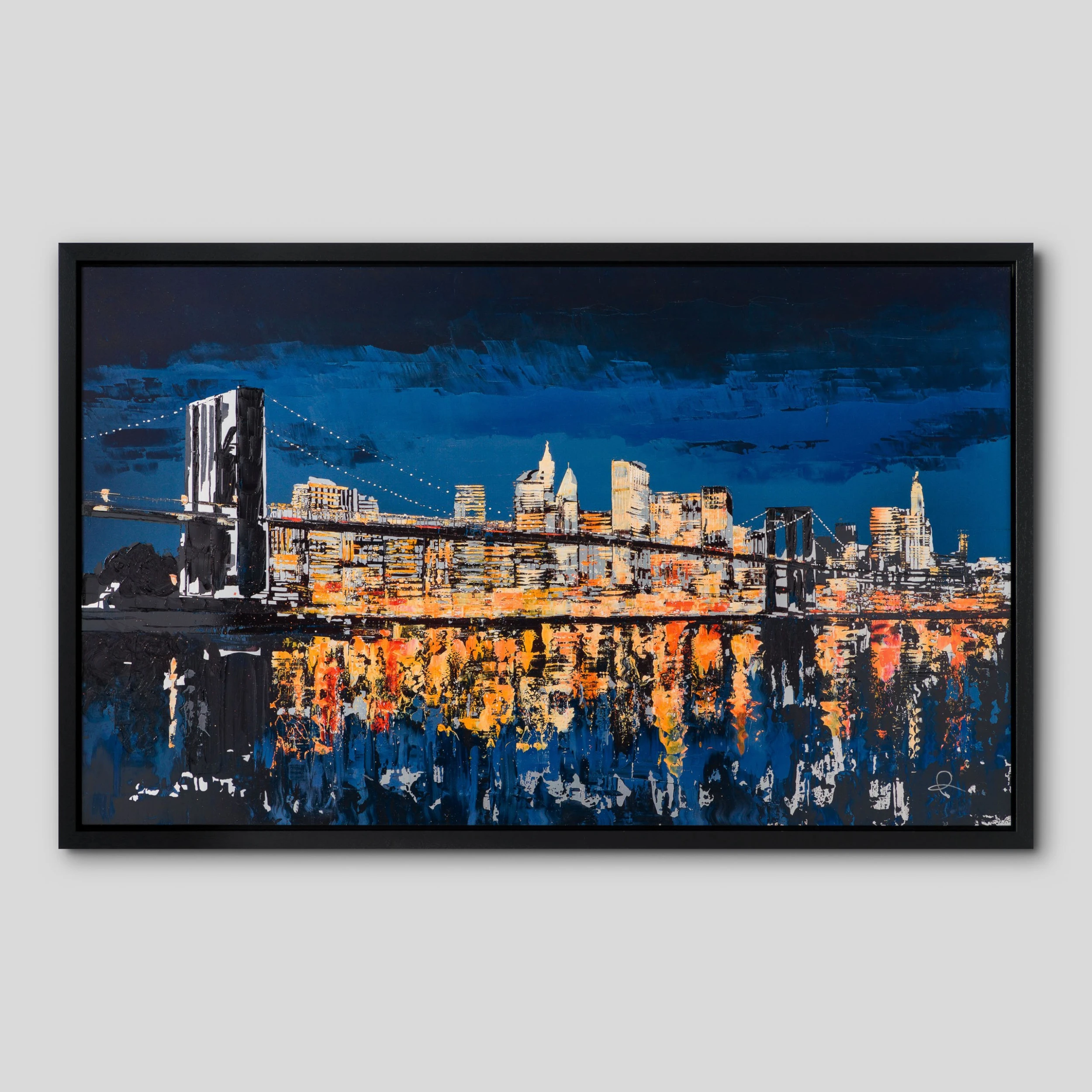 As a running theme through Paul’s paintings, he has used light source as his main inspiration to capture a combination of romantic and lively atmospheres, through his style of impressionist painting. Originally painted on metal, the artist uses oil paint that can go up to 20 layers. Kenton leaves some of the metal exposed which gives another dimension to light, allowing it to reflect surrounding surfaces. All the light is emphasised from the darkness, creating a beautiful strong contrast.