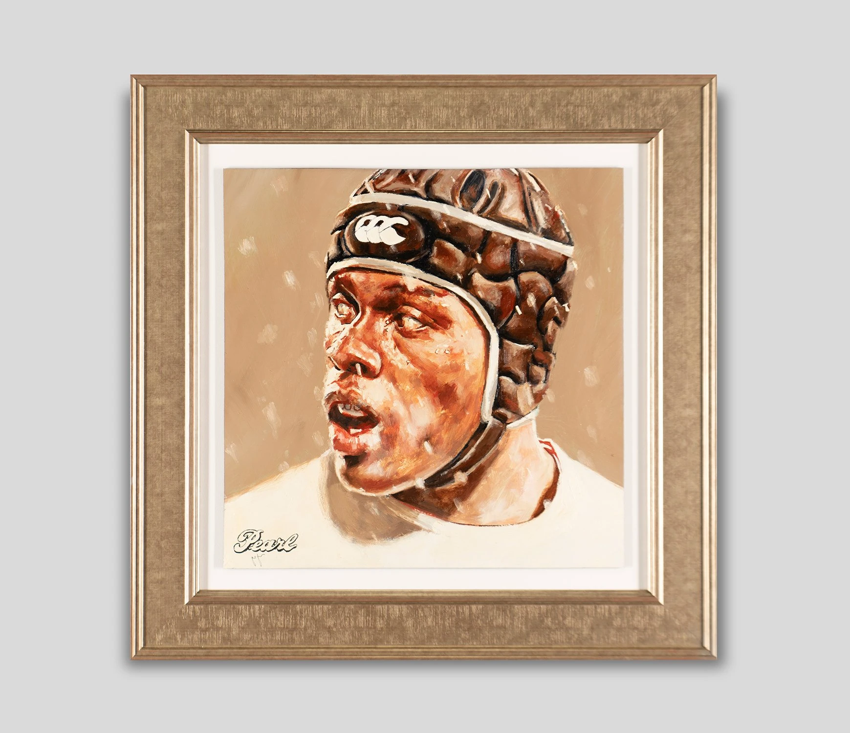 Unlike his dark monochromatic artworks, this beautiful original oil painting is bursting with bright colour and lots of texture. You can see the artist’s focus in his quote: “sometimes I’m so focused on the eyes that suddenly I remember that I also have to paint a nose or a mouth too!”