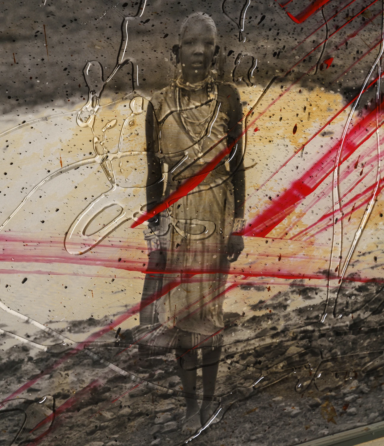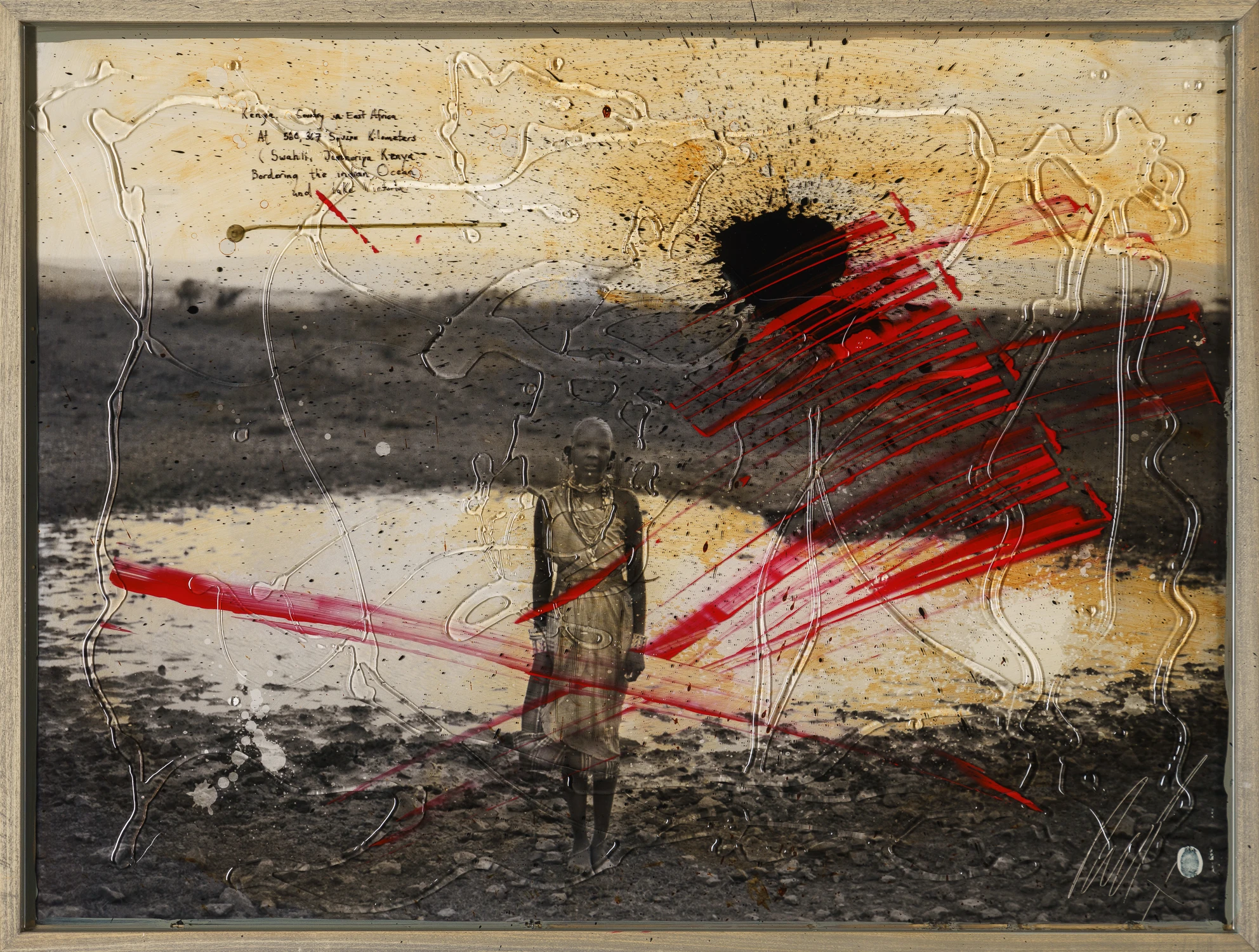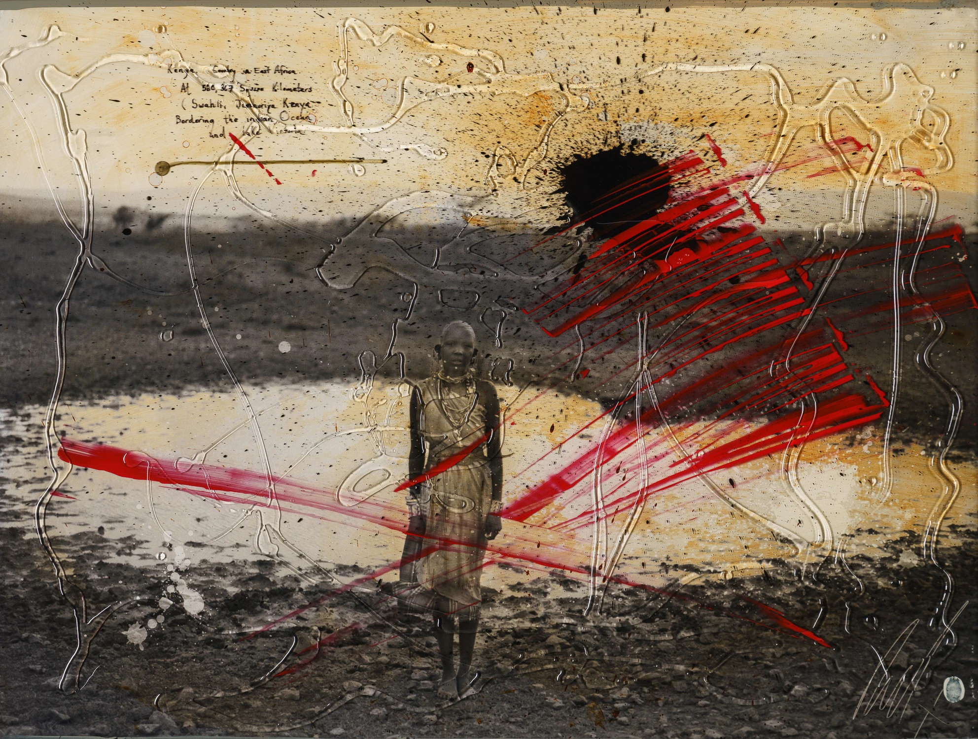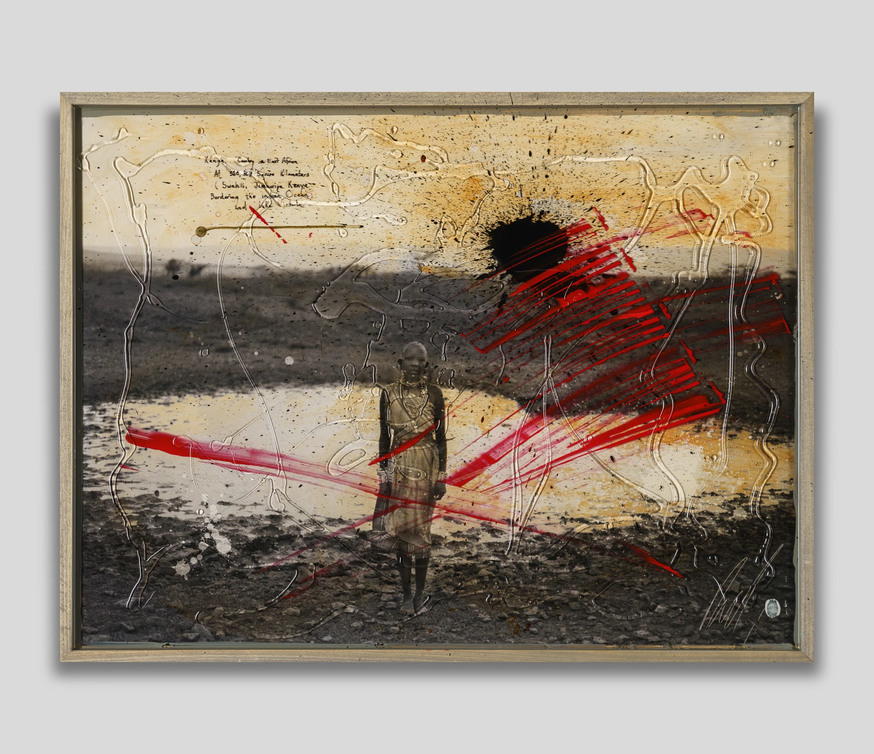 His visual narrative captures the human form against a backdrop of startling landscapes that span the continents, from Icelandic glaciers to African wildlife and Vietnamese rice paddies. By layering paint, photography and hand-lettered text, Raphael takes viewers on a documentary-style journey through geographic and emotional terrains.
