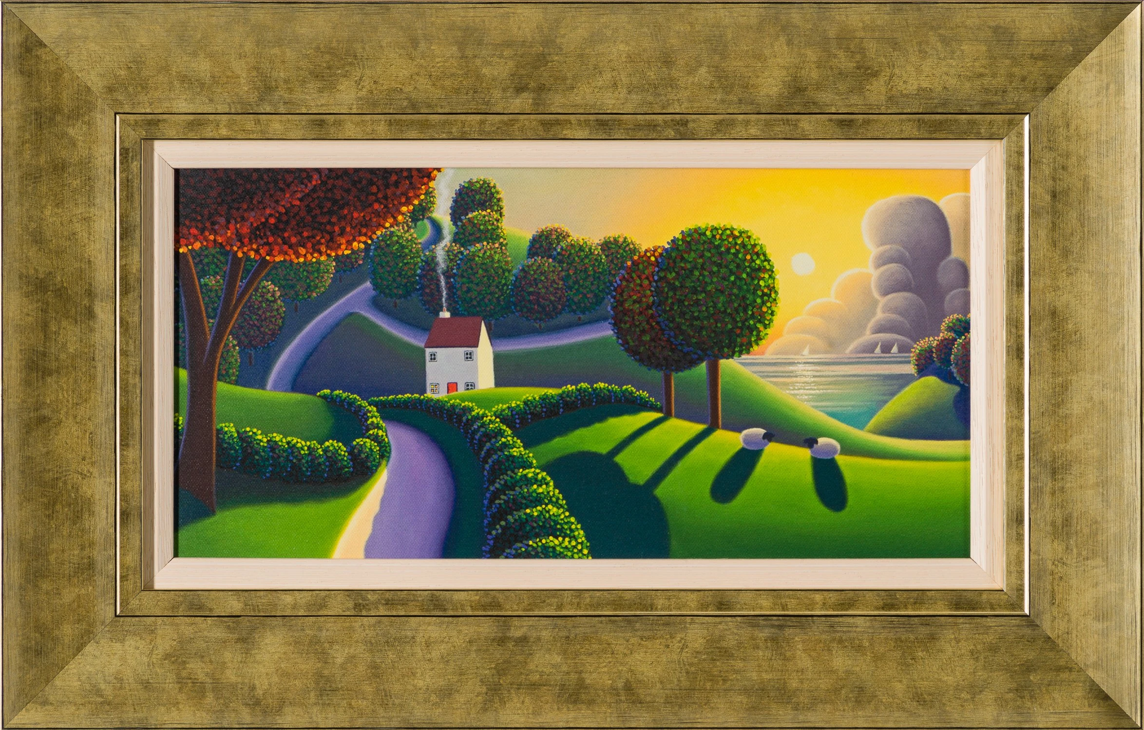 “Where would you like to live today?” This is what the artist asks himself before he starts a painting. Whether it be a totally contrived landscape or one that alludes to various locations across the UK, Paul Corfield creates dreams in paint through his artworks that feel at once both homely and utopian.