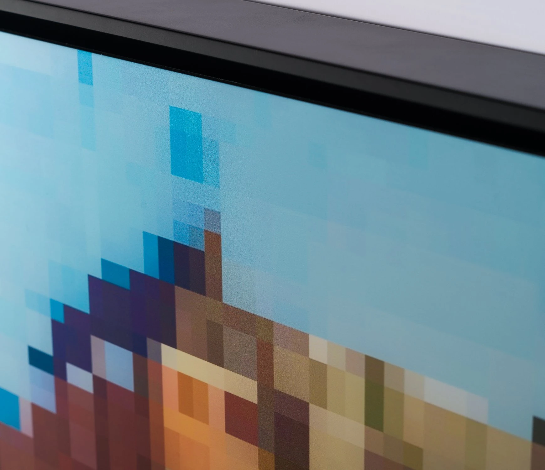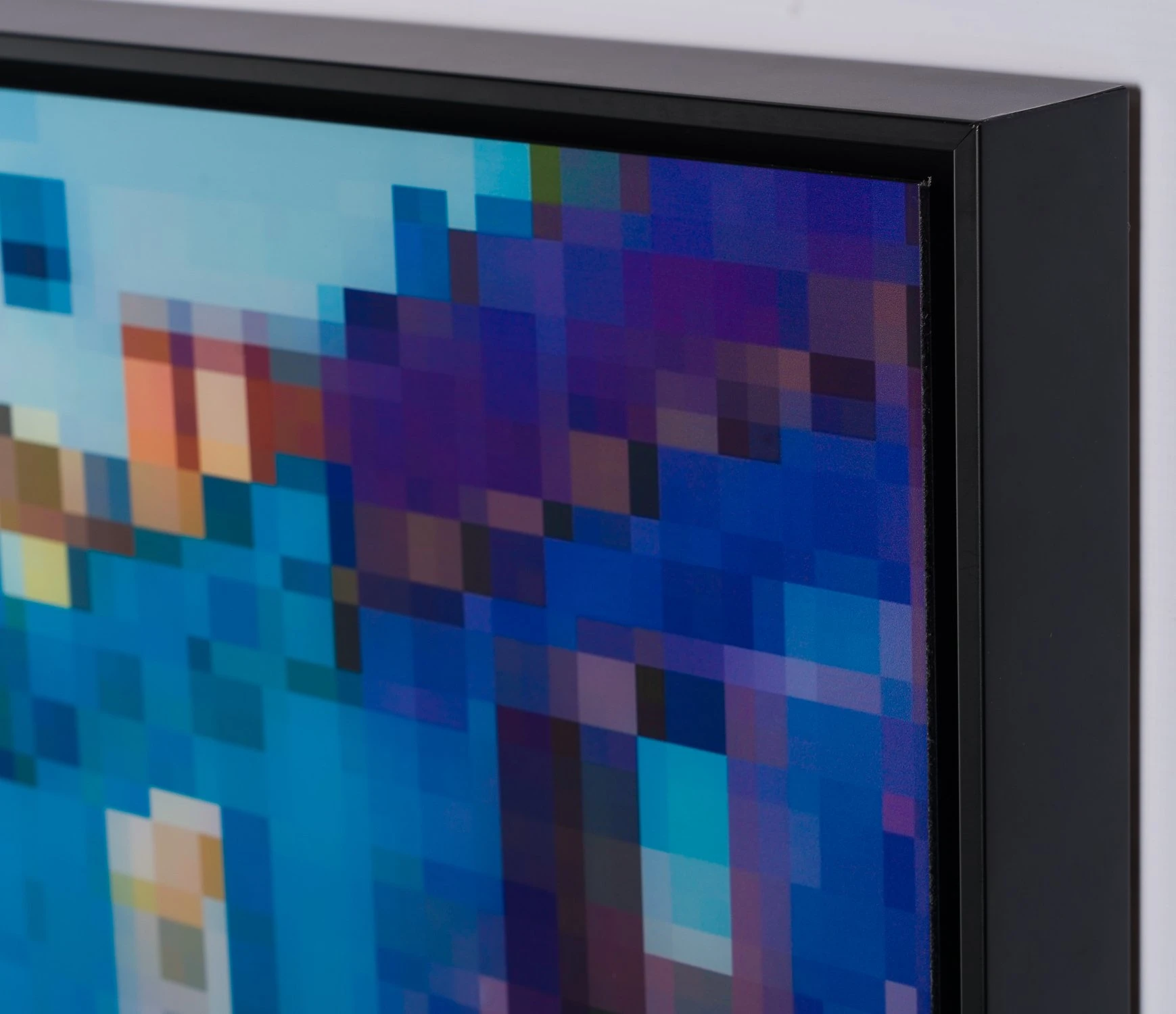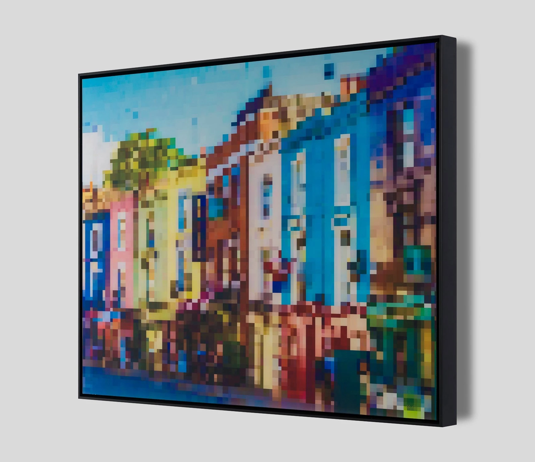 Here, Alex Echo has combined his abstract and colourful artistic approach with digital media to create this contemporary and abstract landscape of a famous London landamark, Portobello Road. Using vibrantly coloured pixels, the well-known image has been distorted but remains recognisable; commenting on the role of images in the digital age.