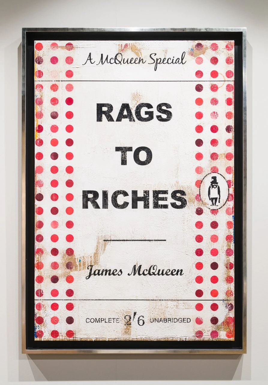 James McQueen is a British artist based between London and New York. Operating under a pseudonym, he has created paintings publicly as James McQueen since 2017. Born from his admiration of Penguin Books, the iconic British publishing company, McQueen’s art appropriates the design and branding of an inexpensive, mass-produced and consumed product to echo Andy Warhol’s appropriated imagery in the Campbell’s Soup paintings. Like Warhol, McQueen celebrates the everyday product by making these book covers monumental and vibrant.