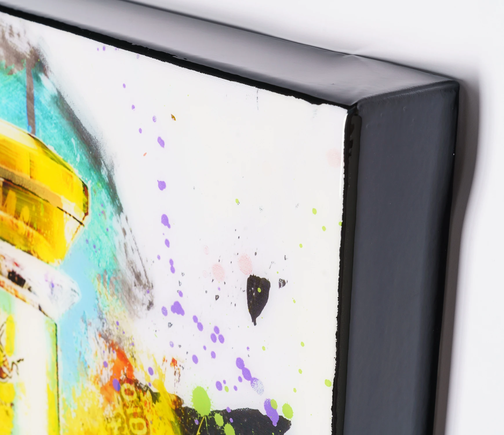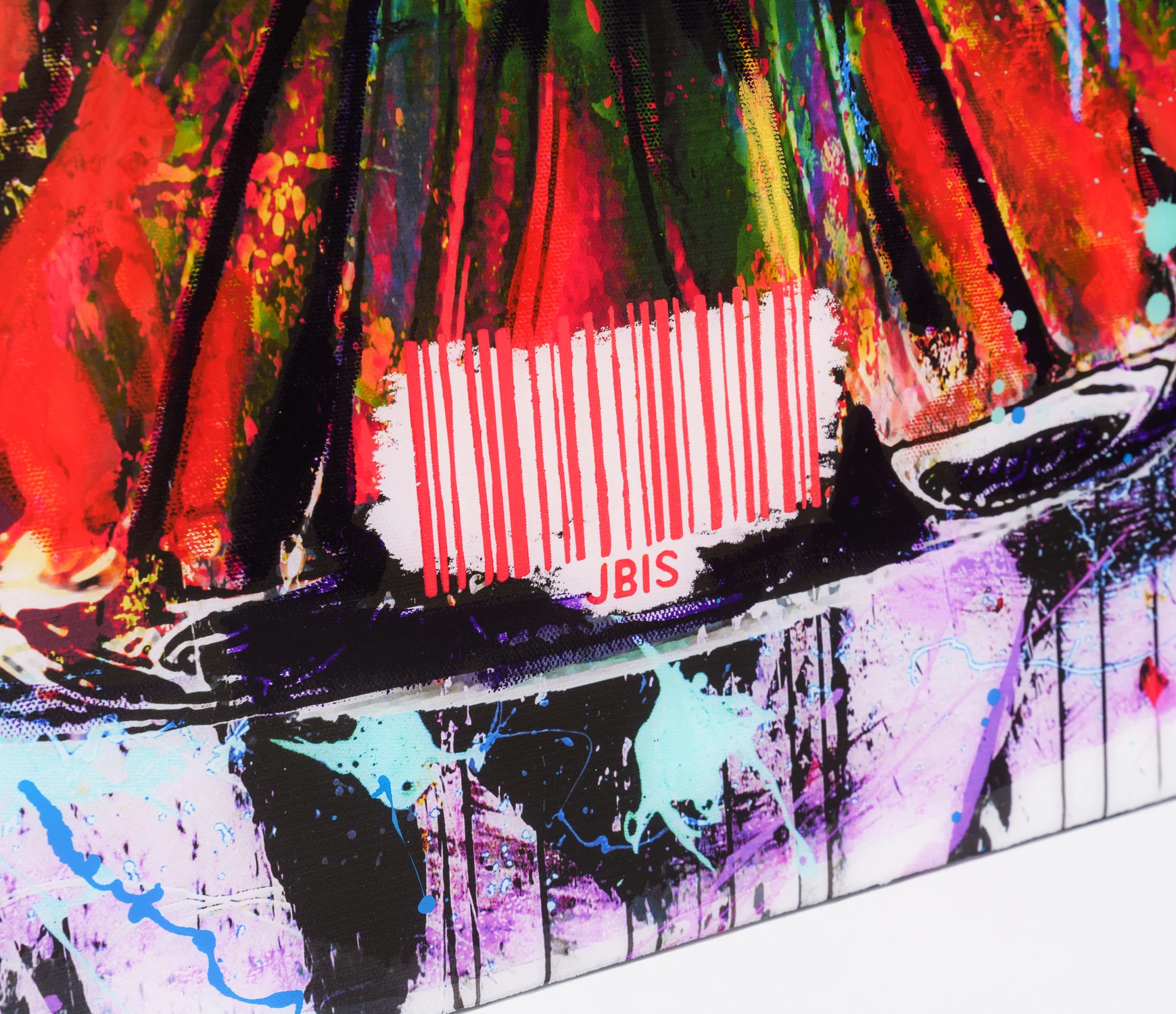 This bubbling and bold original artwork forms part of the Bisaillon Brothers’ Pop Collection. Conceived as an intermediary between iconic imagery and culture, the Pop Collection sees the brothers illustrate classical brands through a range of medium including resin, acrylic paint, graphic design and code; all of which feature in the above original. The latter involves Michael Bisaillonâs own trinary code which he applies as a comment on the conflict between digital and analogue in contemporary society.