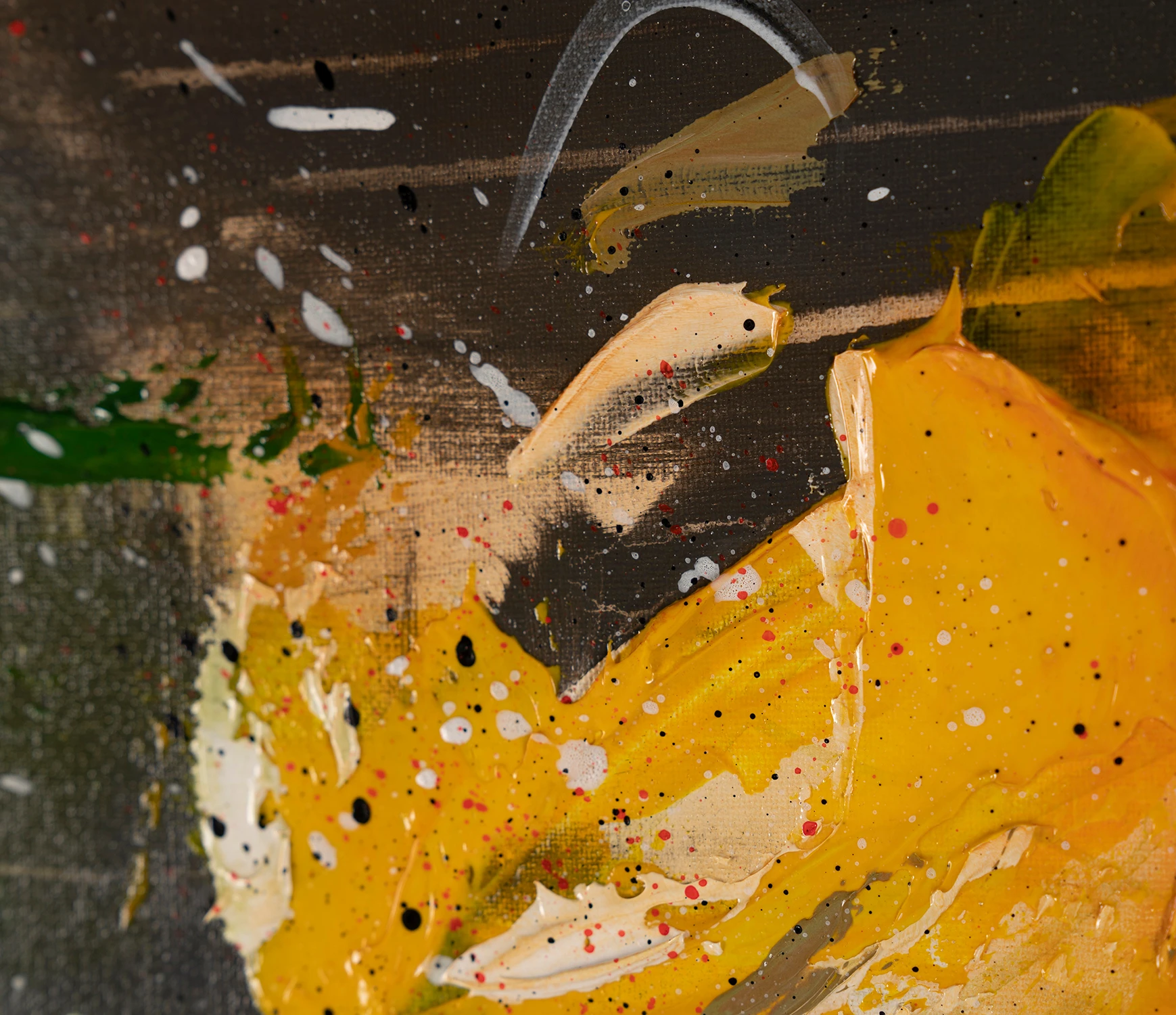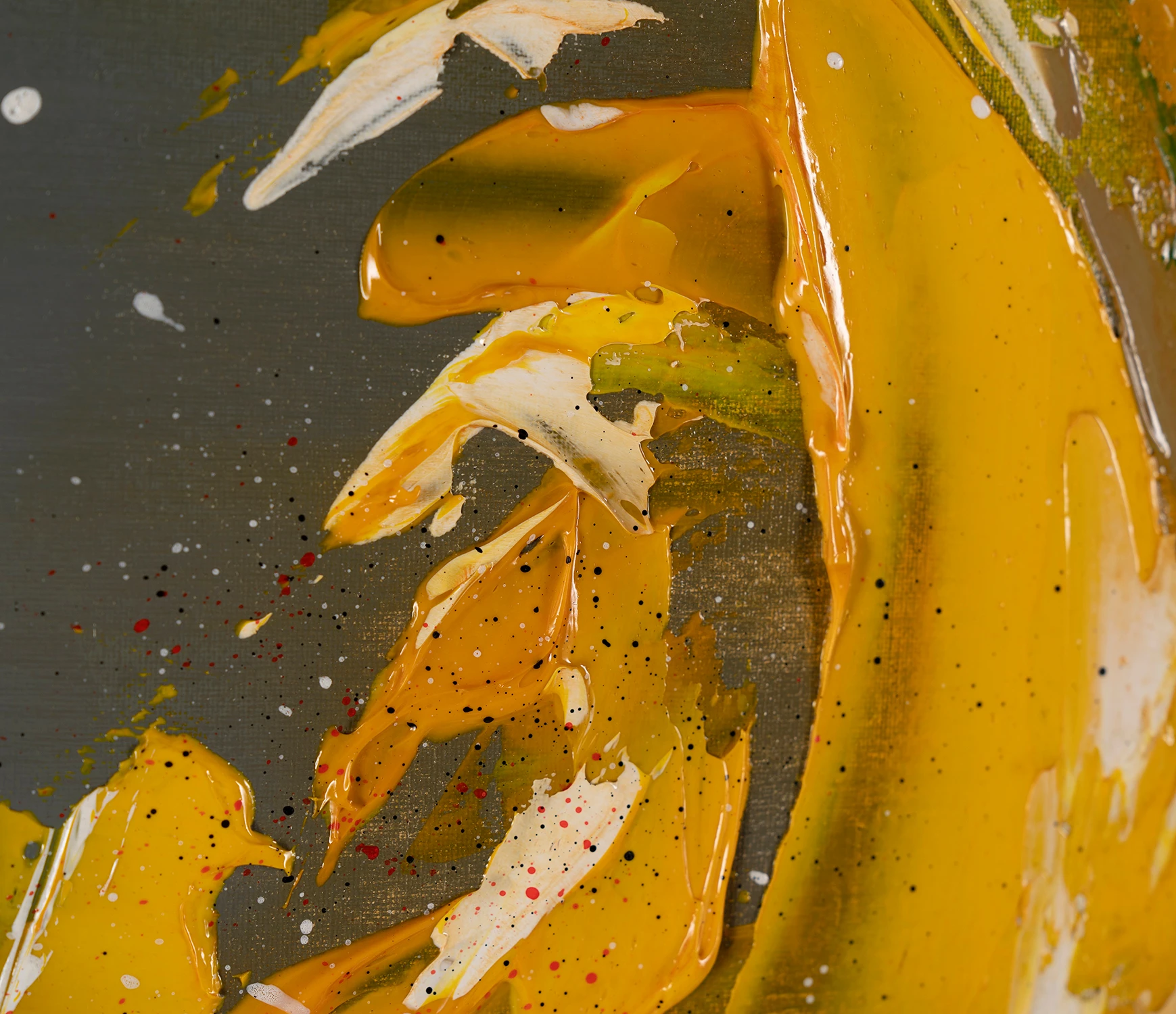 Full of bold colour, heavy texture, and abstract brush strokes, this wonderful original artwork is from Stephen Simpson’s Opus collection. Cheerful, romantic, and uplifting, this stunning artwork is also a contemporary take on one of the oldest genres of art history!
