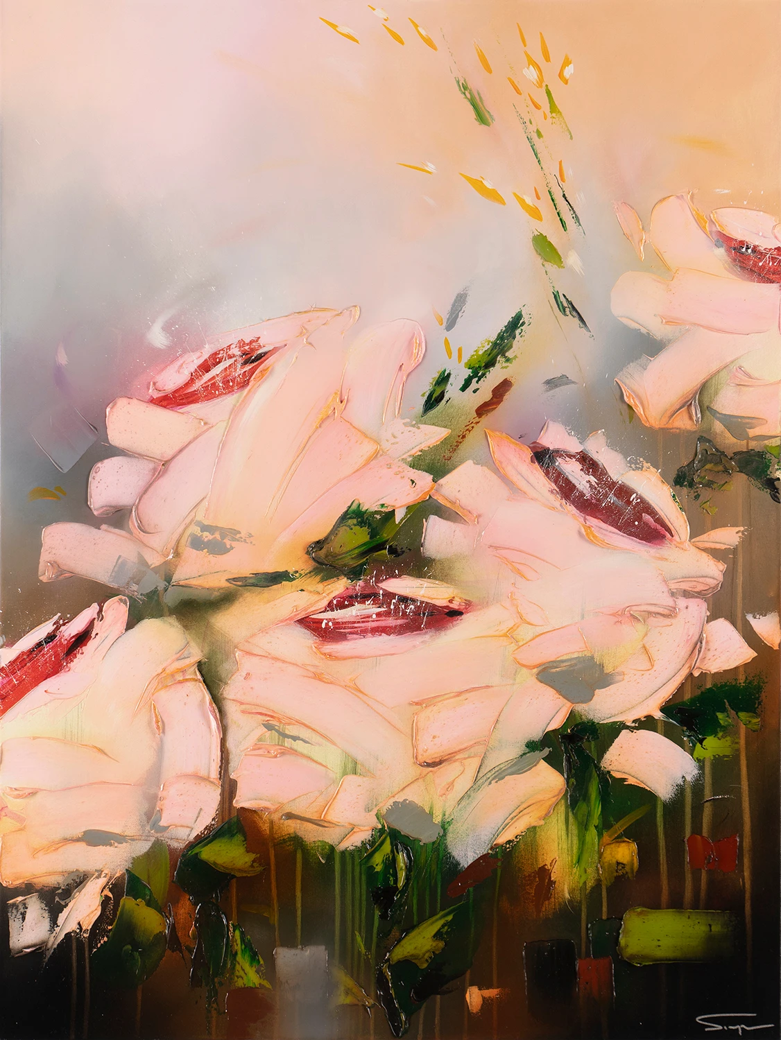 Full of bold colour, heavy texture, and abstract brush strokes, this wonderful original artwork is from Stephen Simpson’s Opus collection. Cheerful, romantic, and uplifting, this stunning artwork is also a contemporary take on one of the oldest genres of art history!
