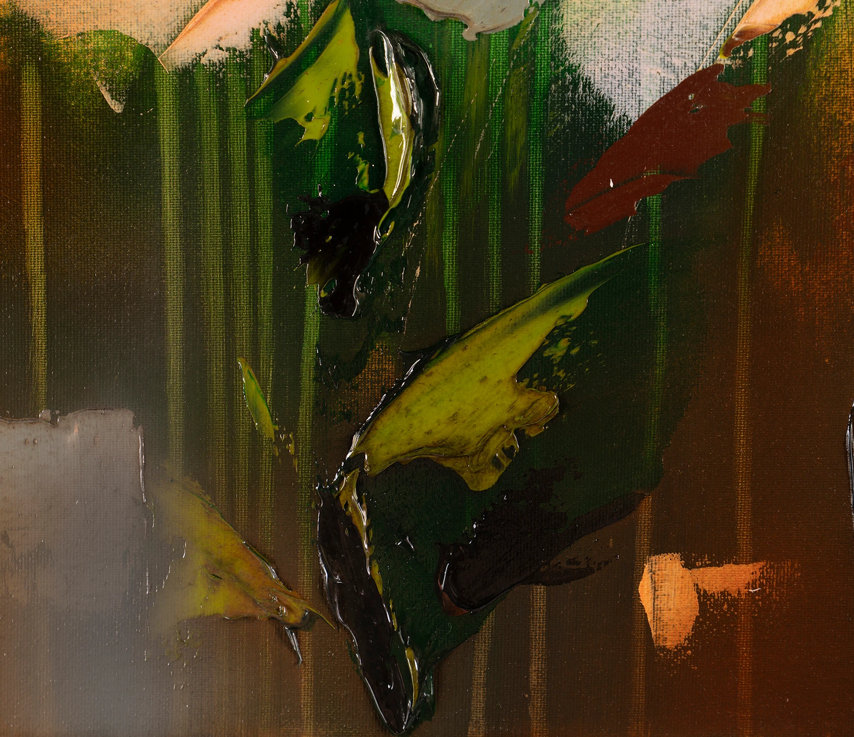 An original mixed media, acrylic gel and oil varnish on canvas by Stephen Simpson.