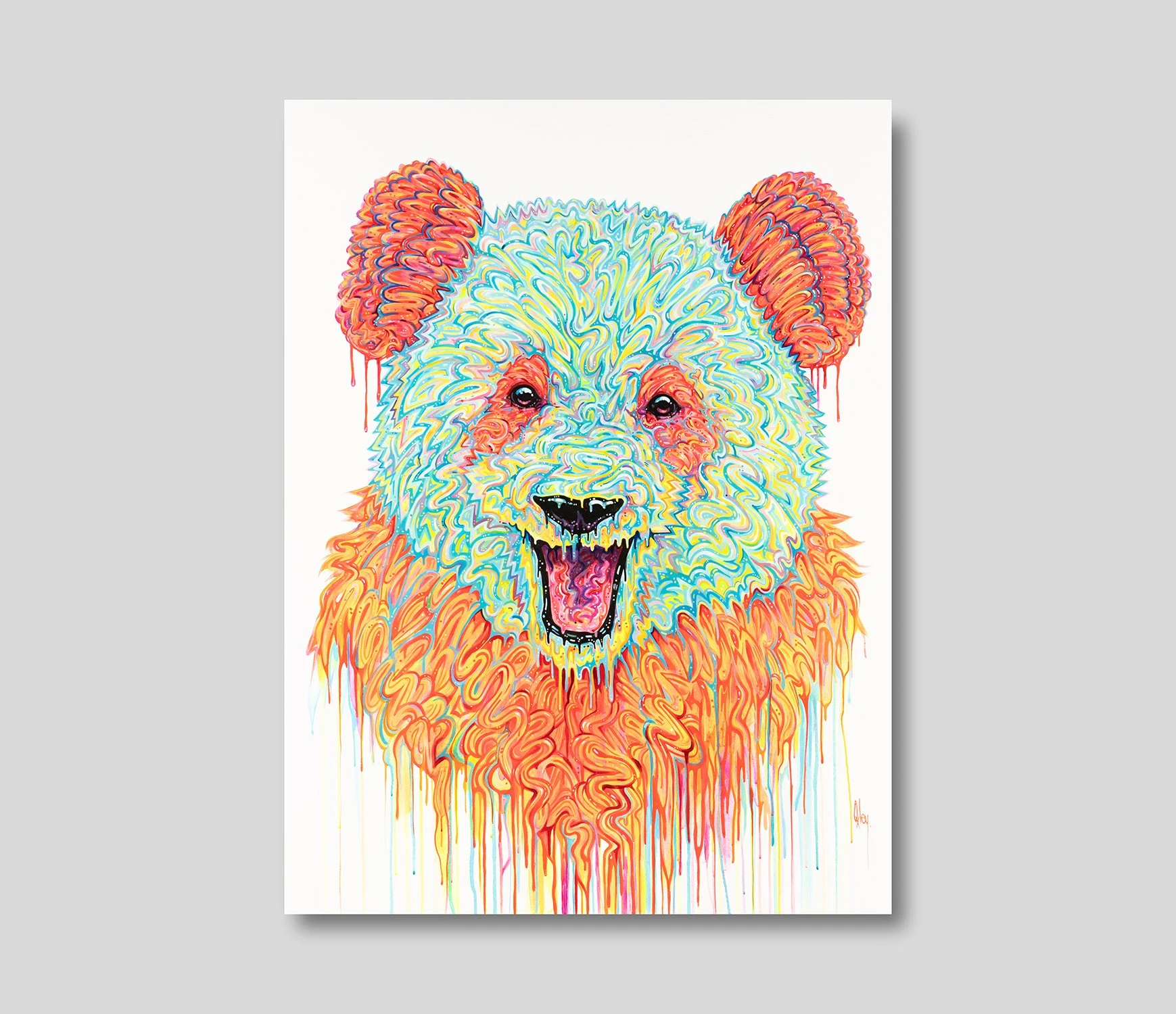 Acclaimed wildlife artist and ambassador Robert Oxley recently left the suburbs of Manchester to live amongst some of Britain’s best examples of nature in the Lake District. Truly inspired by the landscape and its inhabitants, Robert also became aware of the similarities between this national park and the Amazon rainforest that the artist ferociously advocates to protect. Subsequently, he has painted a series of animals, including this panda, that are examples of the conversation technique ‘rewilding’ to champion the essential work of animal conservationists around the world while also using his distinct style to create beautiful artworks that bring the stunning diversity and power of animals into our homes.