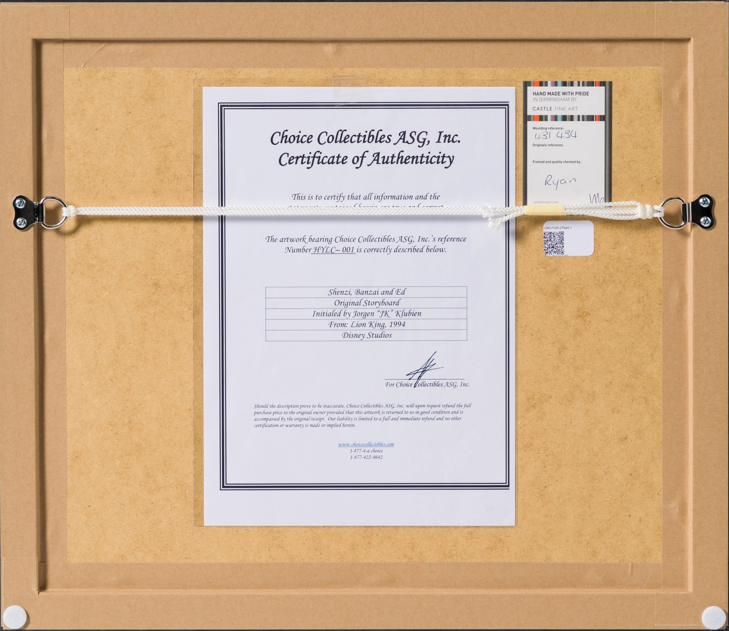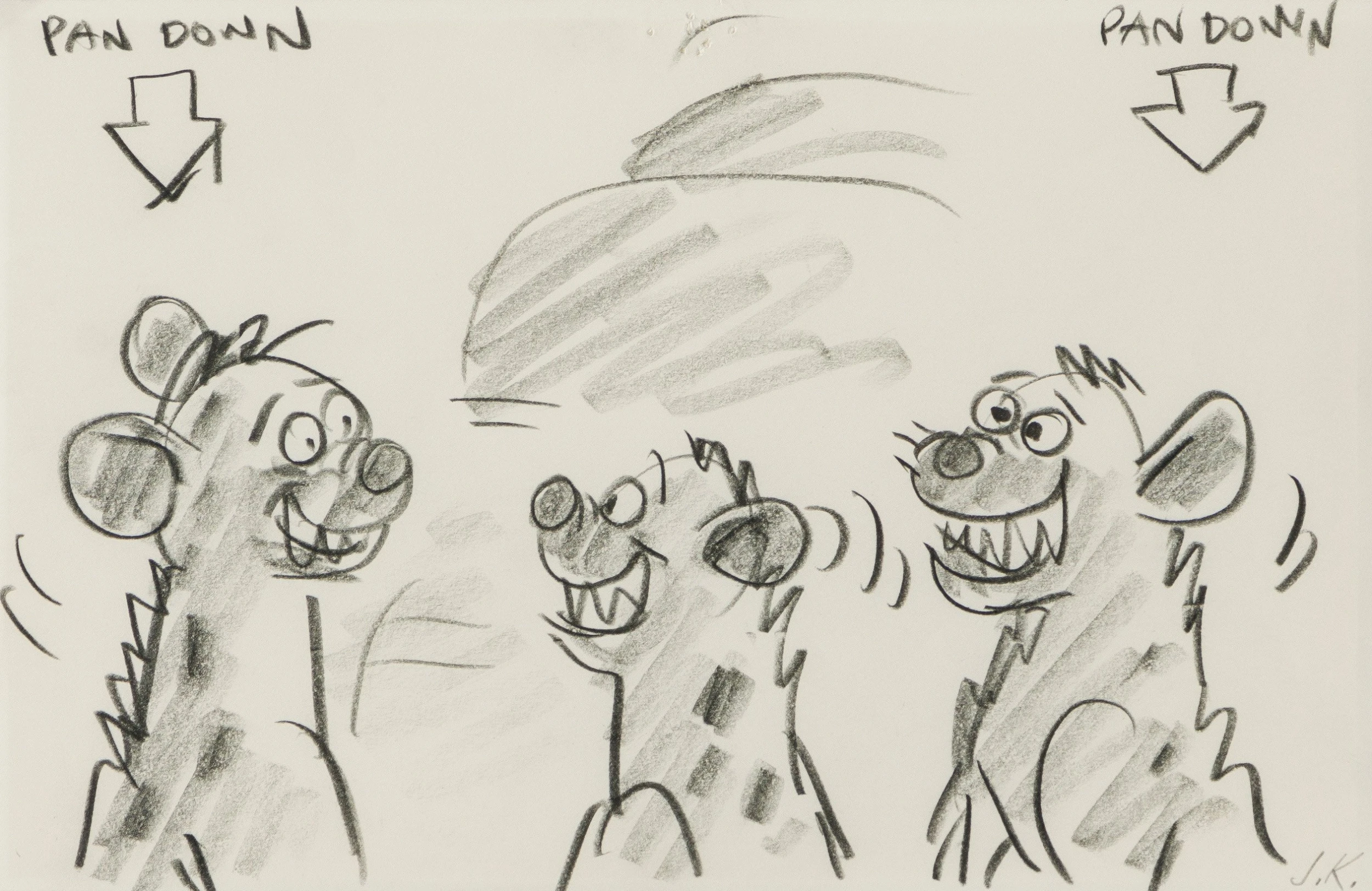 An original storyboard by artist Jorgen Klubien, from The Lion King, 1994