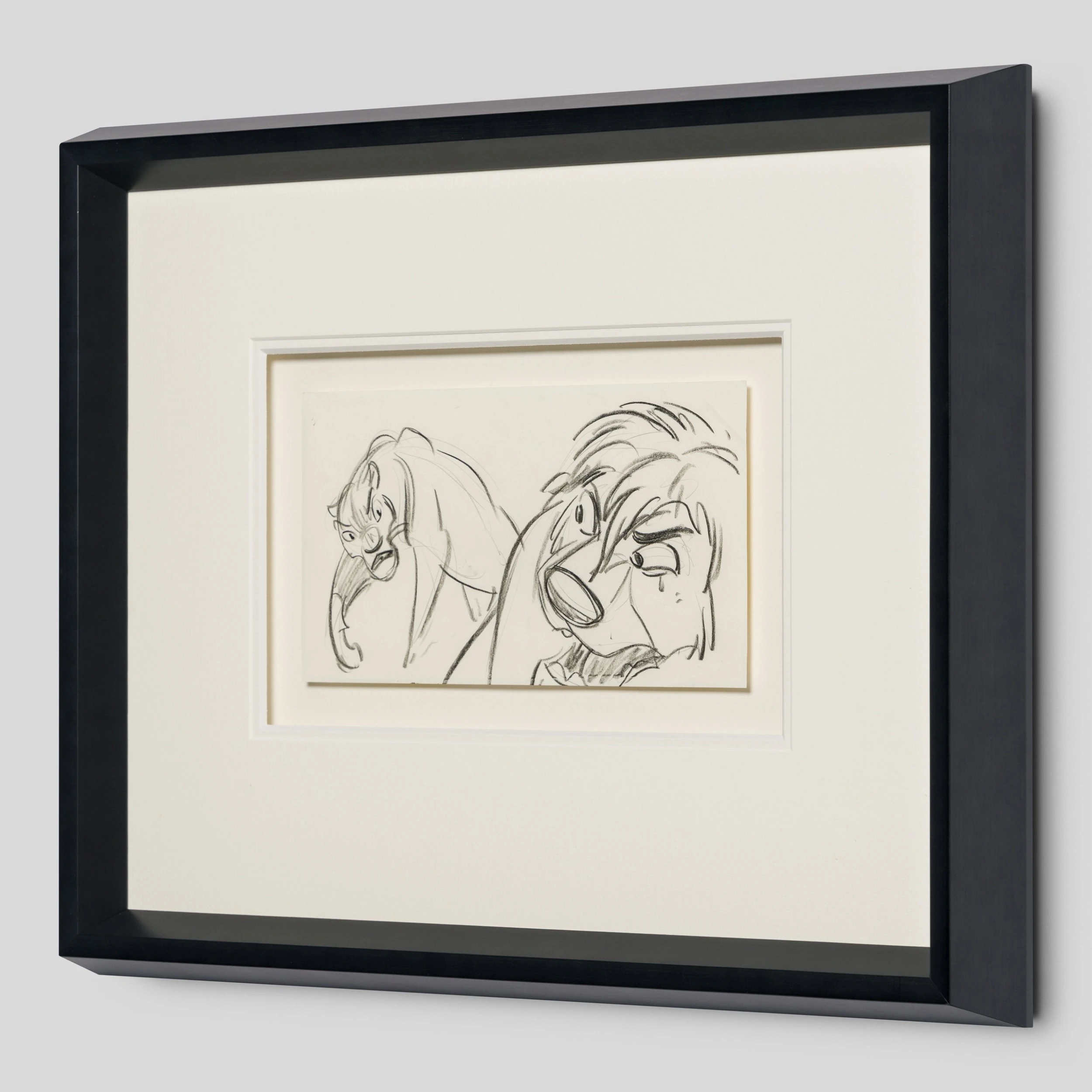Displayed on its original, beautifully aged paper, this original storyboard drawing showcases the artistic nature of the early animations and their warmly expressive forms. Now mounted and framed, this piece is the perfect way to add a sophisticated and muted touch of Disney magic to your home. Match with another drawing from our to create a perfect pair.