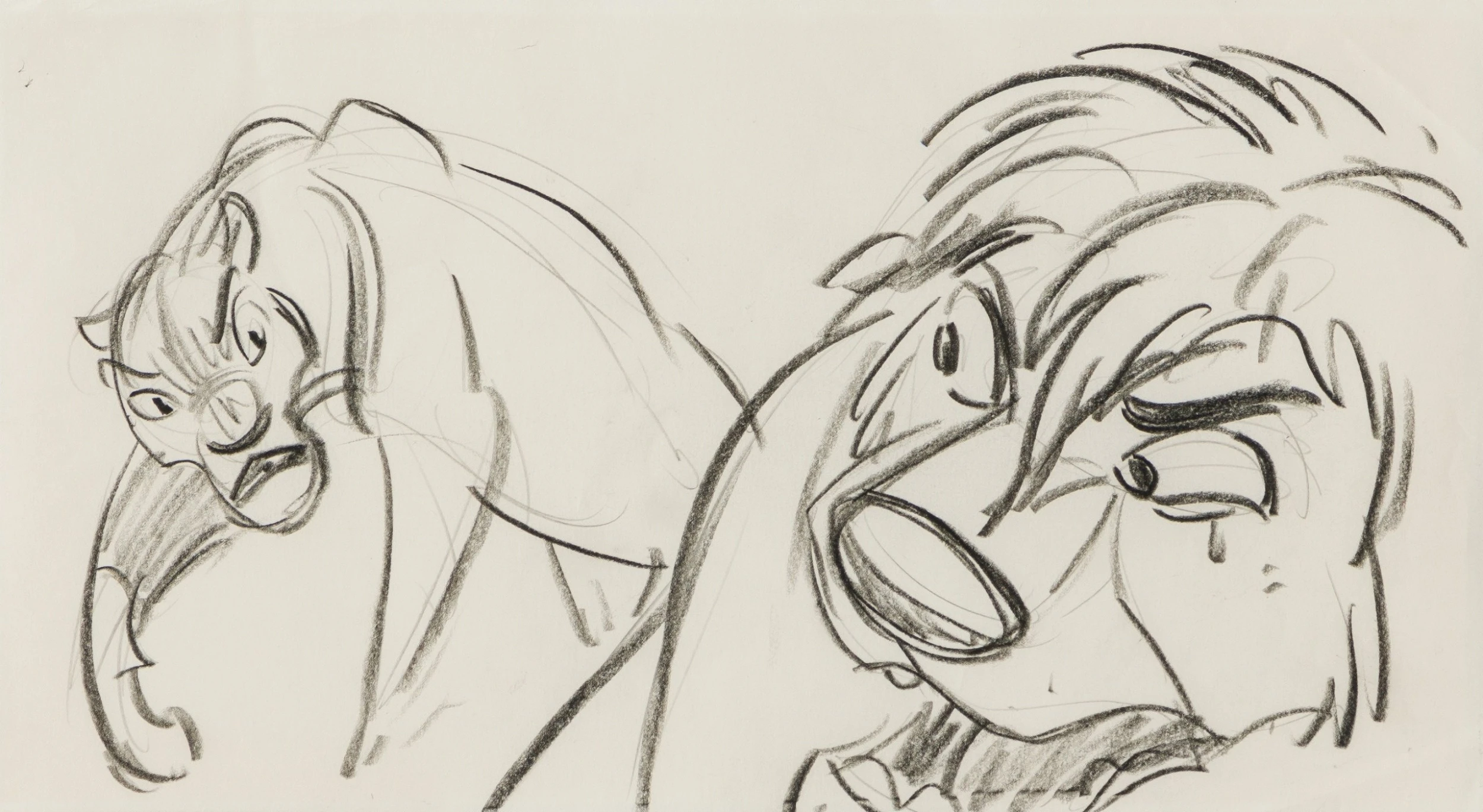 With an award-winning soundtrack featuring numbers by Elton John and Hans Zimmer, and a cast with such voice actors as James Earl Jones, Whoopi Goldberg and Rowan Atkinson, it is unsurprising that Walt Disney’s 1994 animated film ‘The Lion King’ continues to be a global favourite. It won two Academy Awards, a Golden Globe, had two sequels and one prequel, spawned a global touring Broadway production and, most recently, a photo-realistic adaptation in 2019 featuring the voices of Beyoncé and Donald Glover. The original film from 1994 is still the high-grossing traditionally animated film of all time and this drawing is taken from an original storyboard created and used by the animators during the film’s early production.