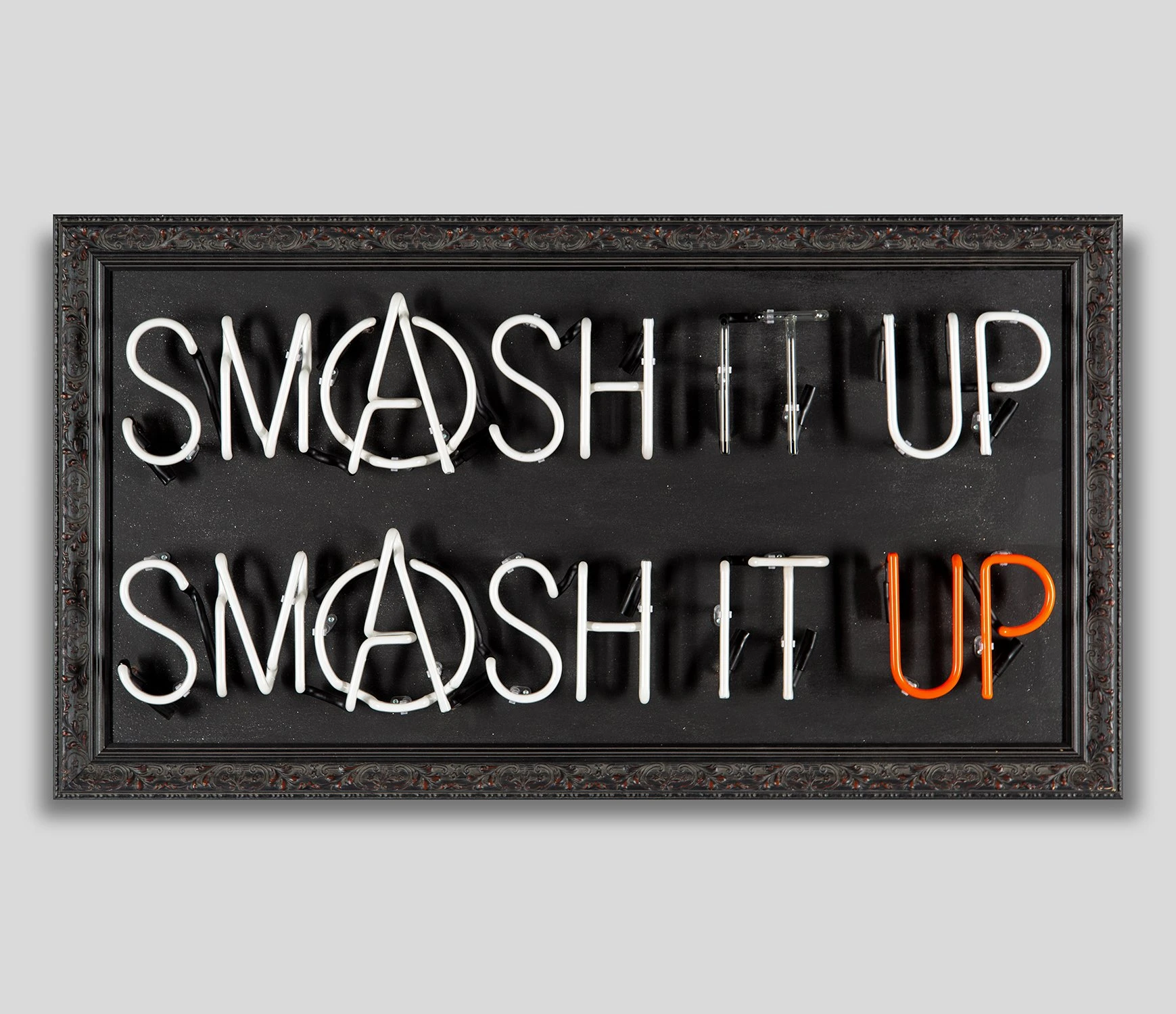 Channelling the punk sentiment to destroy and cause chaos, this electrifying original artwork by Mark Sloper represents all that ‘Illuminati Neon’ is. Bold, bright and bonkers, the punk artist combines his many years working in the film and music industry with his expertise in the field of neon gas.