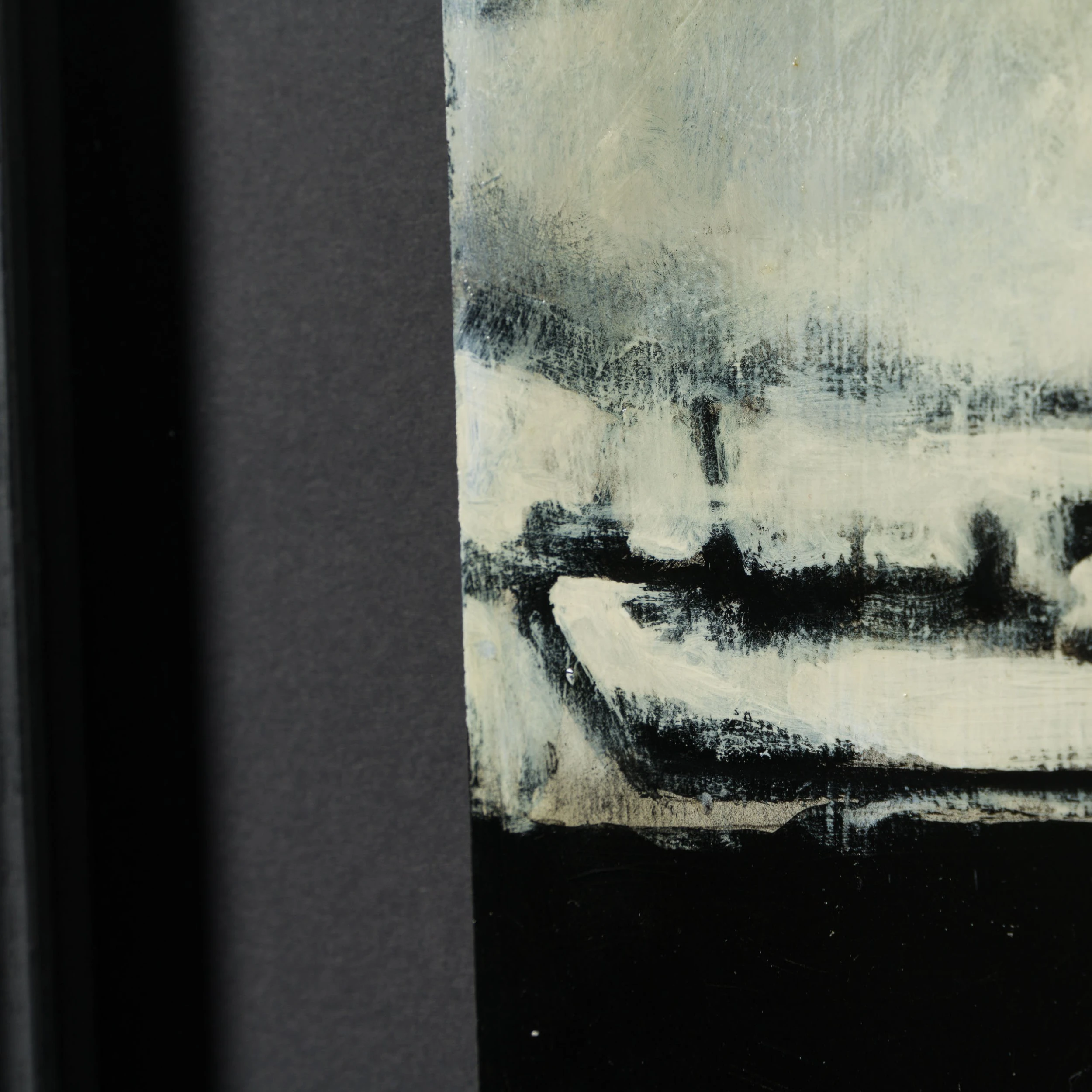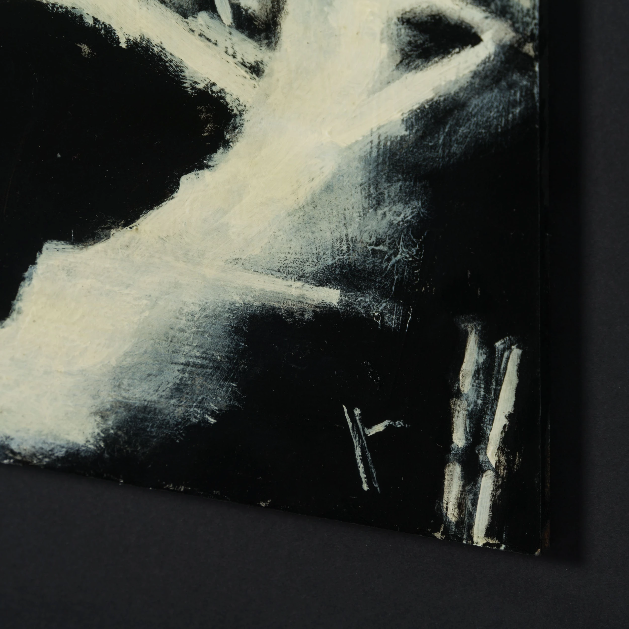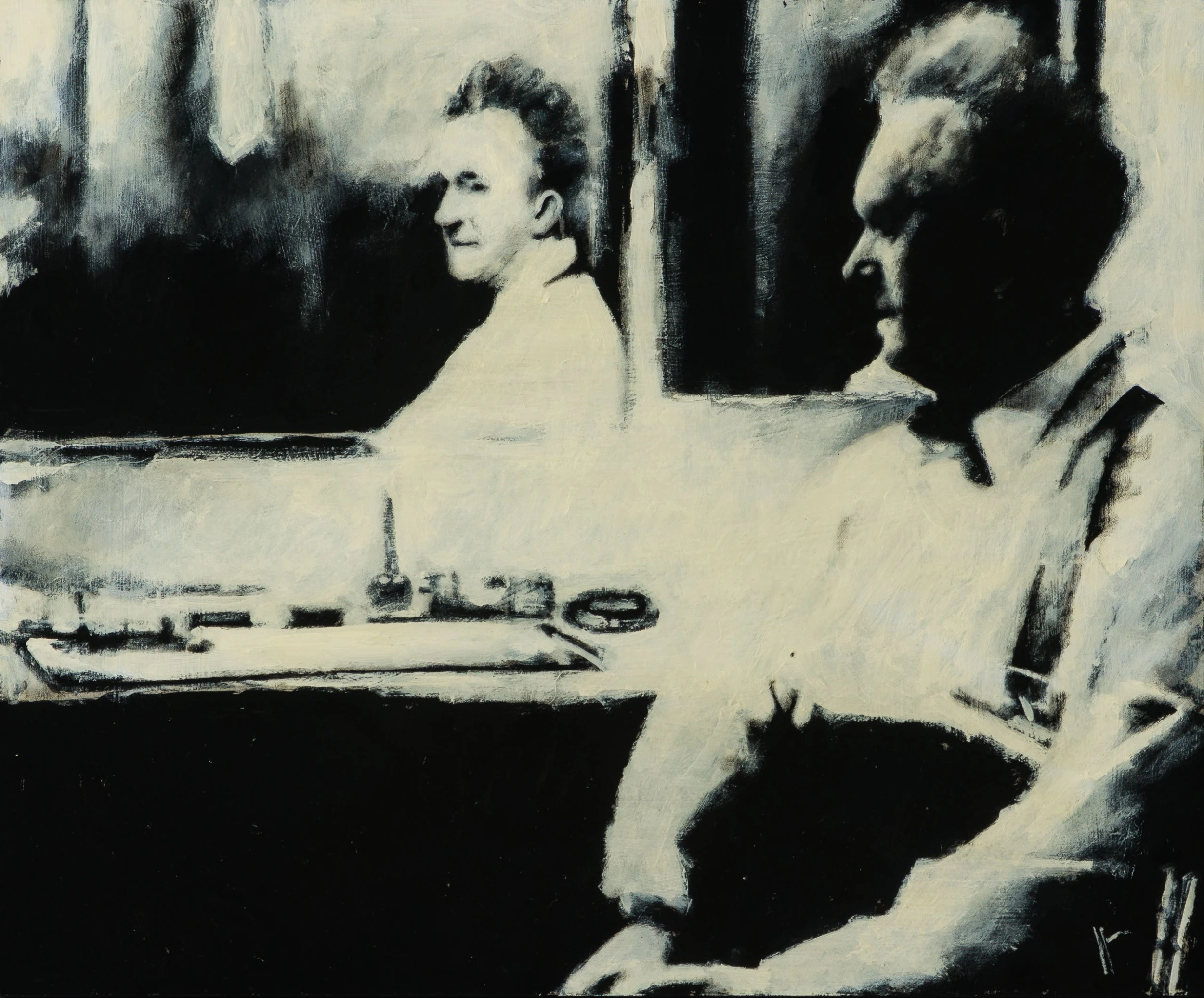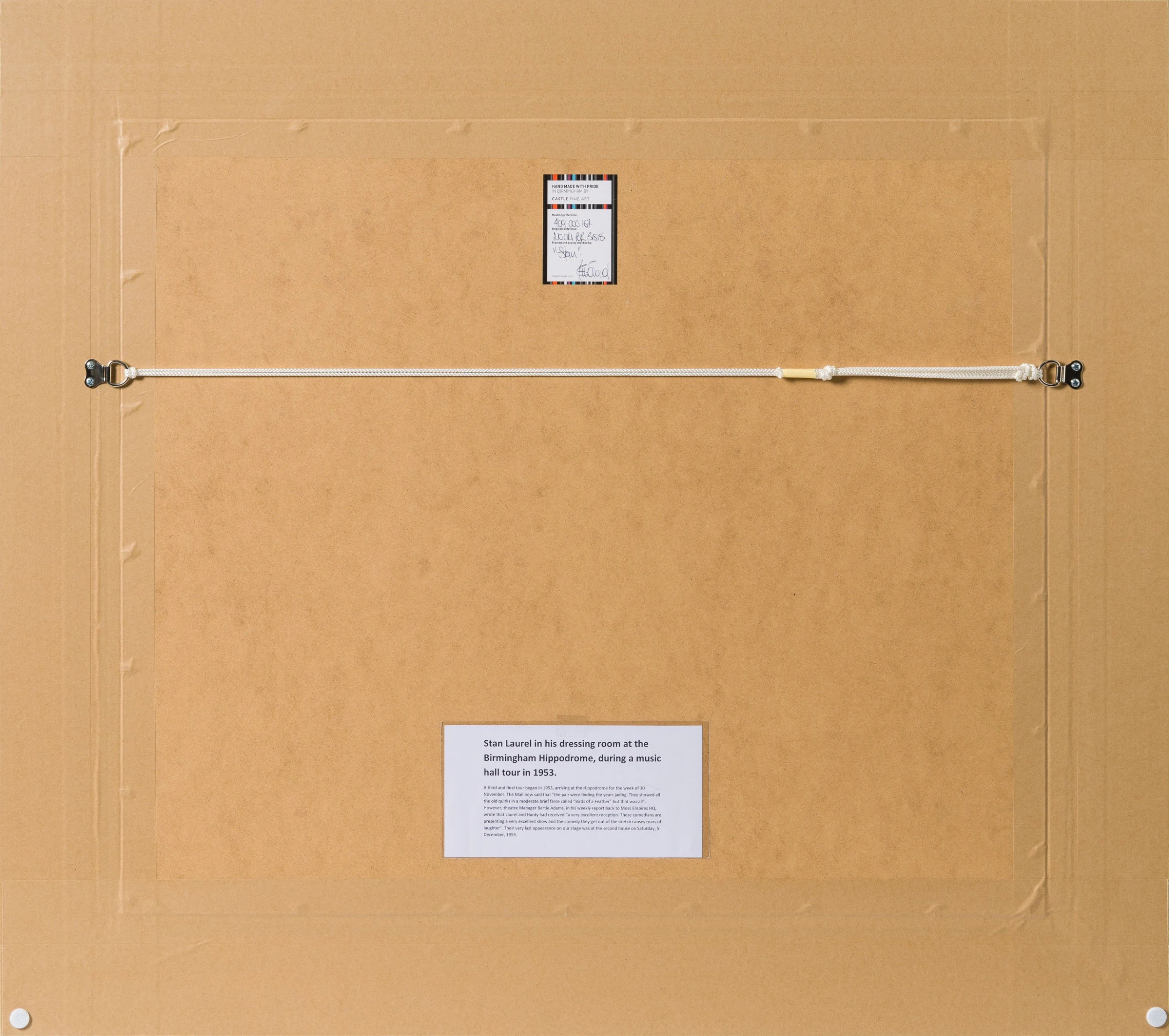All the individual portraits are from people who have interested or inspired the artist in this case Stan Laurel in his dressing room at the Birmingham Hippodrome during a music hall tour in 1953. Using conflicting tones of cream white, black and grey to create a highly atmospheric figurative artwork with an essence of realism capturing a monochrome scene. The deep swathes of black paint are skilfully blended and contrasted with white accents to create detailed and moving masterpieces.