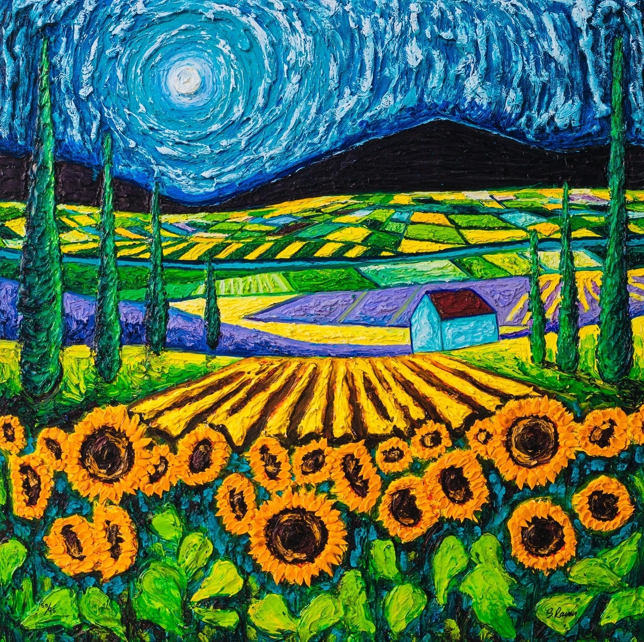 In a landmark new collection for Castle Fine Art, launches her new Lasting Impressions series. Full of love for our natural surroundings, and inspired by her admiration of Vincent Van Gogh and David Hockney, Scarlett’s new pieces are her most passionate yet. The two artworks ‘Sunset on Poppy Field’ and ‘Sunflowers Amongst Cypress Trees’ are available as a giclée on paper as well as boxed canvas.