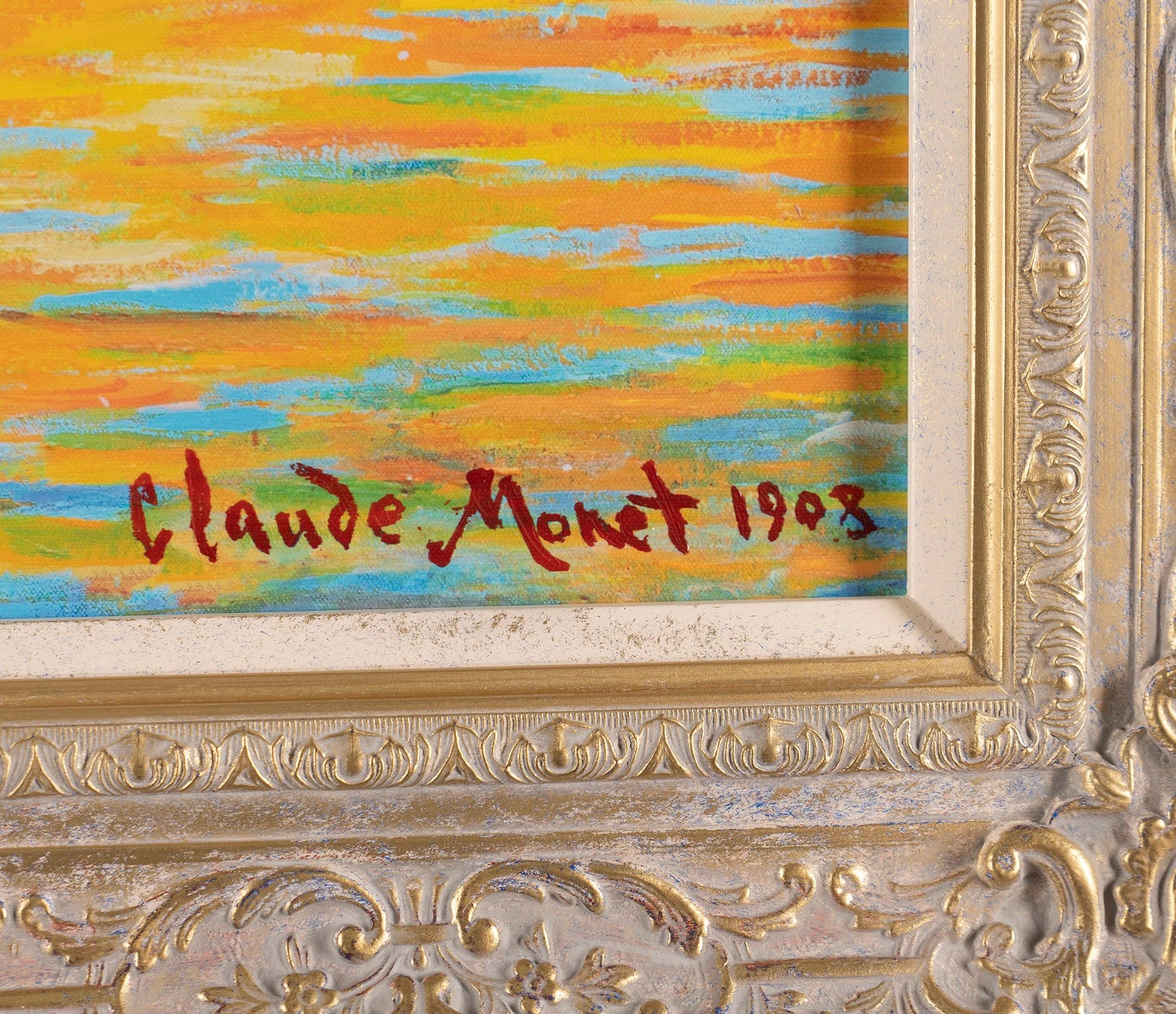 A signed limited edition, hand-embellished stretched canvas by John Myatt in the style of Claude Monet.