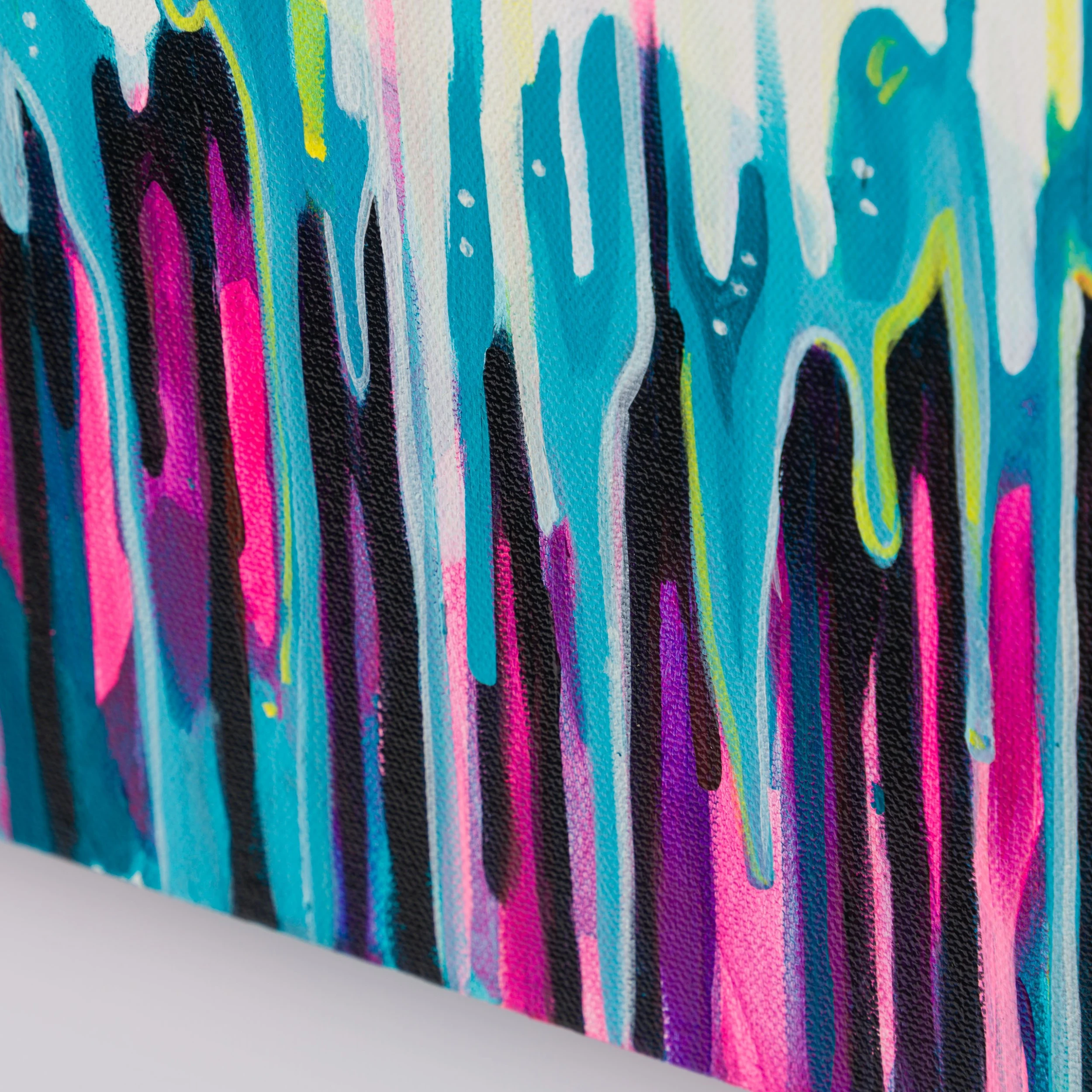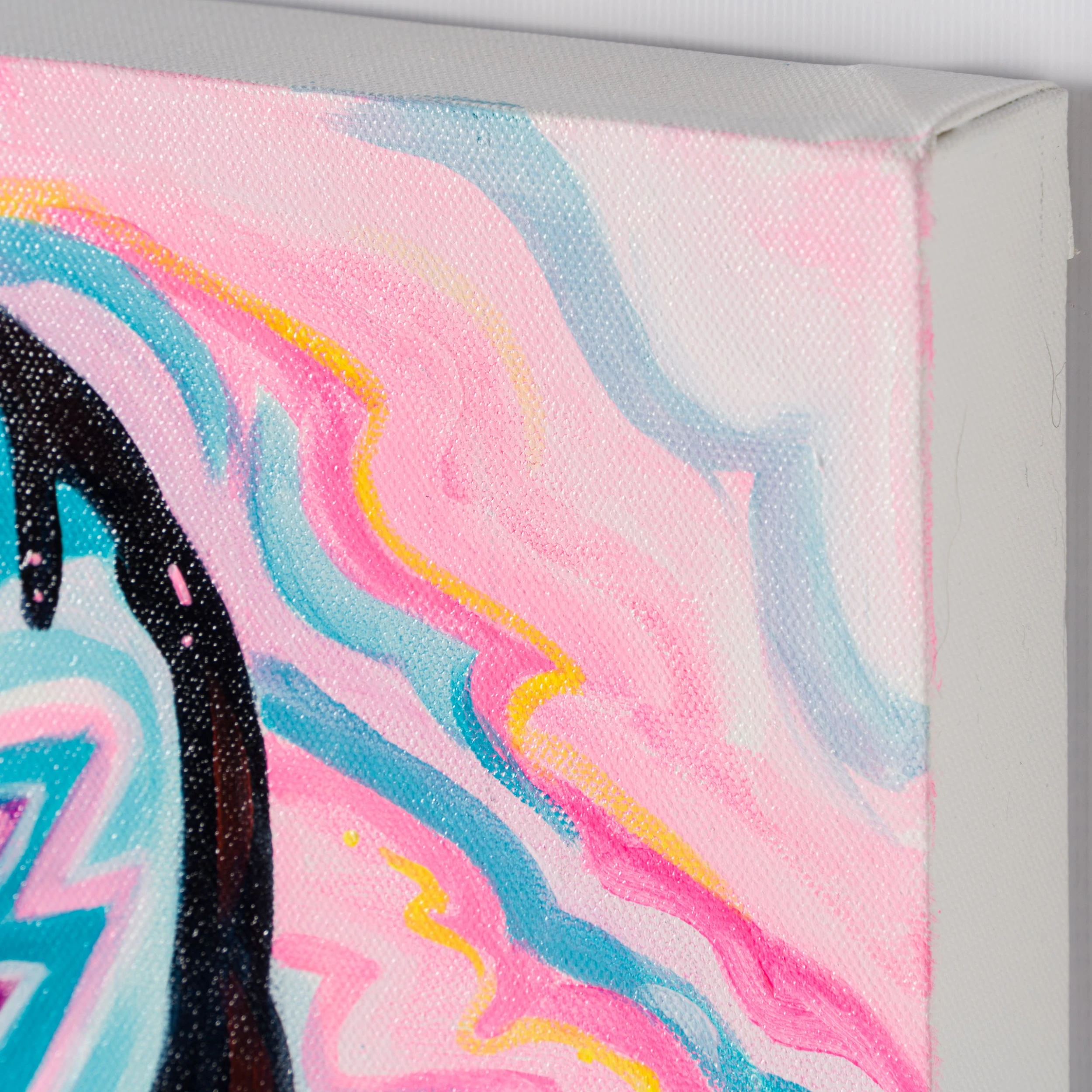 Many of Oxley’s pieces skilfully blend elements of surrealism and expressionism, infusing each piece with energy and emotion. His expressive brushwork is energetic and fluid, giving his paintings a sense of movement and spontaneity as his captivating portraits feature wild animals created through intense patterns and psychedelic colour. The traditional colours of the animal are overthrown by exciting vibrant shades, transforming it into an “ethereal, astral” being through his kaleidoscopic use of colour and form. The strong rainbow shades contrast beautifully with the white background.