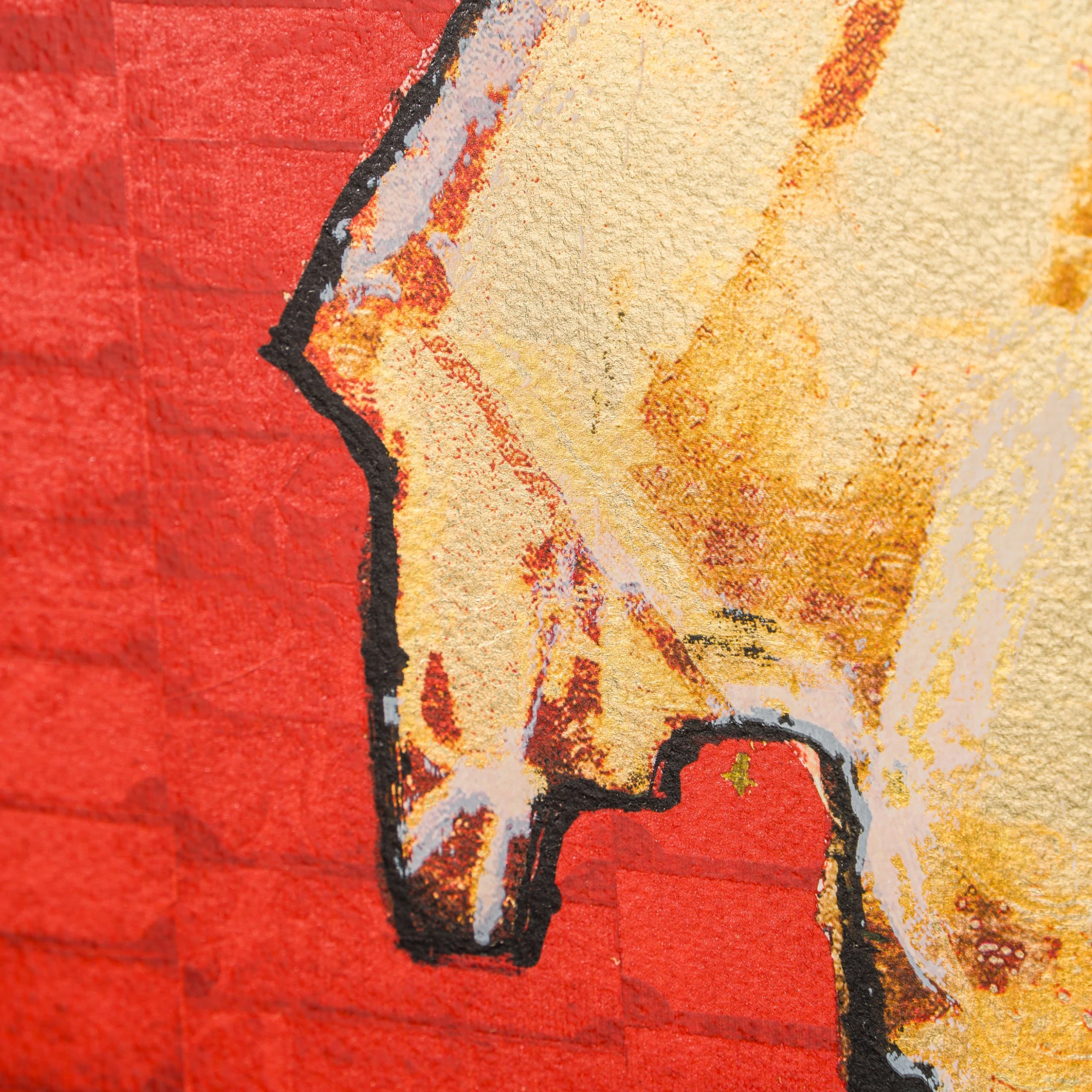‘Origins’ is the foundational artwork in The Bunnyman Genesis, depicting the first portrayal of the character created by Johnny. A strongly symbolic colour connoting courage, protection and luck, the red within this artwork reflects key traits of The Bunnyman – he is bold, powerful, a guardian warding off evil spirits.