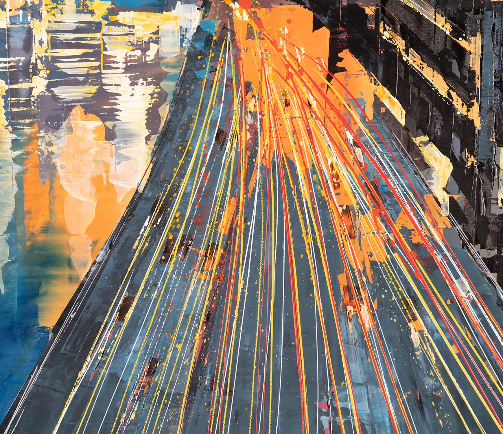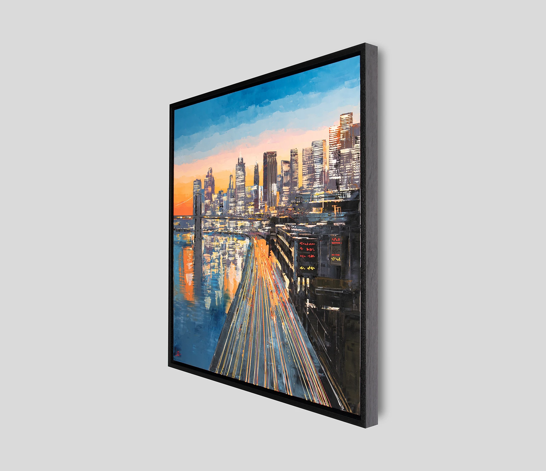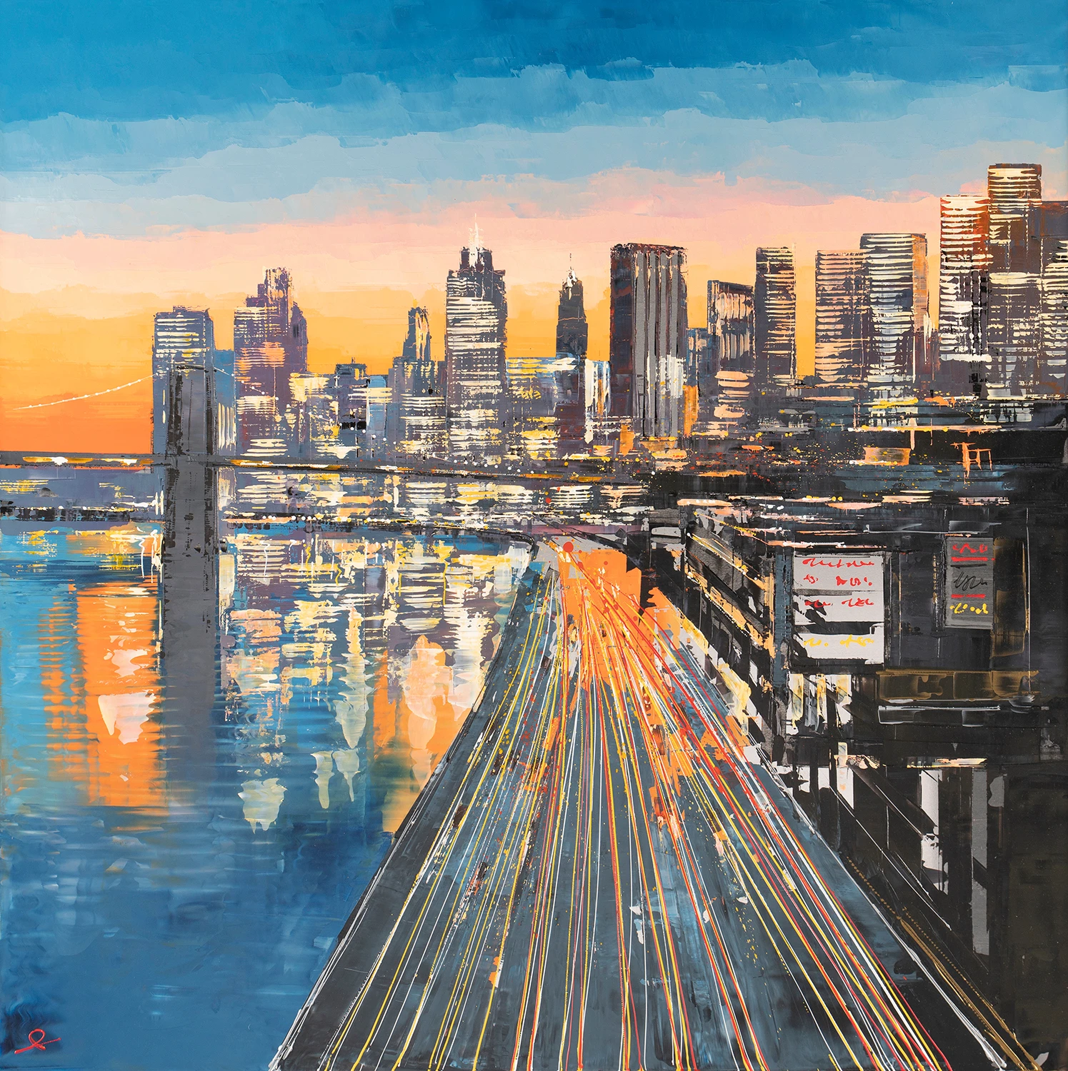 Light has always been a key medium for Paul Kenton in his breath-taking landscapes; from lily ponds and mountain peaks, to bustling Parisian scenes and American avenues. This artwork forms part of Searching Light, a collection that celebrates the artist’s extraordinary use of metal and light that bring two-dimensional artworks life. The metallic canvas of the artist’s work has a transformative effect; in different lights, the paintings take on a new life – glowing one minute and shimmering the next.
