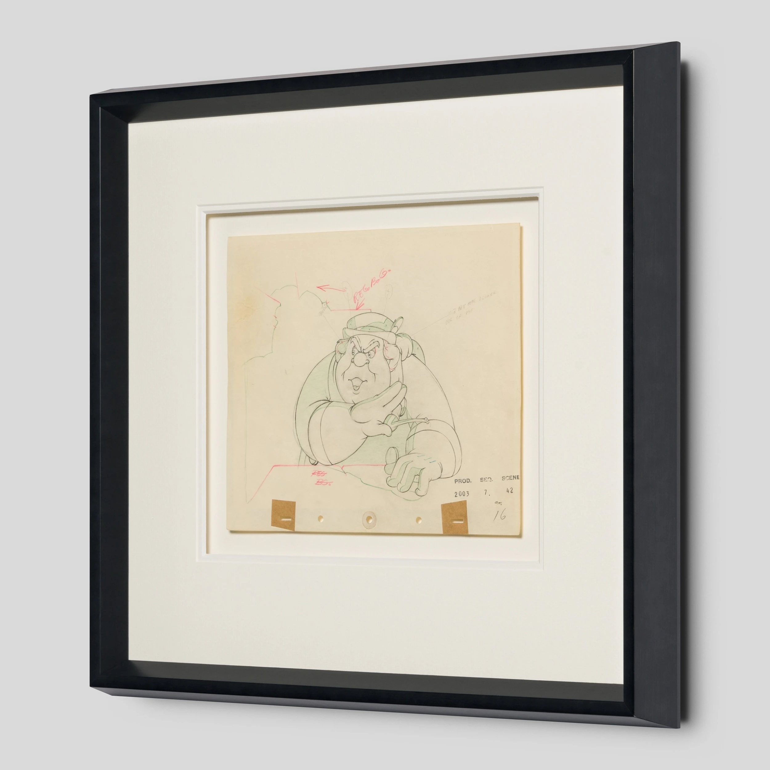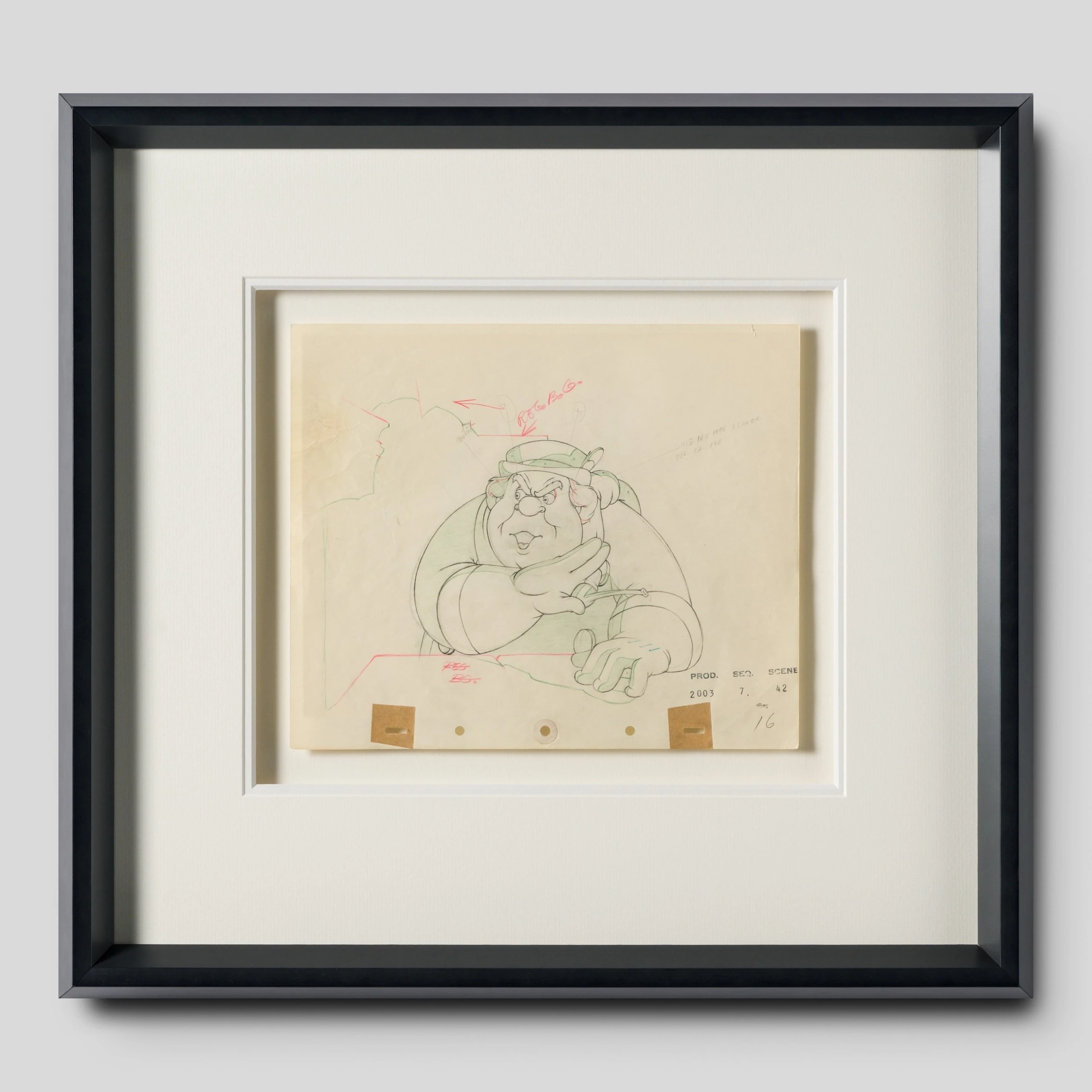 Displayed on its original, beautifully aged paper, this drawing showcases the artistic nature of the early animations and their warmly expressive forms. Now mounted and framed, this piece is the perfect way to add a sophisticated and muted touch of Disney magic to your home. Match with another drawing from our to create a perfect pair.
