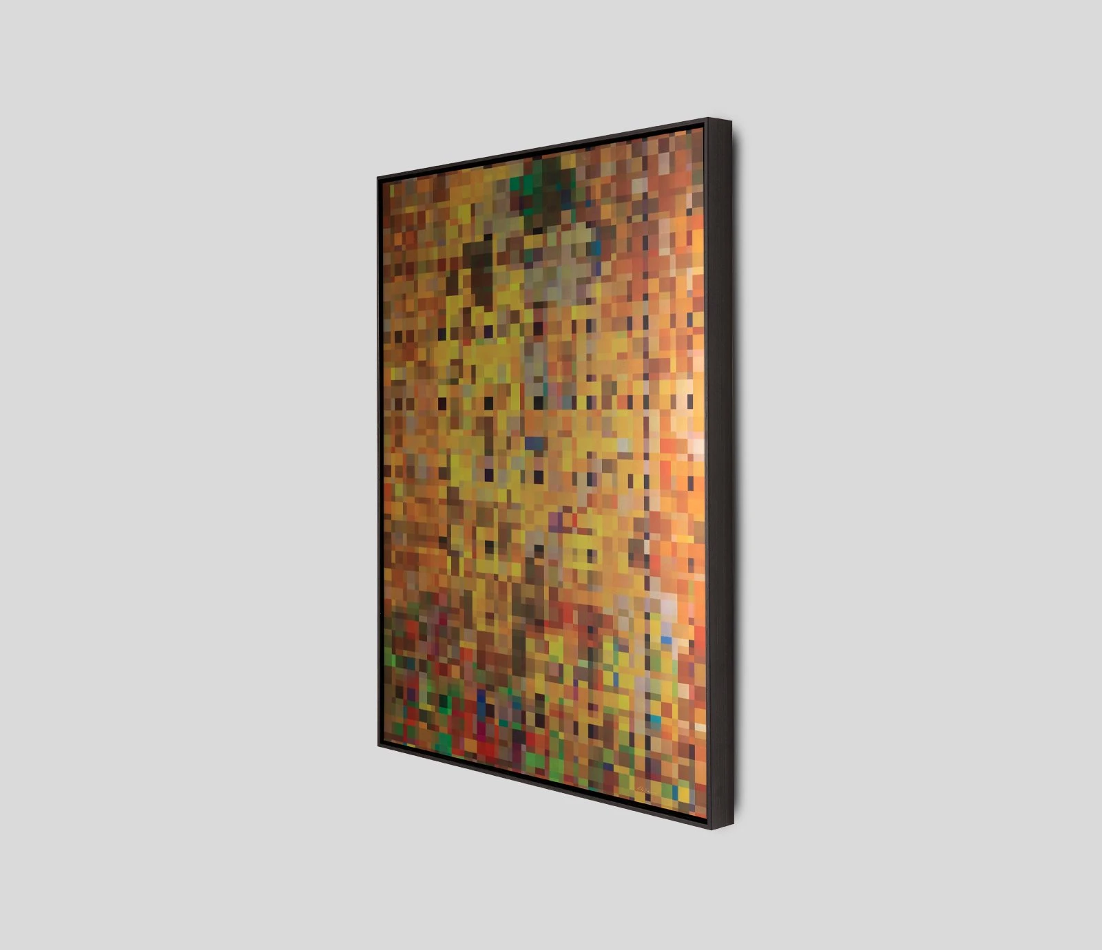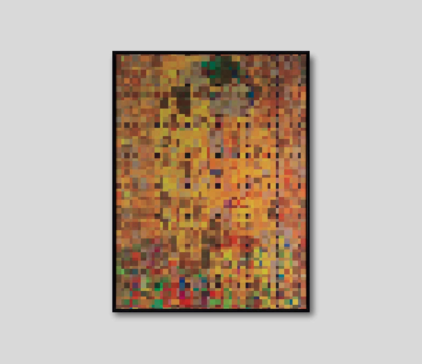 Do not be deceived, your screen is not malfunctioning! Here, Alex Echo has combined his abstract and colourful artistic approach with digital media to create this contemporary and abstract rendition of the famous painting ‘The Kiss’ by Gustav Klimt. Using vibrantly coloured pixels, the well-known image has been meticulously distorted but remains recognisable; creating a potent commentary on the role of images in the digital age.