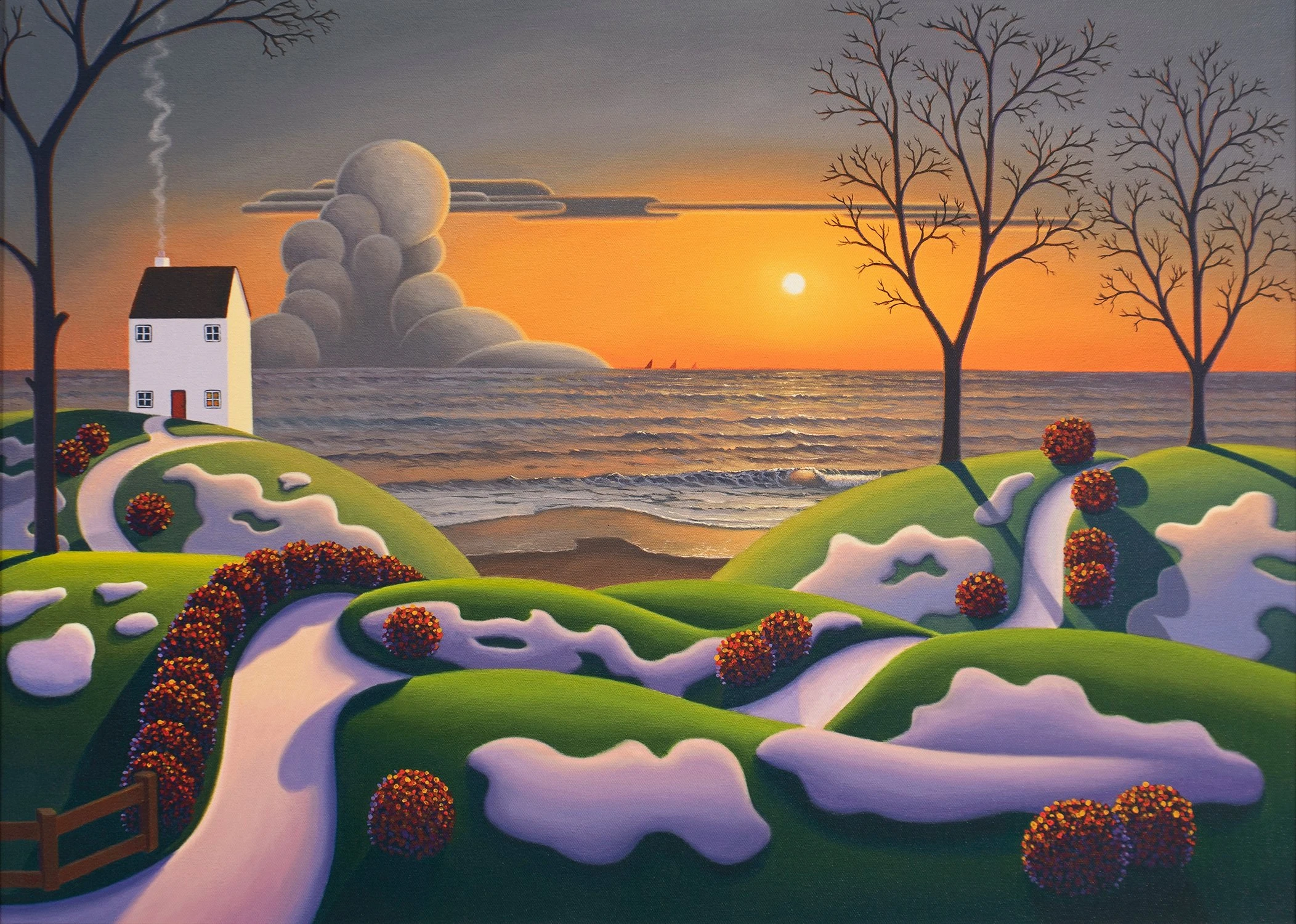 The soft melting snow in this gossamer artwork is an incredibly rare feature in Paul Corfield’s landscapes. Only previously explored in two miniature studies in 2009 and 2021, you can now display this simultaneously warming and chilling artwork in your home with this signed limited edition artwork from his 2022 installation of .