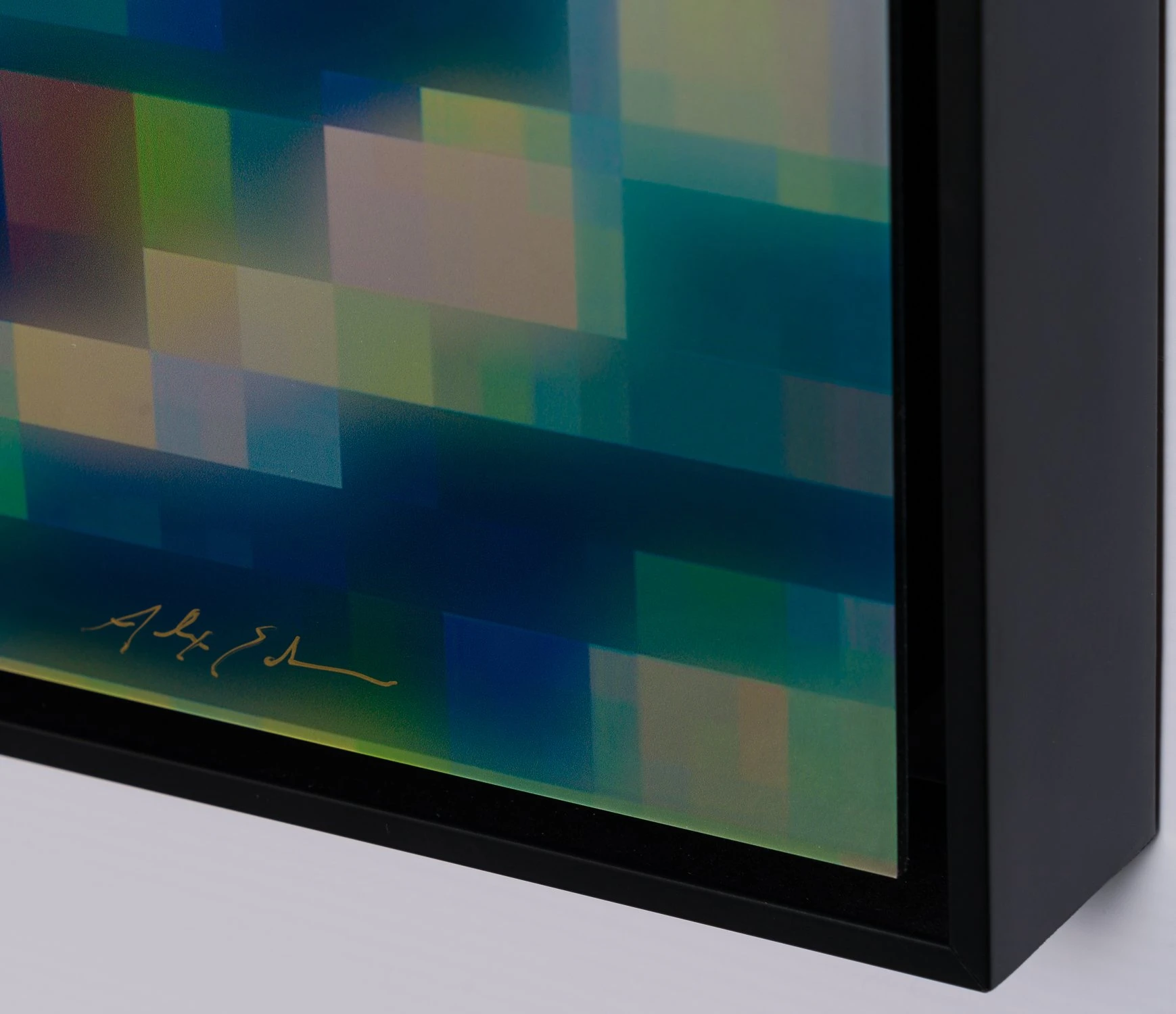 This contemporary artwork is inspired by ‘The Great Wave off Kanagawa’ (also known as ‘The Great Wave’ and ‘The Wave’) by the Japanese artist Hokusai. Originally published some time between 1829 and 1833, this woodblock print has been given a modern twist using a complex algorithm.Â