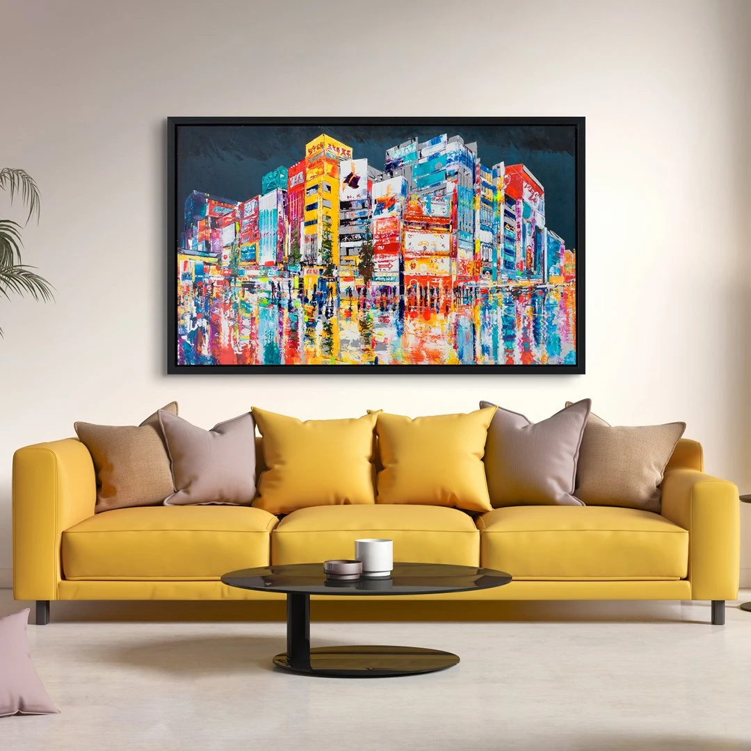 In the world’s busiest pedestrian crossing, Kenton was inspired to create this vibrant and electric cityscape. Depicting the brilliant neon-lit Shibuya Crossing in Tokyo, Japan, this signed limited-edition captures the hectic movement of people, illuminated by the colourful, glittering billboards towering above.