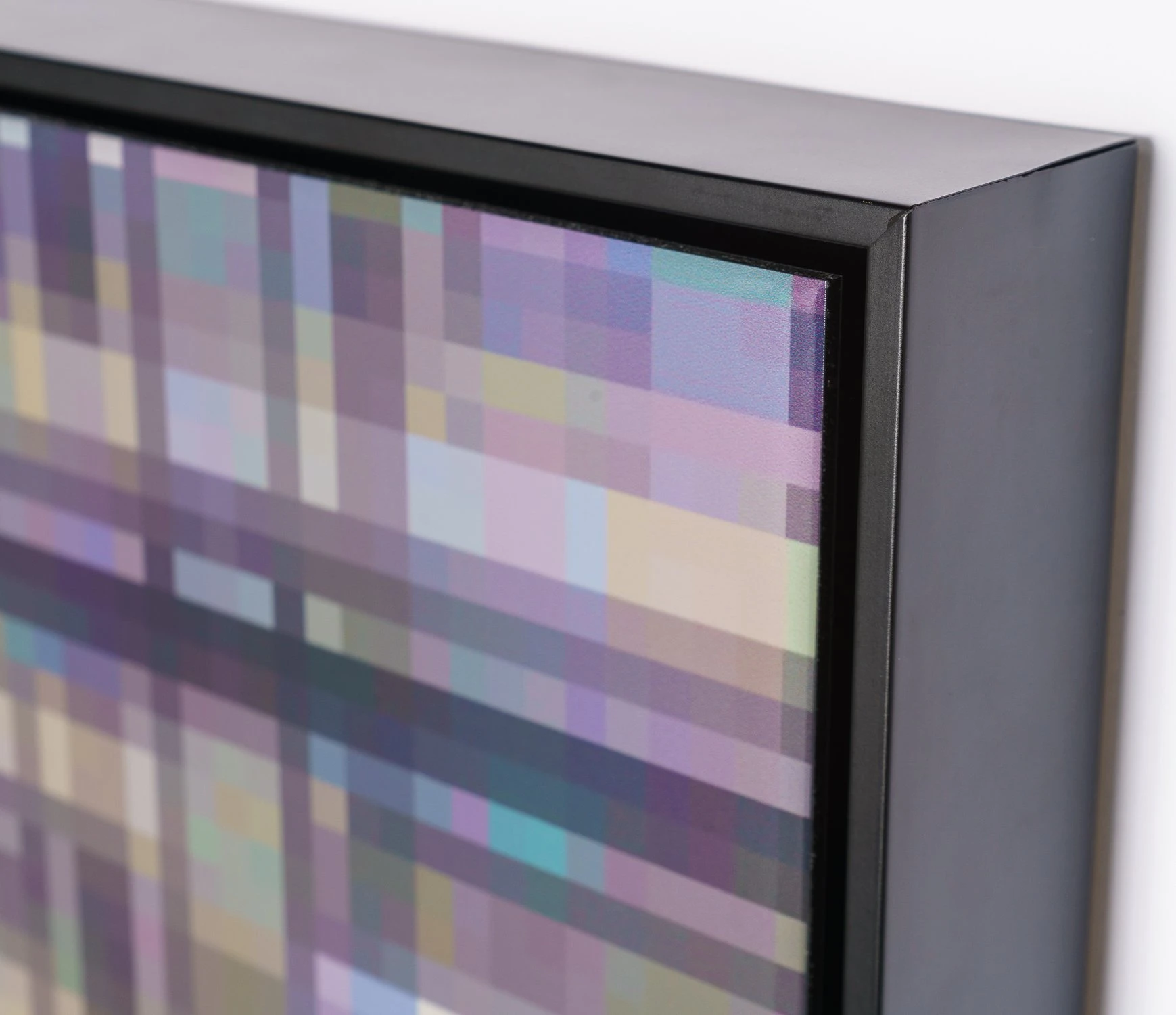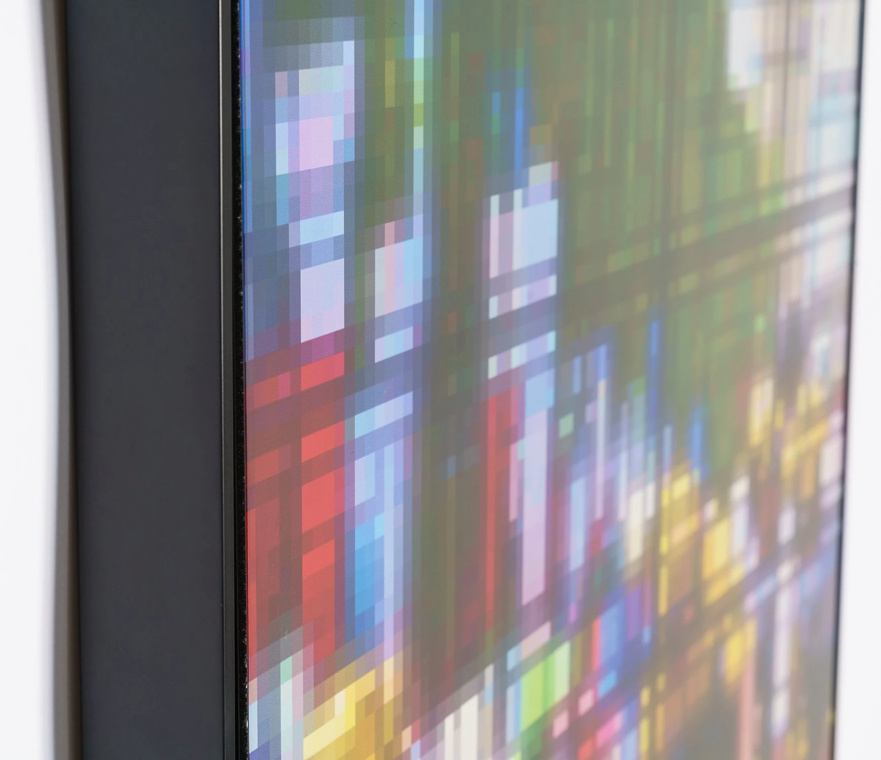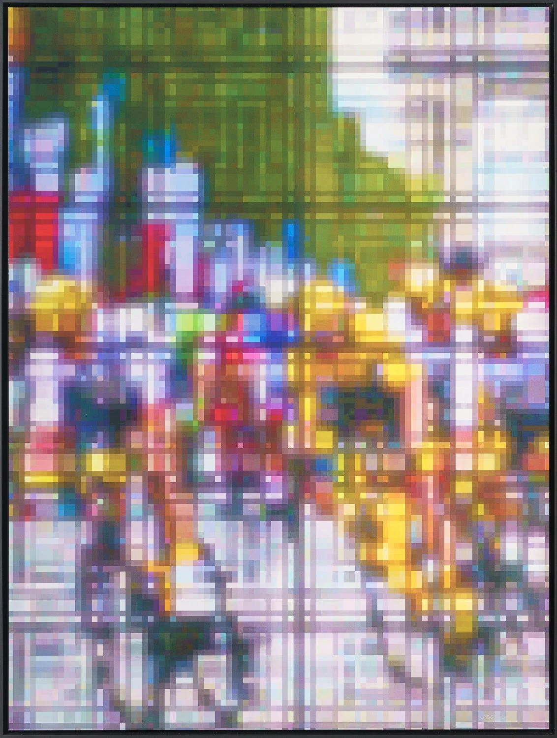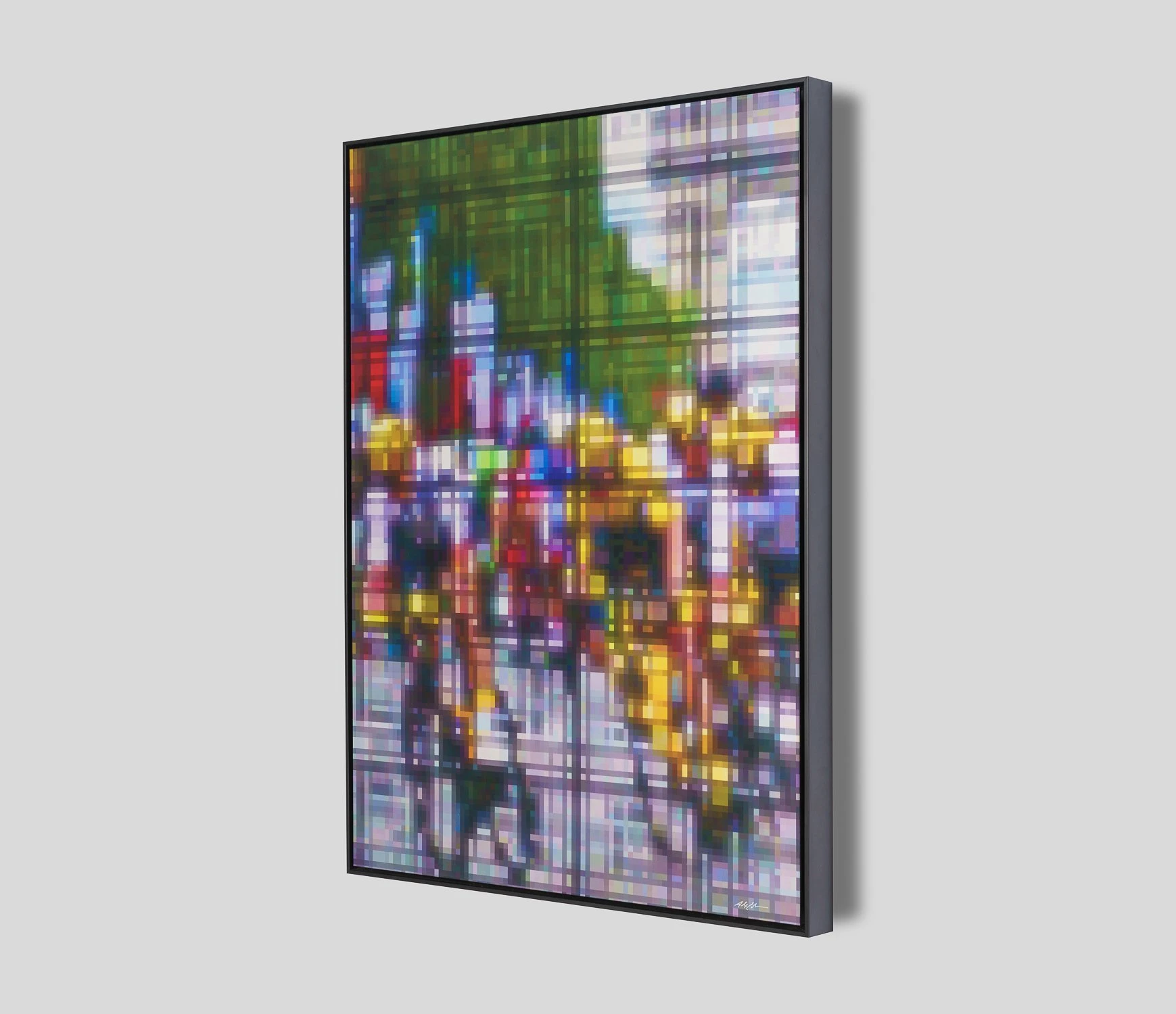 Here, Alex Echo has combined his abstract and colourful artistic approach with digital media to create this contemporary and abstract artwork. Using vibrant squares as pixels, the well-known image has been distorted but remains recognisable; commenting on the role of images in the digital age.