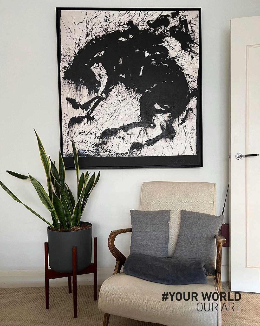 This high quality silkscreen comes framed in satin black pine and spruce which beautifully contrasts the rawness of Hambleton’s brush strokes and emotive swathes of paint. Exclusive to Castle Fine Art, the limited edition artwork has been created from the original in the Hambleton archive to continue his legacy and each silkscreen bears the printed impression of Richard Hambleton’s signature on the reverse.