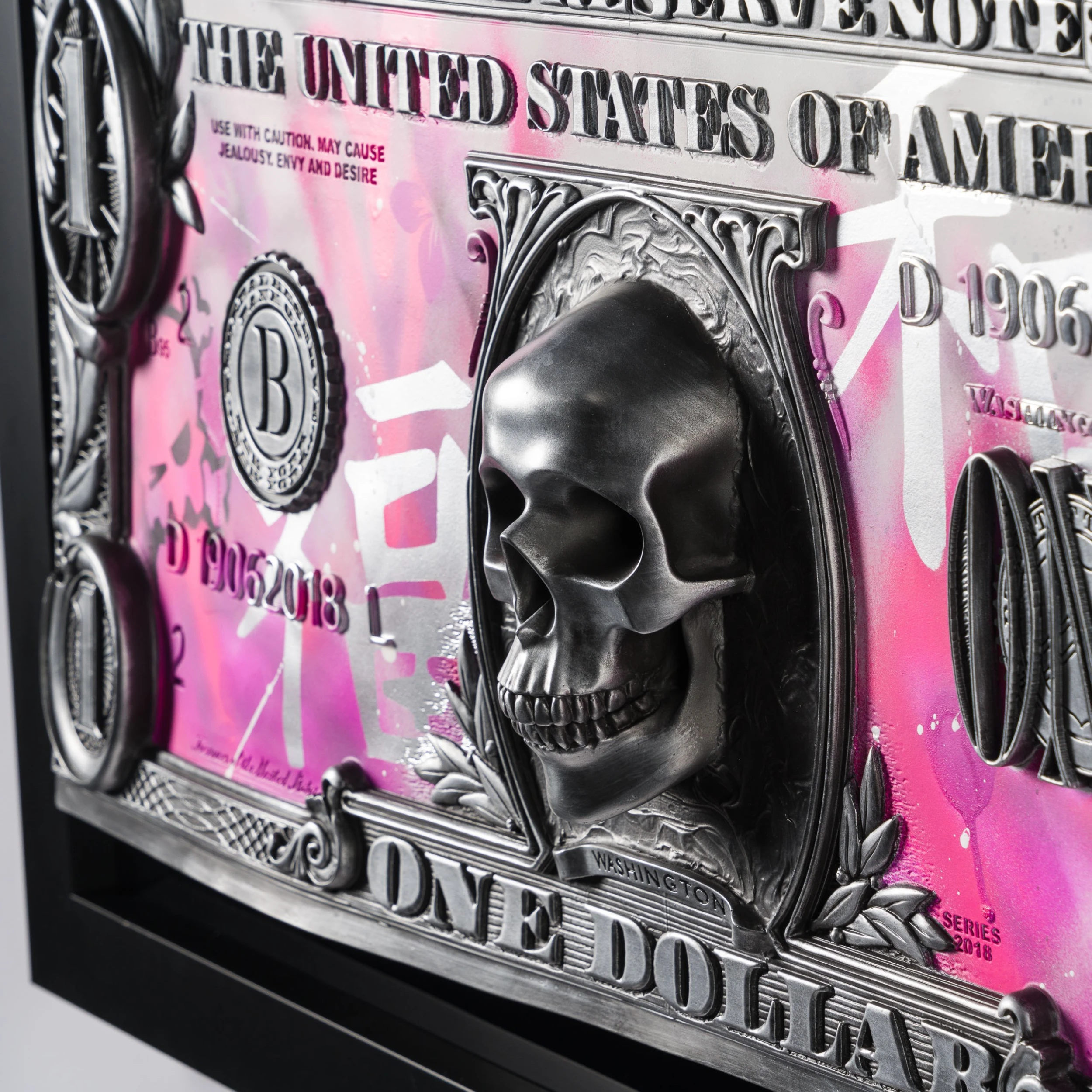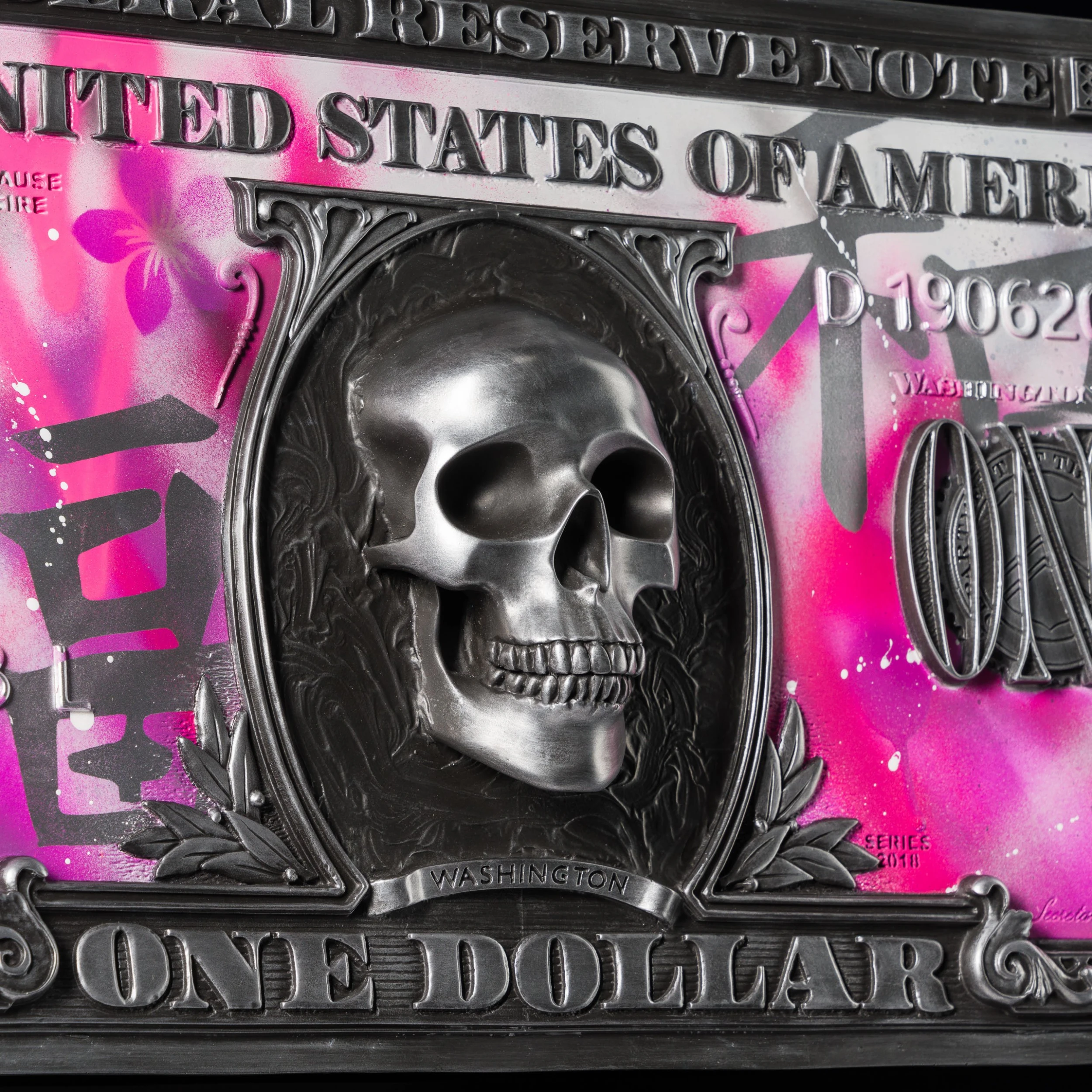 This original wall sculpture sees the two art forms of graffiti and sculpture come together to form a 3D masterpiece where painted words appear to drip off the sculptural form. View Dan Lane’s full portfolio of original wall sculptures .