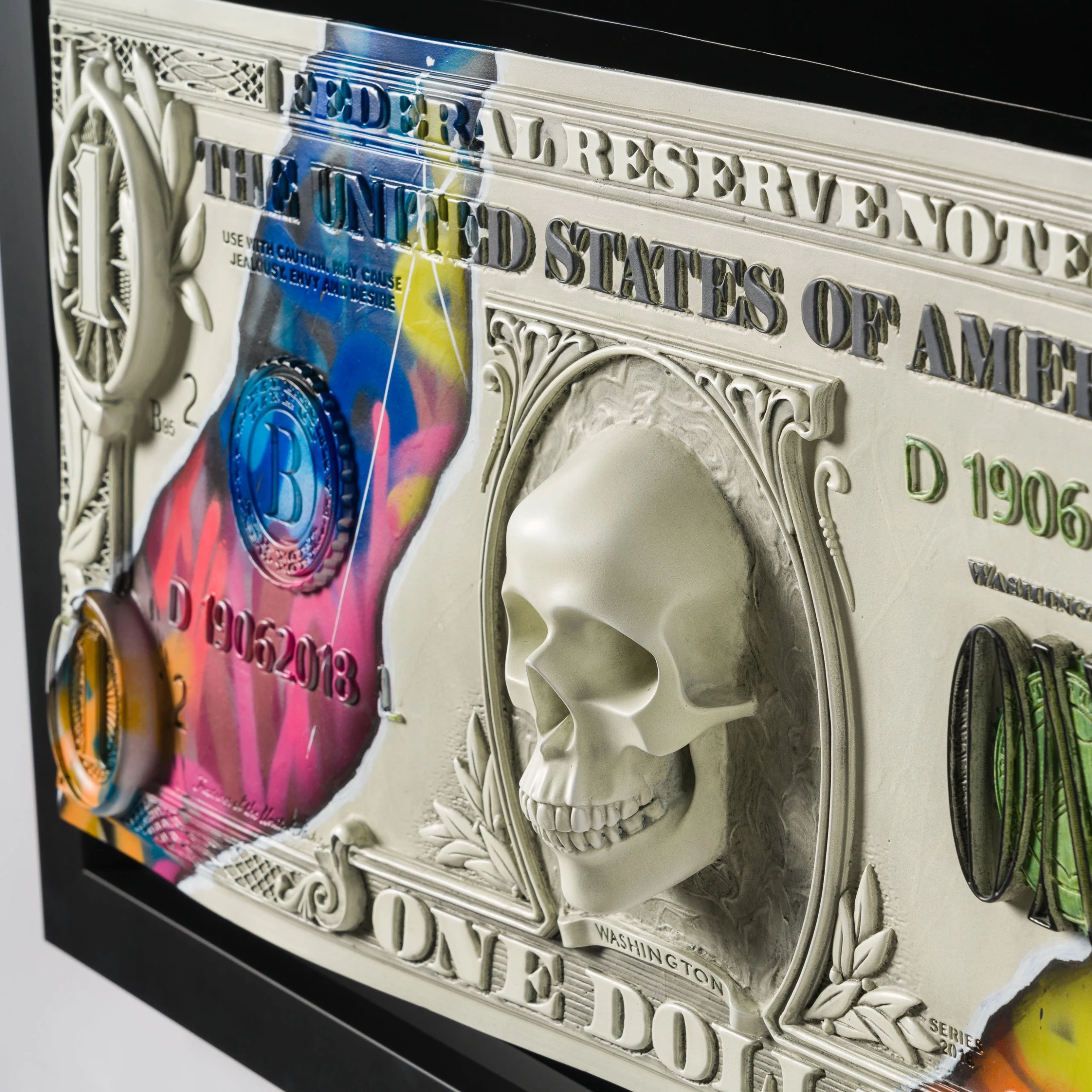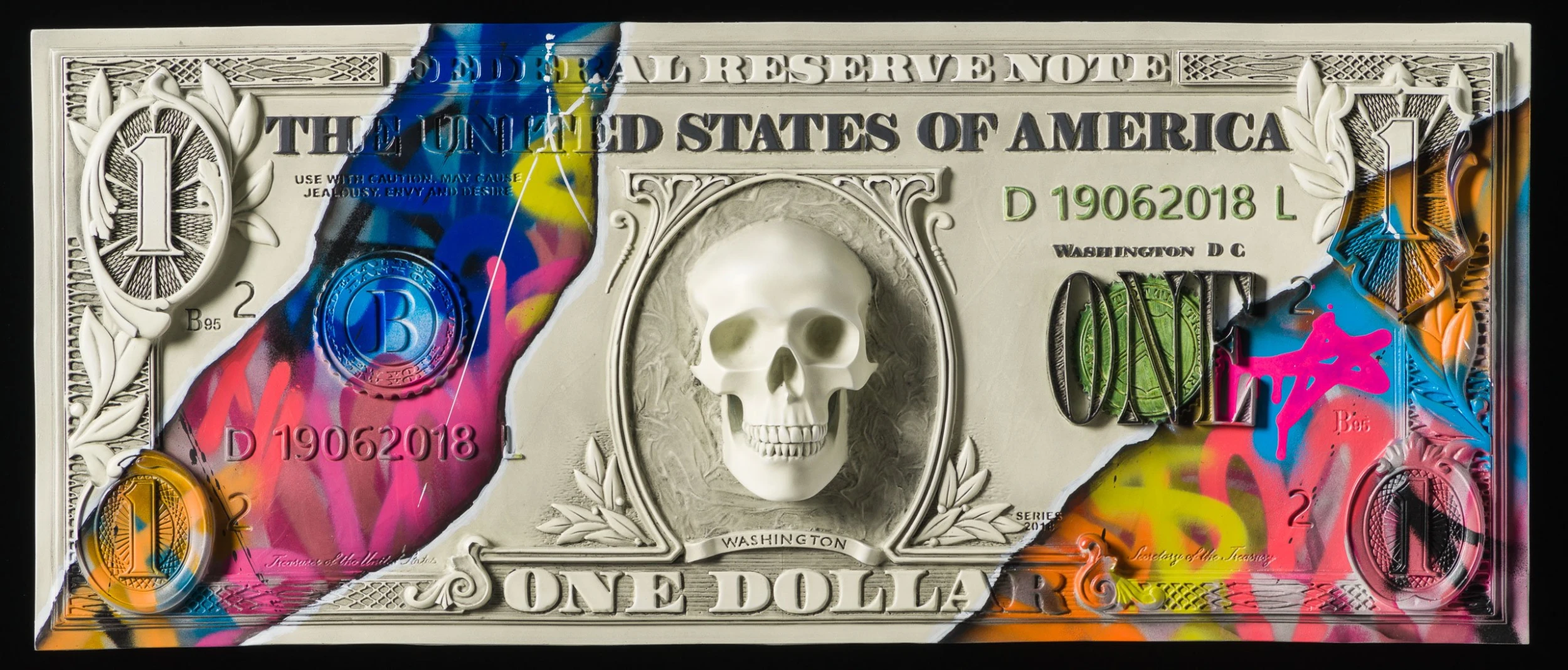 The highly popular works have a contemporary, urban edge, but as an artist, Dan is hugely influenced by the creations of the Renaissance and it’s the fusion of the two different styles that make the pieces so special. Constantly constructing concepts as physical creations, Lane’s development and experimentation methods coupled with his ability to blend thematic elements, results in work that is simultaneously stylistically distinct and ever evolving. Often using elements such as skulls, dollar bills, flowers and hummingbirds, the artworks are statement pieces in any room.