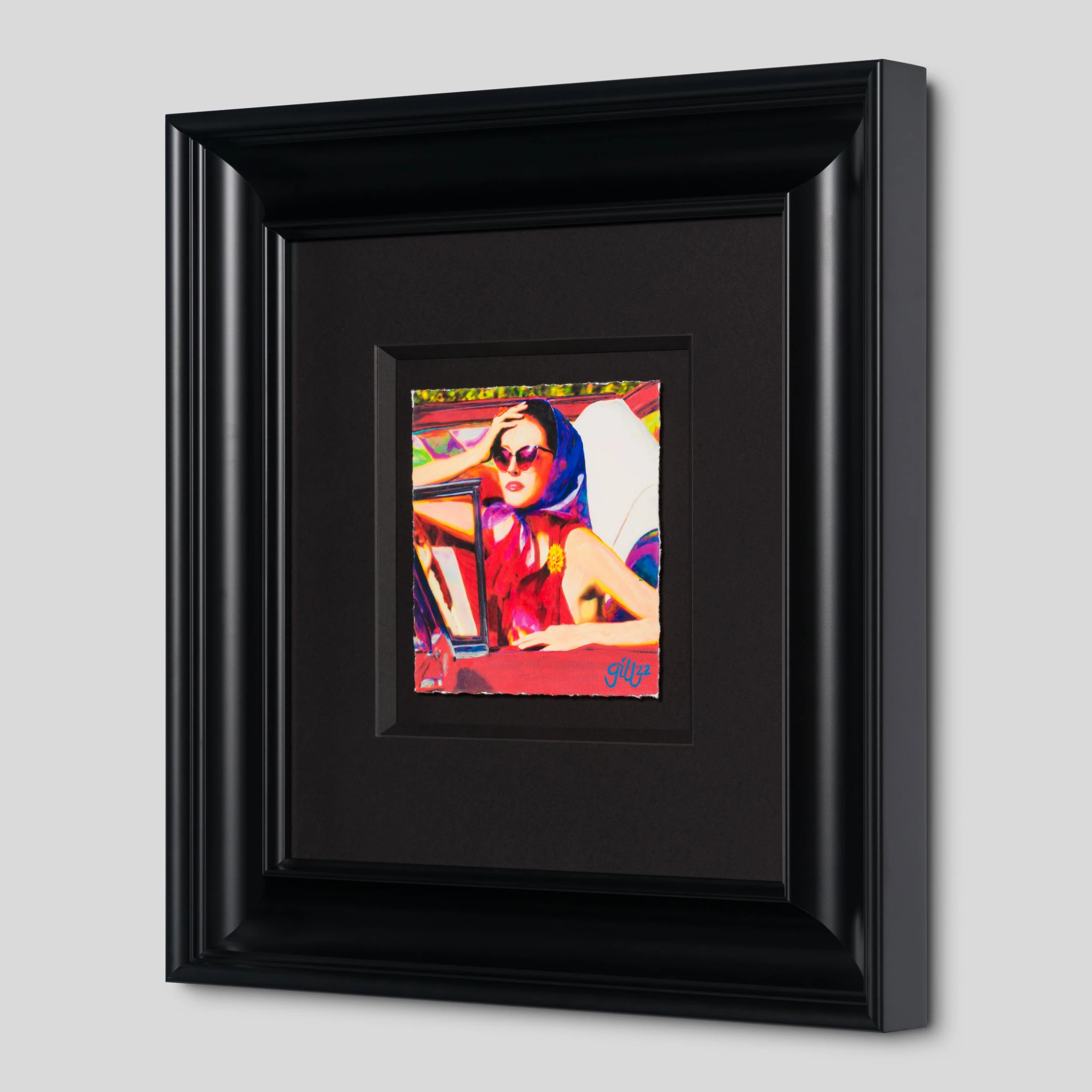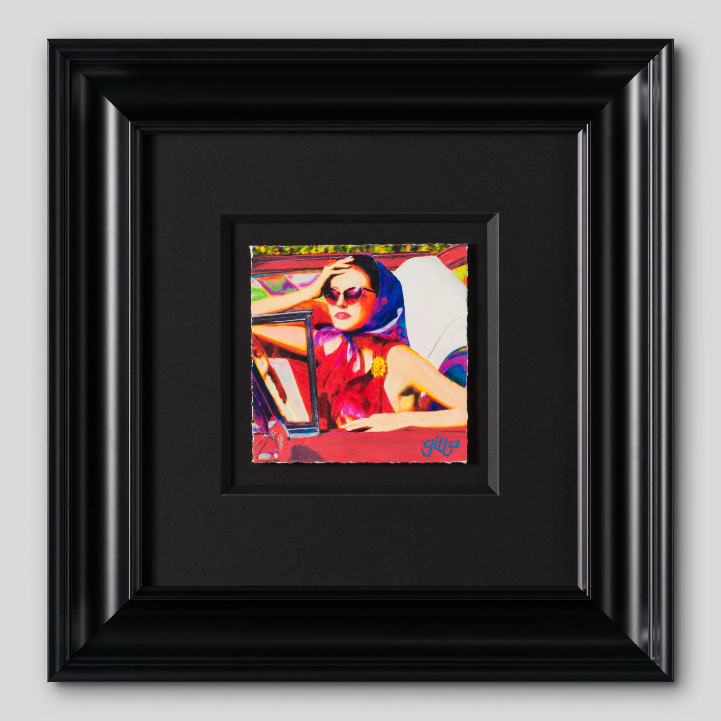 One of Pop Art’s hallmarks is its obsession with popular culture, and Gill’s Women in Cars series is firmly rooted in this. He began making the works in the 1960’s, when American magazines LIFE and TIME began printing paparazzi shots of film stars getting out of their cars. Women in Cars could offer something the magazines couldn’t – colour – and when the pieces began appearing in galleries, they were the epitome of cool modernity, and gave the public a chance to see celebrity in a new light. One of the earliest versions of the series, ‘Laughing Woman in car and Close Up’ was purchased by and exhibited in MoMa between works by Picasso and Odilon Redon. In the years 2020 to 2022, almost sixty years after his first works, at the age of over 85 years, acrylic paintings and studies are created which show the “Women In Cars” manifested in all their colourfulness and timeless presence. These acrylic originals and studies are modern embodiments of an idea that was ahead of its time, anticipating the omnipresence of social media and the struggle to protect a personal and private space of existing. These modern pieces are steeped in the history of the pop art movement and bring a fresh and exciting insight into the workings of one of the last living pioneers of the subject. artwork from this collection .