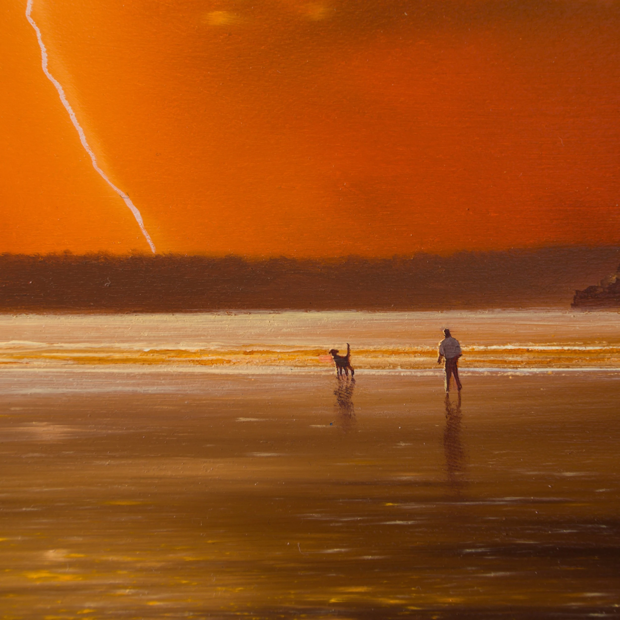 Although oil paint has traditionally been used in landscape painting for hundreds of years, Lawrence’s technique of applying the paint is truly unique. After denoting the horizon in a thin pencil line, Lawrence uses only his finger to apply and blend his paint before using a toothpick to add any small figures in his vast composition.